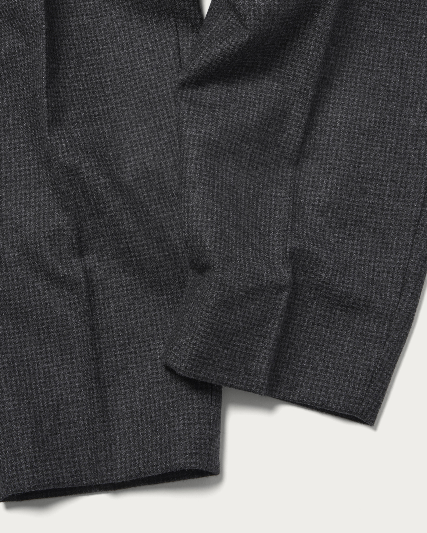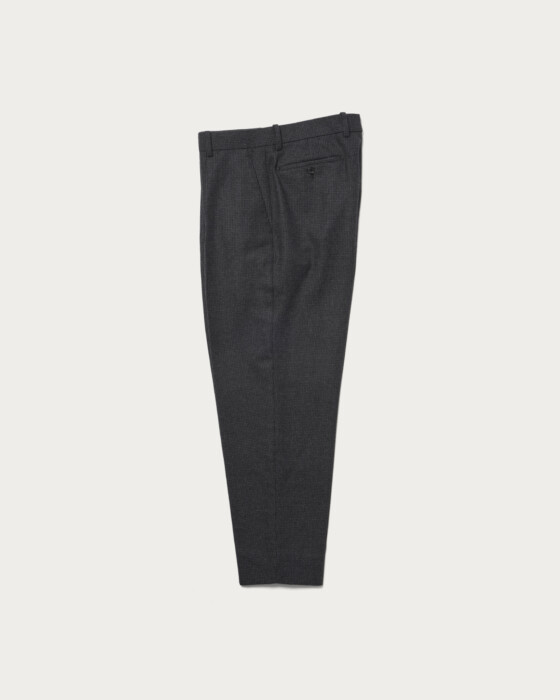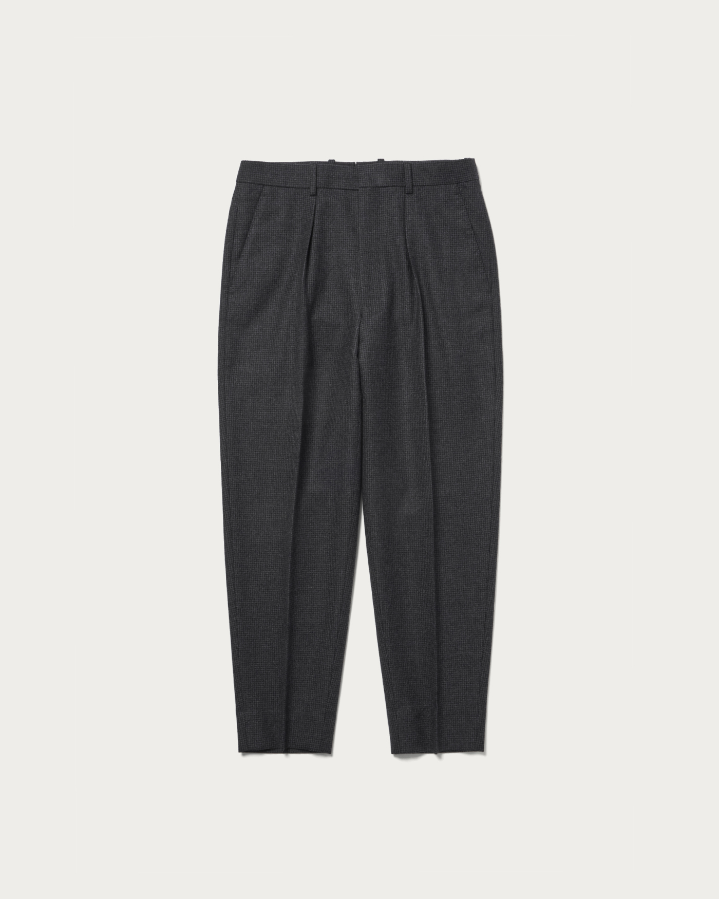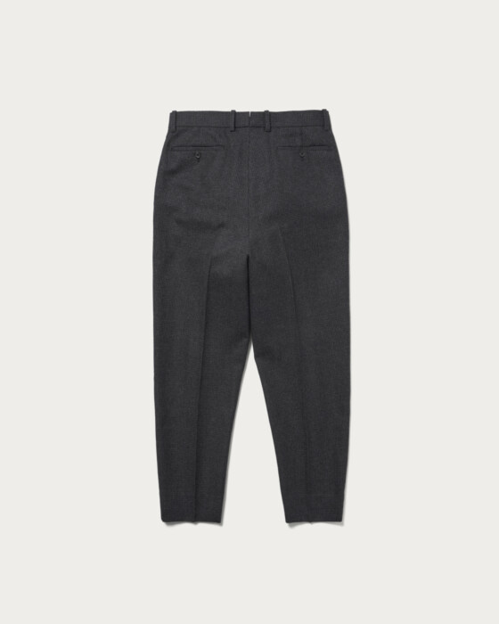 ミリタリーパンツをベースに仕立てた、ワイドテーパードシルエットの一本。プリーツを配した腰まわりから裾にかけての緩やかなテーパードが生み出す、絶妙なバランスが魅力です。素材にはスコットランドの〈LOVAT〉社による梳毛フランネルを使用。同社のアーカイブ素材を現代的にモディファイした「Redpath Flannel」コレクションから選定しています。