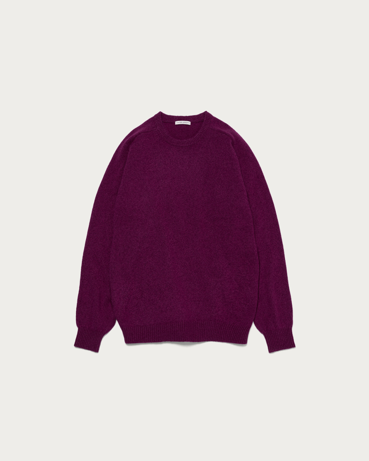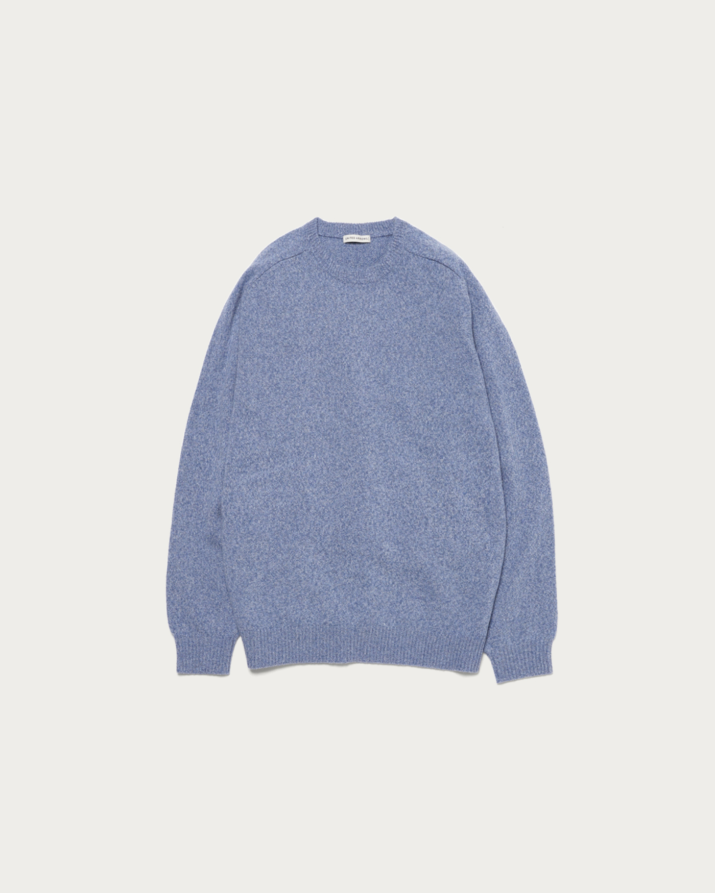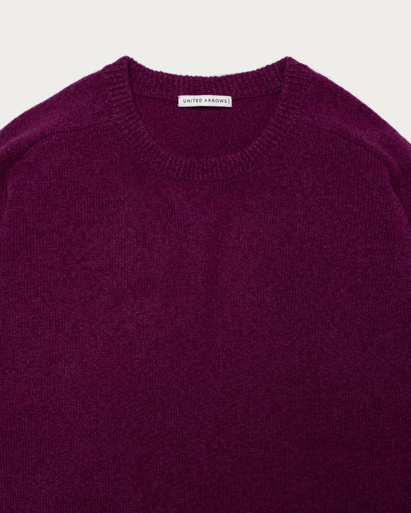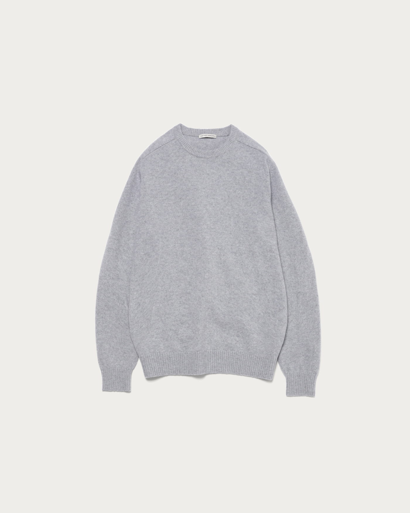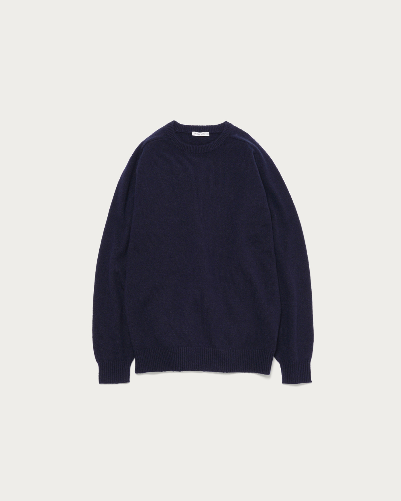 ウールカシミヤ クルーネックニットオーセンティックなデザインながら、サドルショルダーやリブ部分にさりげないアクセントを加え、1枚でも様になる佇まいに仕上げました。カシミヤをブレンドしたヌメリのあるタッチと自然な微光沢、そしてふっくらとした着心地特徴です。素材には、イタリア〈BIAGIOLI MODESTO〉社の7ゲージ ウールカシミヤ天竺を使用。カシミヤ混ならではの上質な風合いと、イタリア糸ならではの美しい発色がラグジュアリーなムードを漂わせます。