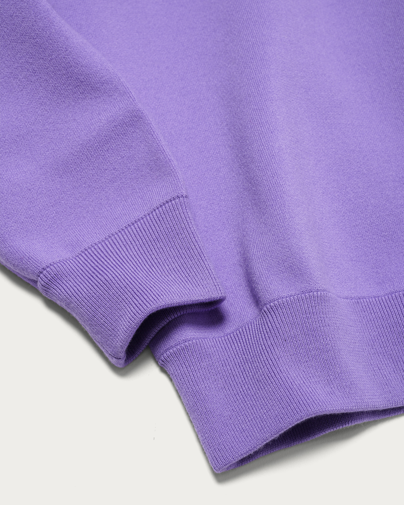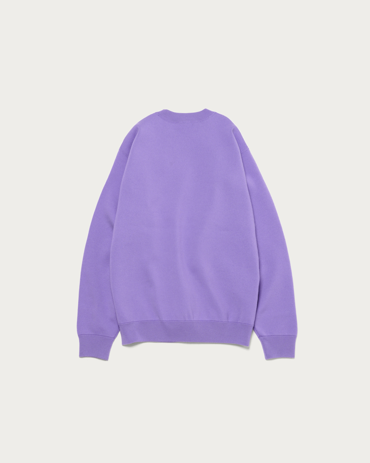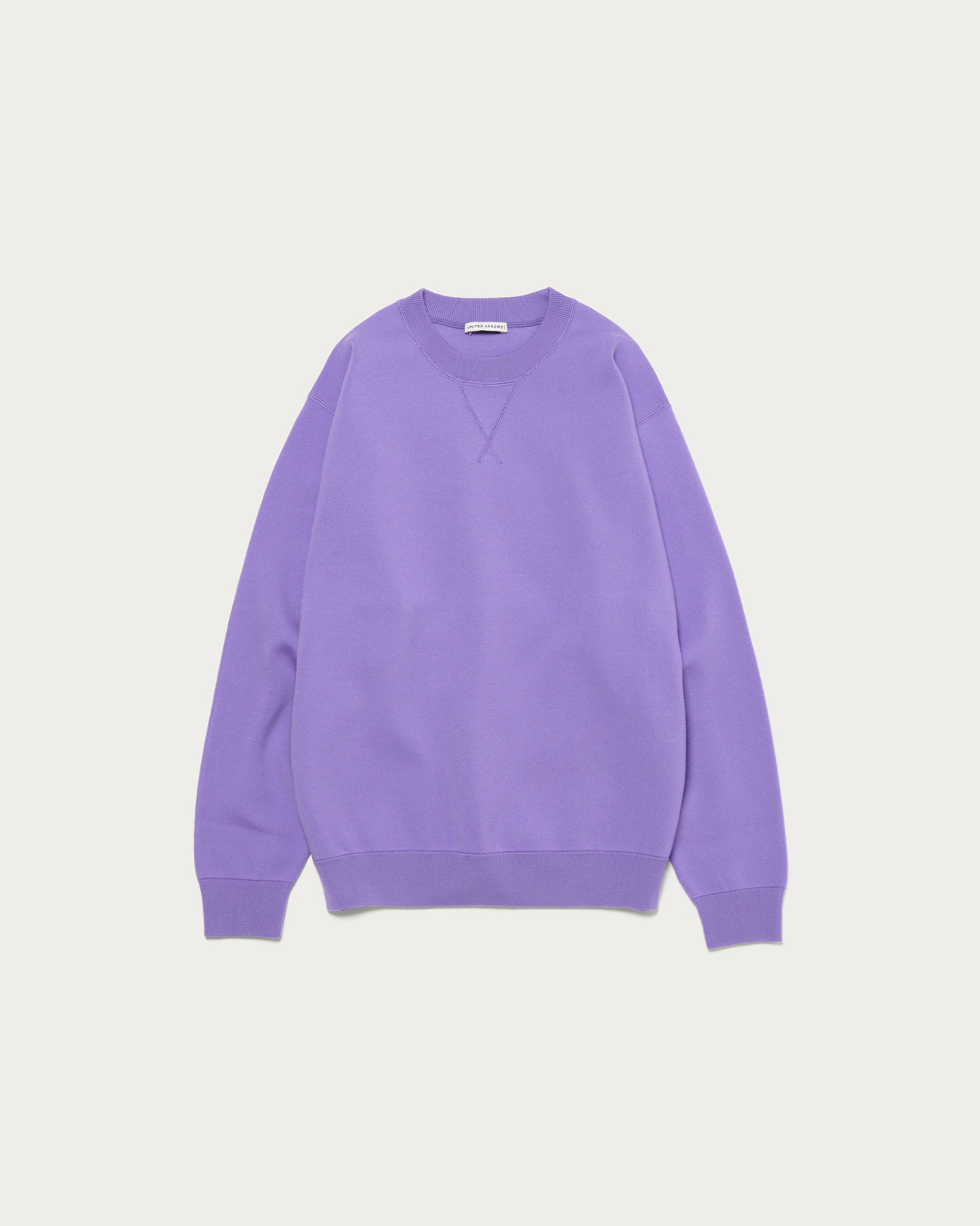 カシミヤをブレンドした糸で編み立てた、上品なスウェットシャツ。ニットで成形したパーツをカットソーのミシンで縫製することで、カジュアルな軽やかさとニットならではの上質さを兼ね備えた一枚に仕上げています。編地はスムース組織で、安心感のあるしっかりとしたウエイトに設定。さらに、ポリエステル糸をプレーティングすることで、適度なハリと反発感をプラスしました。そのため、着用時のフォルムが美しく立ち上がり、シンプルながらも存在感のある佇まいを生み出します。