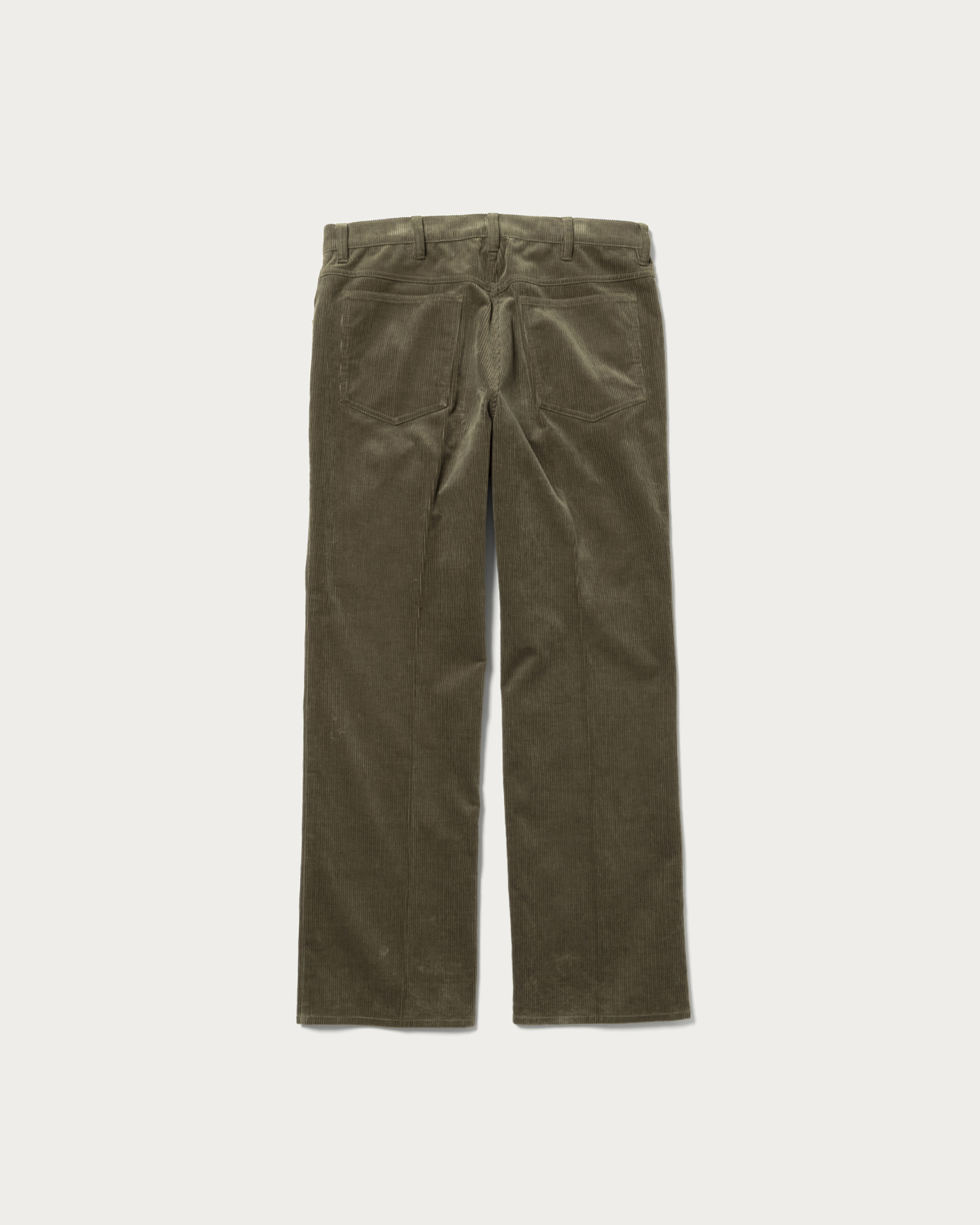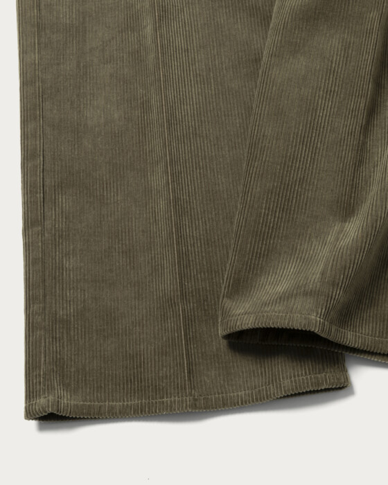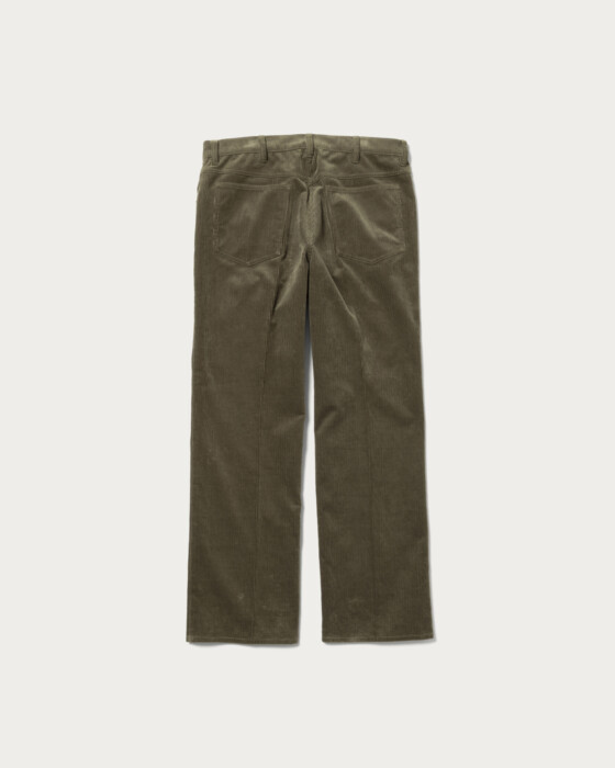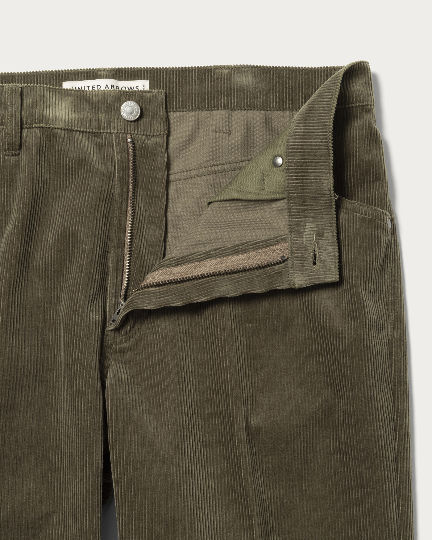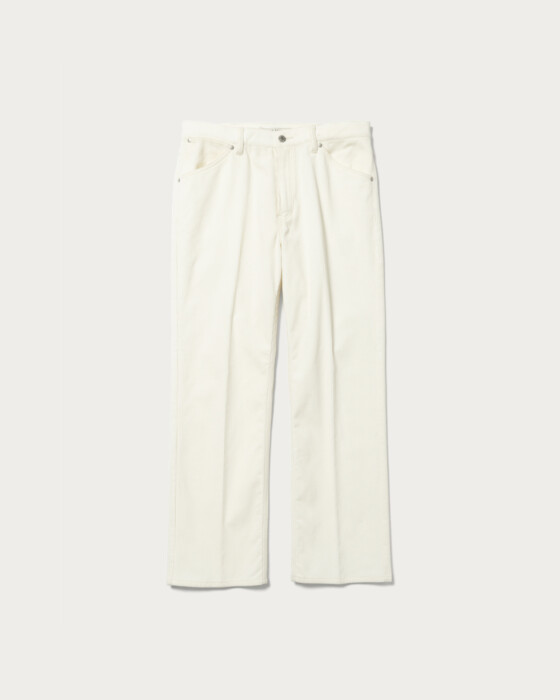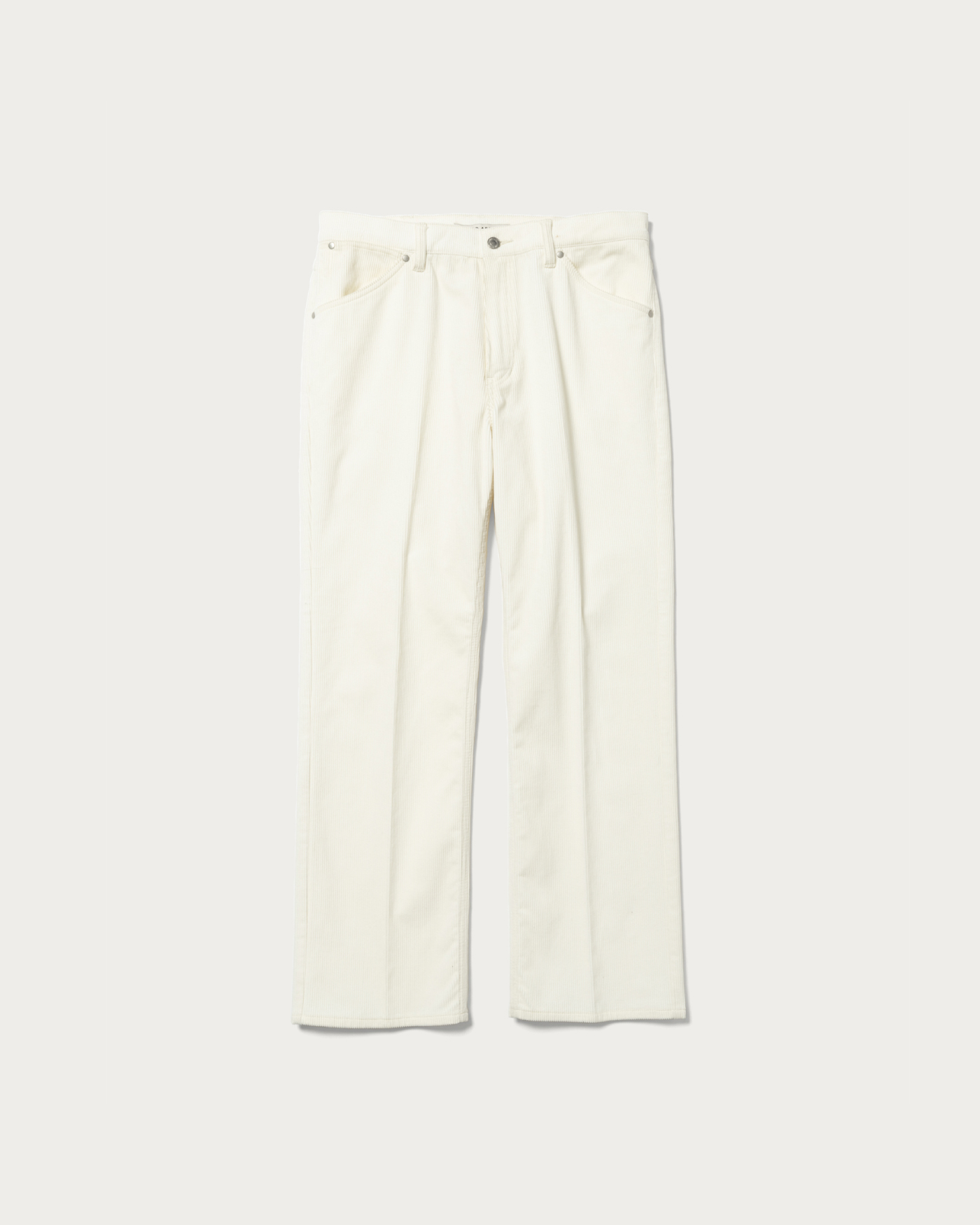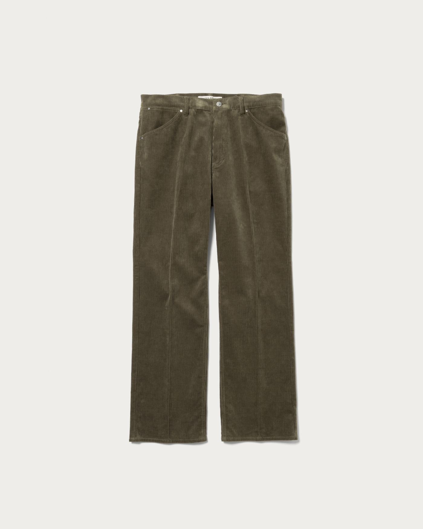 定番のロデオストレートシルエットに、中畝のコーデュロイを合わせた一本。これまでの細身シルエットとは異なり、ストレートラインにすることで新鮮なバランスが生まれ、今のムードを感じさせる仕上がりになっています。素材には、10ウェルの肉厚なコーデュロイを使用。畝の立体感とほどよいふくらみ、そして上品な光沢が特徴です。