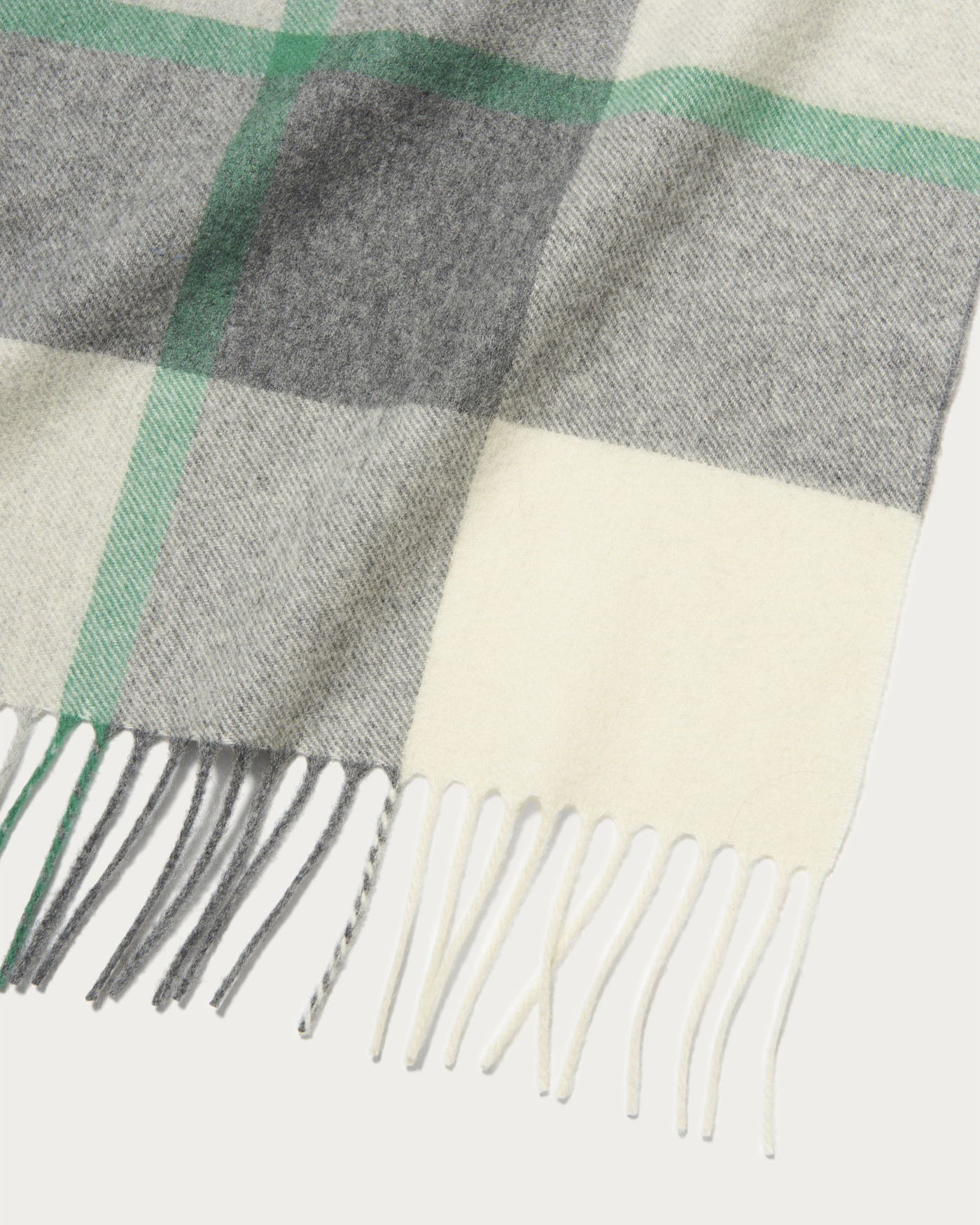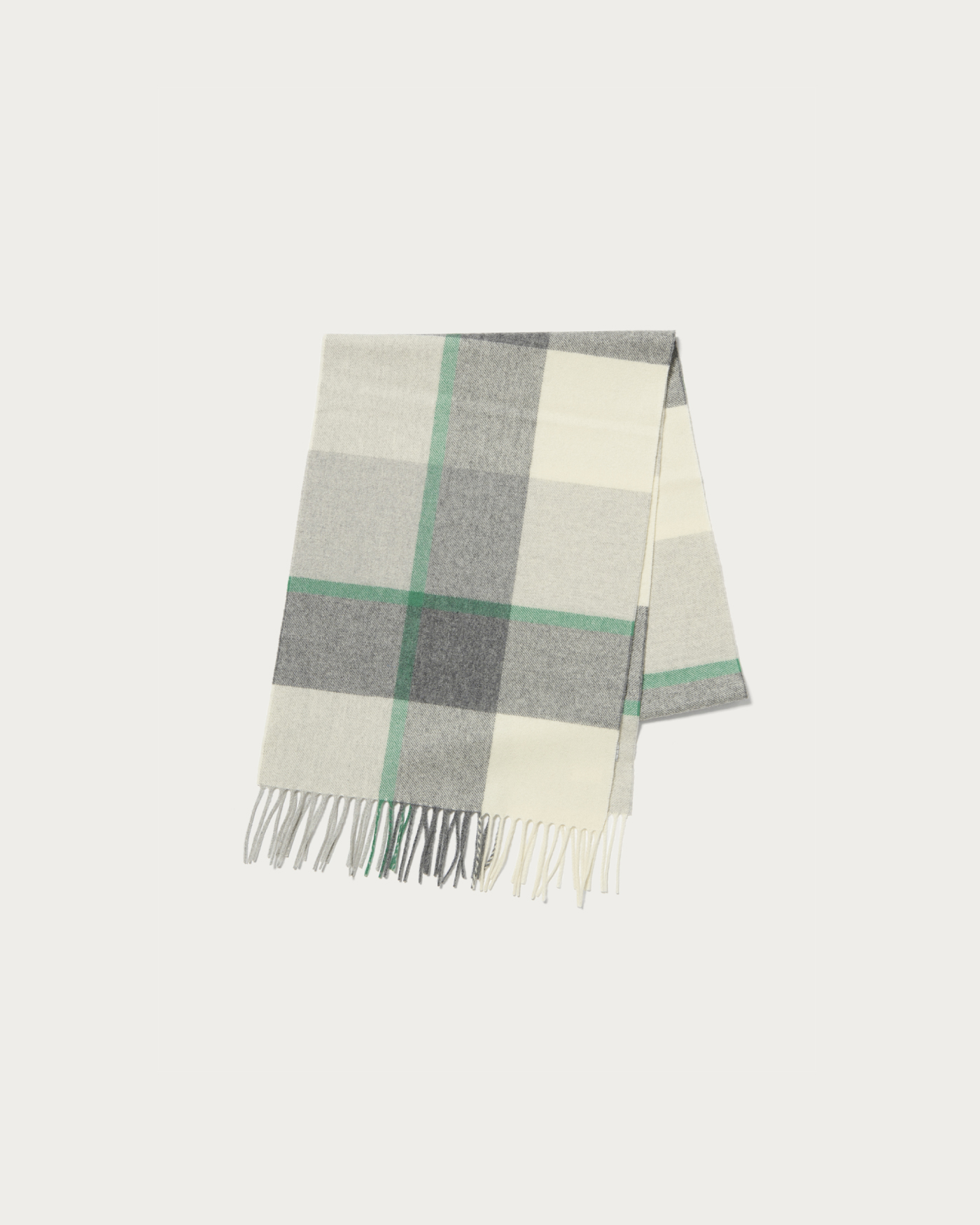 英国の老舗テキスタイルブランド〈Joshua Ellis〉のマフラー。ブリティッシュやアメリカントラッドをベースに、フレンチトラッドのエッセンスを加えたカラーリングが特徴です。クラシックなトラッド柄をベースにしながら、透明感のあるグレーやコンクリートのような冷たさを感じさせるトーンを差し込み、モードな印象に仕上げました。
