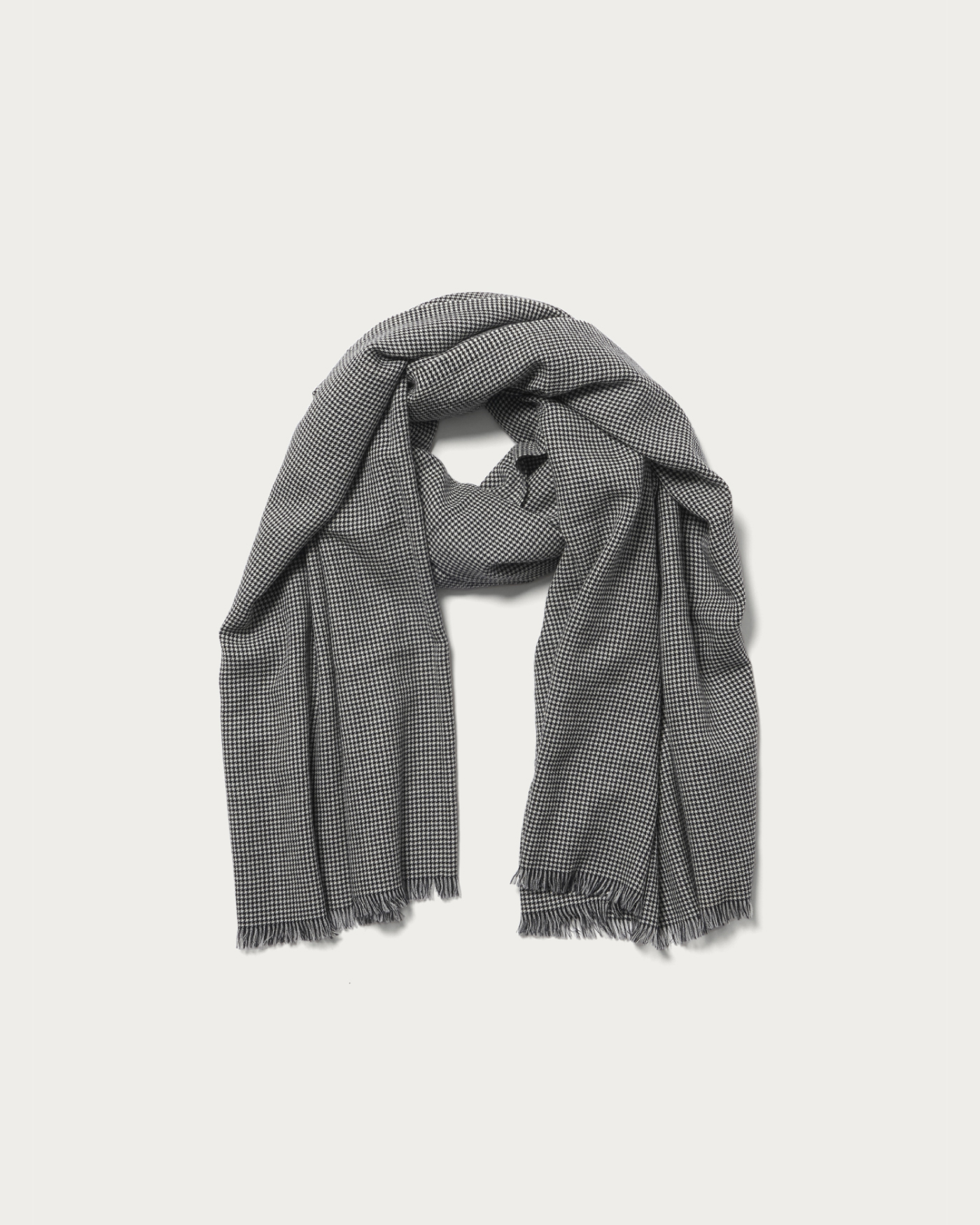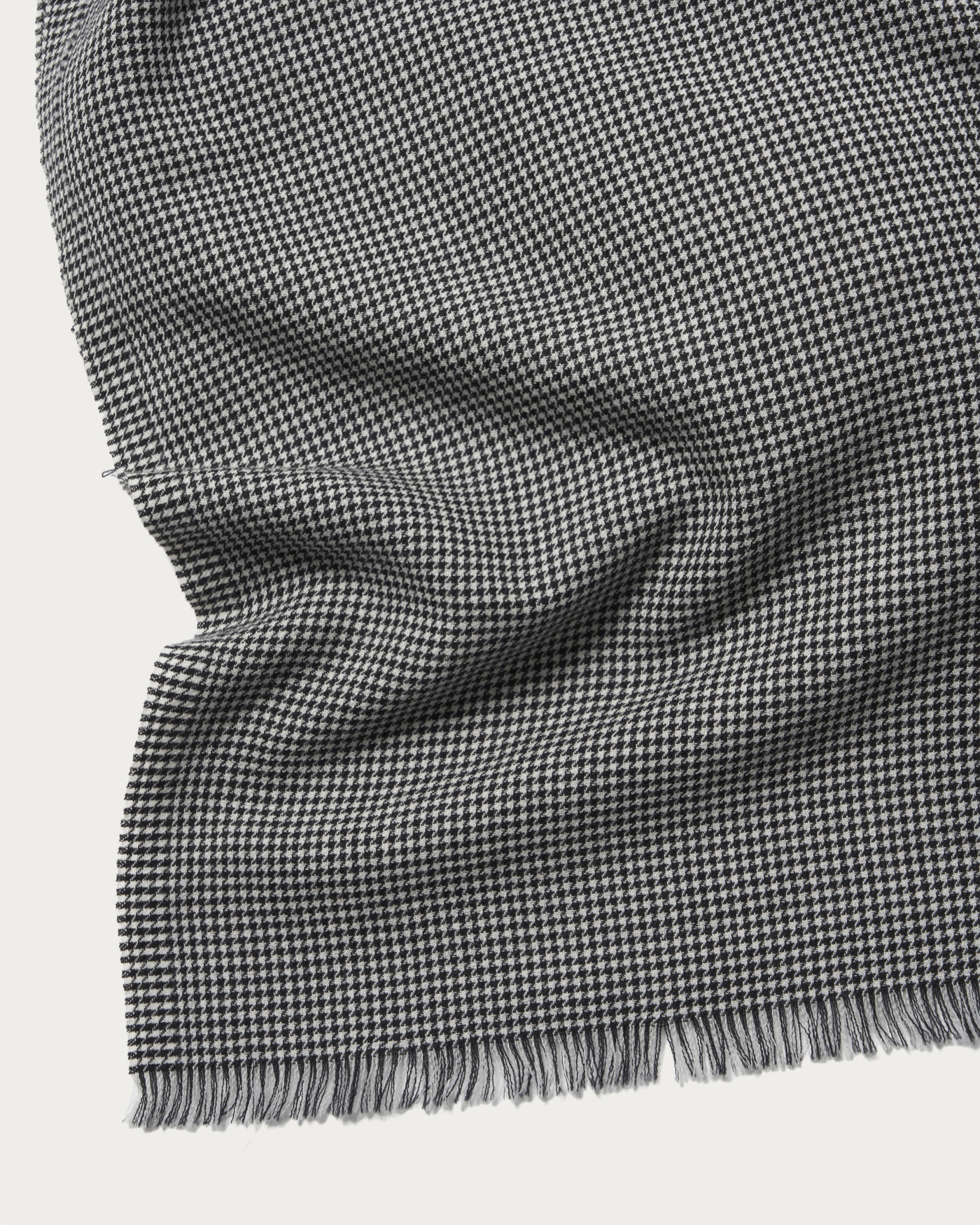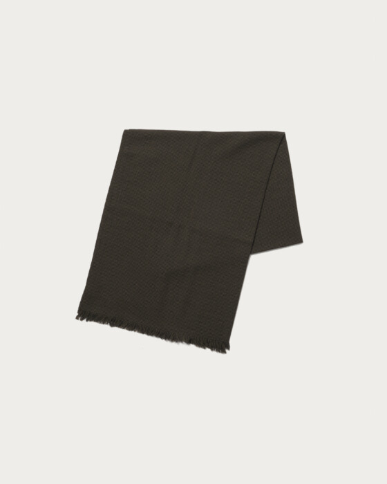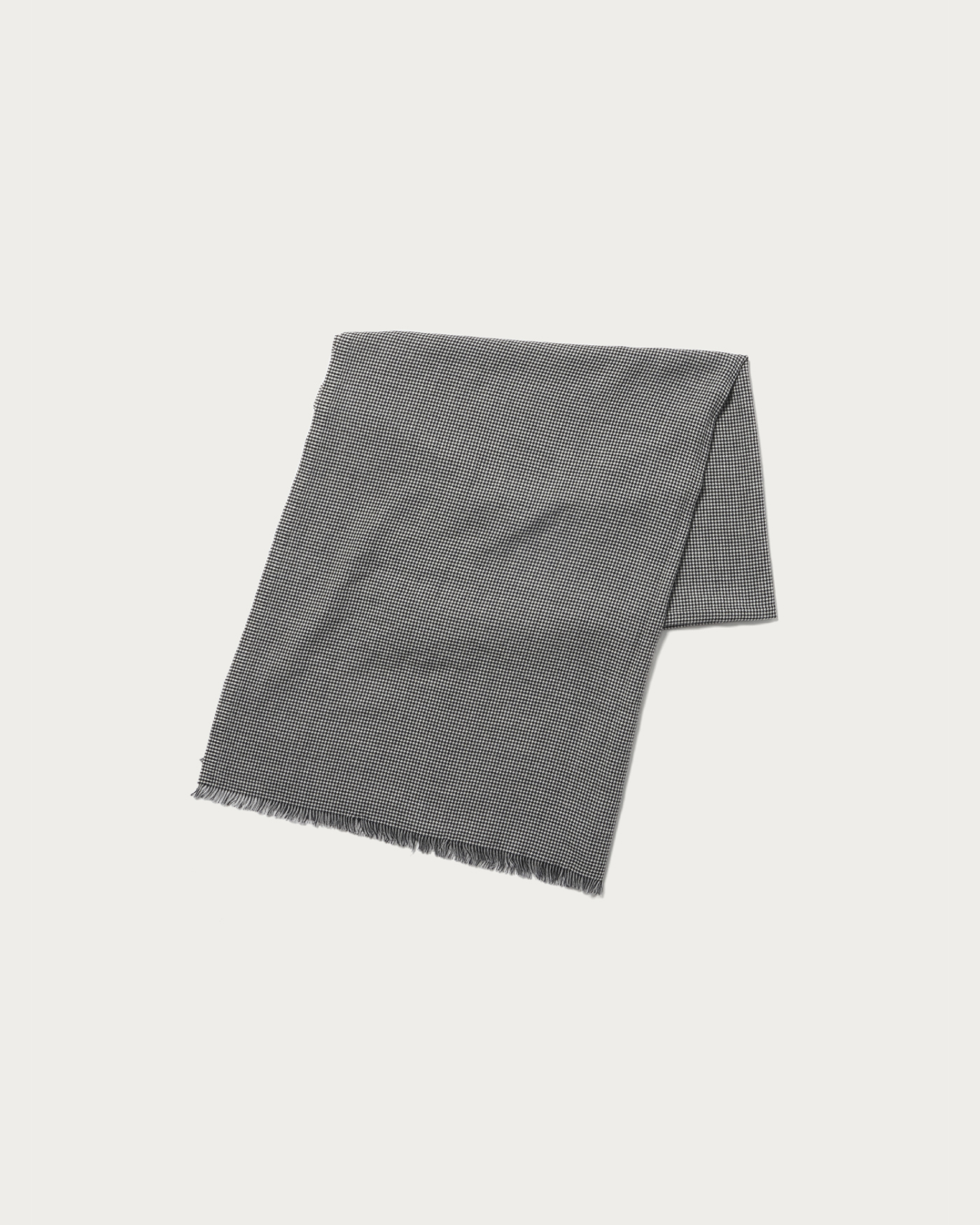 1966年、イタリア・ミラノで創業した〈PERSONALITY〉。良質な織物やプリント生地を用い、ハンドメイドでネクタイやスカーフを生産するブランドです。こちらは、クラシックなハウンドトゥース柄のストール。上質な素材感と丁寧な仕立てにより、装いに品格と奥行きを添えます。