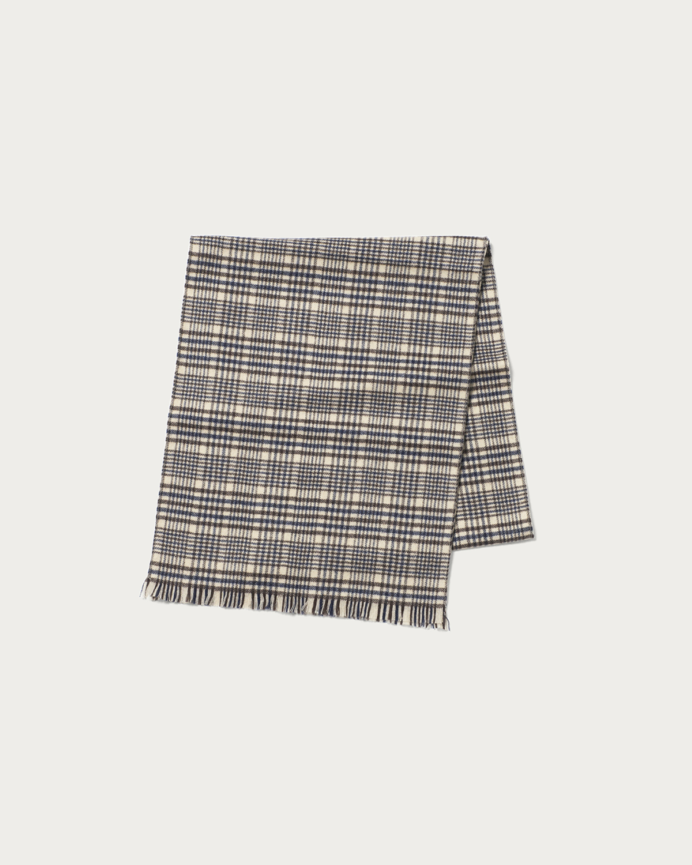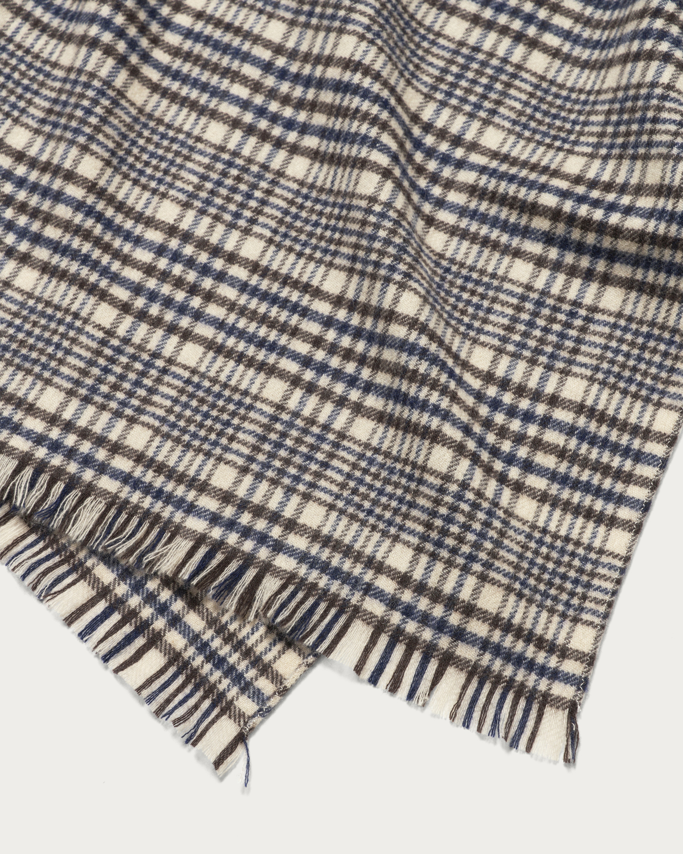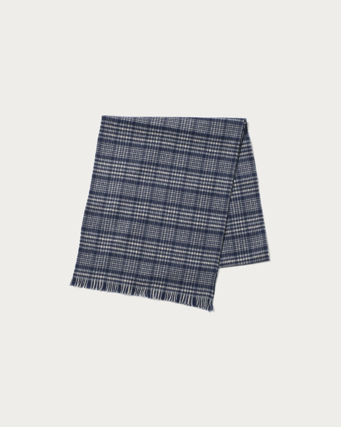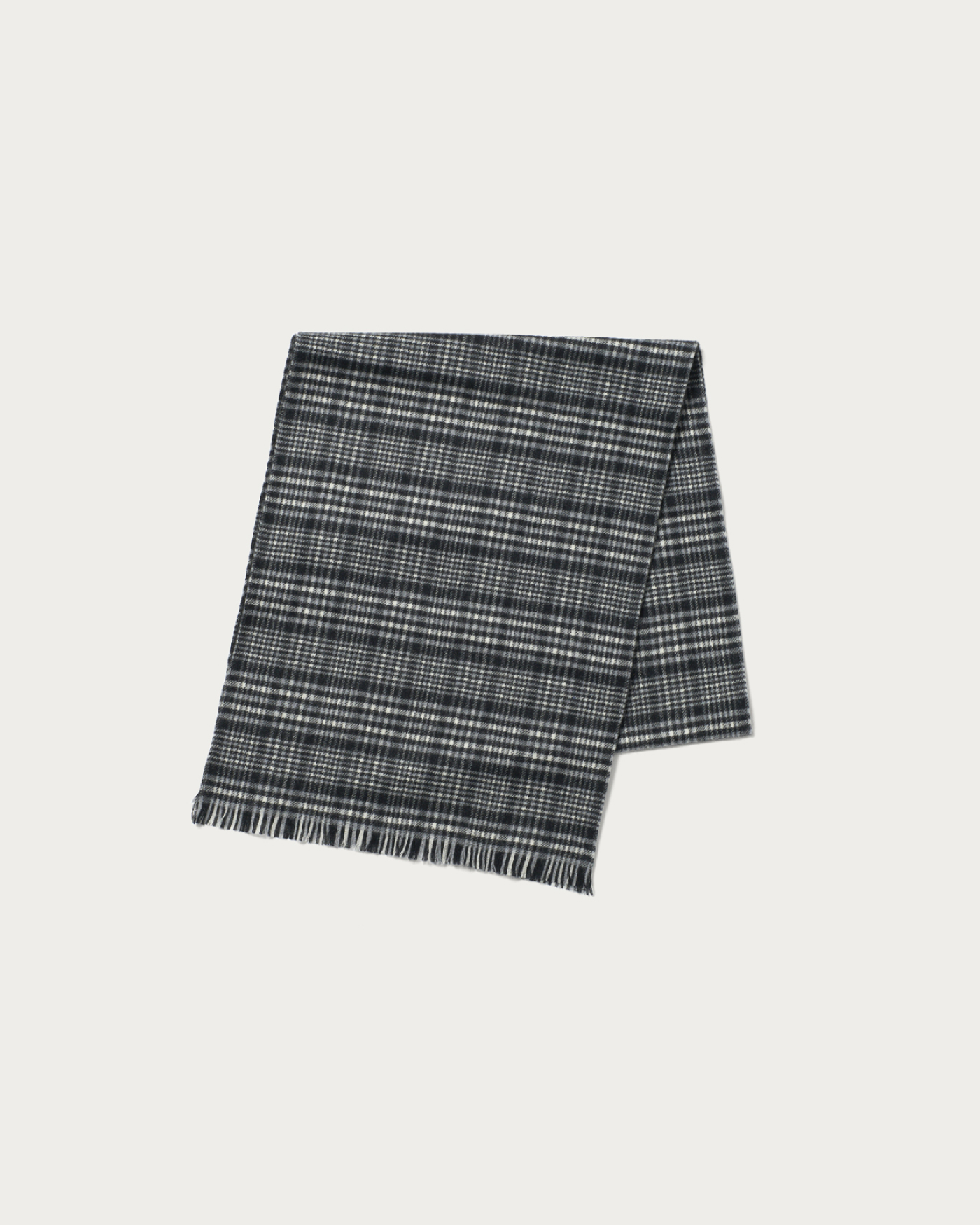 より軽く、軽快に。長いシーズン快適に使えるよう開発されたライトカシミヤシリーズのマフラー。RVSシリーズと同じ26番単糸を使用しながらも、糸の総数を調整することで差別化を図り、軽やかさと柔らかさを両立させています。柄は、境界線がややぼやけて見える小柄のチェックをオリジナルで制作。優しく滲むような表情が、上質な素材感とともに落ち着いた印象を演出します。