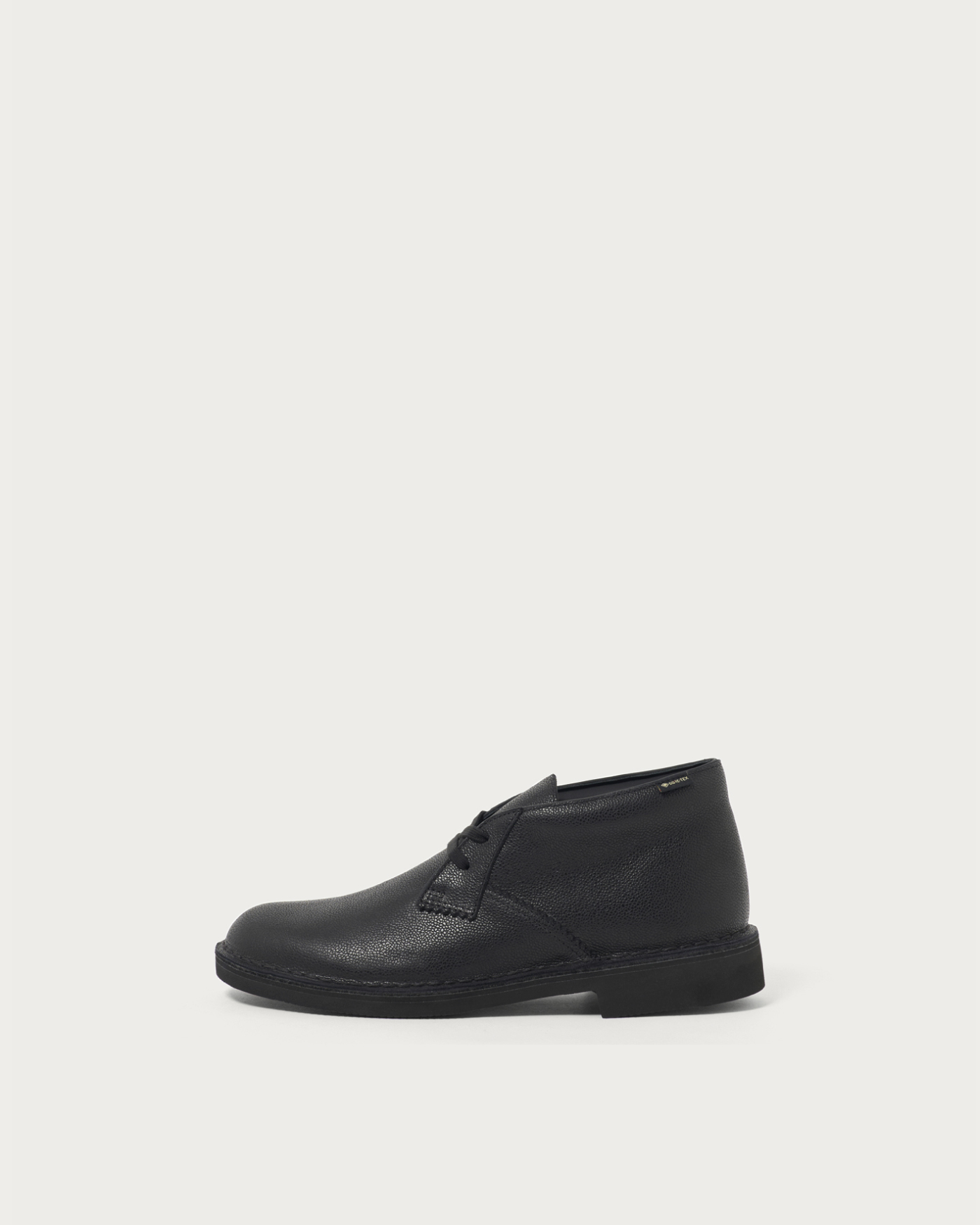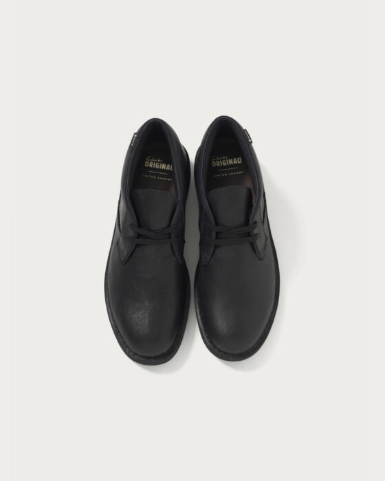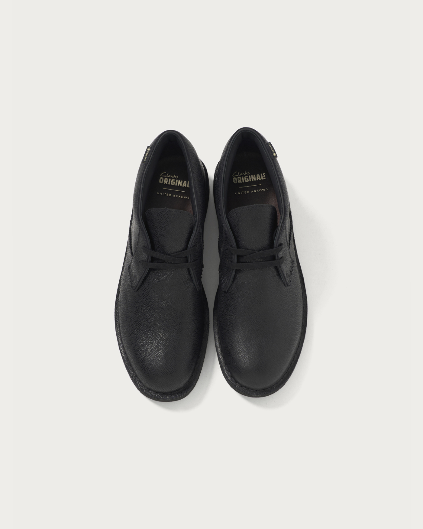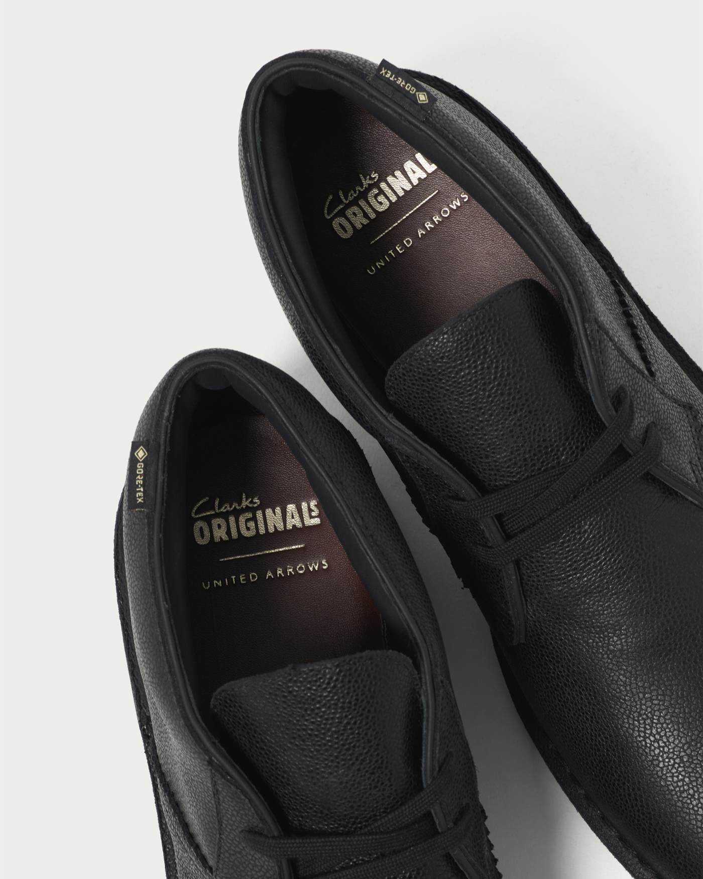 アイコニックなデザートブーツをベースに、昨年別注で展開した「デザートカーン56」のデザイン要素を組み合わせた、UAオリジナルデザインのデザートブーツを製作しました。柔らかく足馴染みの良いグレインレザーを使用し、さらに防水透湿性に優れたGORE-TEXを搭載。天候に左右されることなく快適にスタイリングを楽しめる一足に仕上がっています。アウトソールには、軽量性とクッション性を兼ね備えた「Vibram社製 GUMLITEソール」を採用。ボリュームのある見た目ながらも、驚くほど軽やかな履き心地を実現しています。