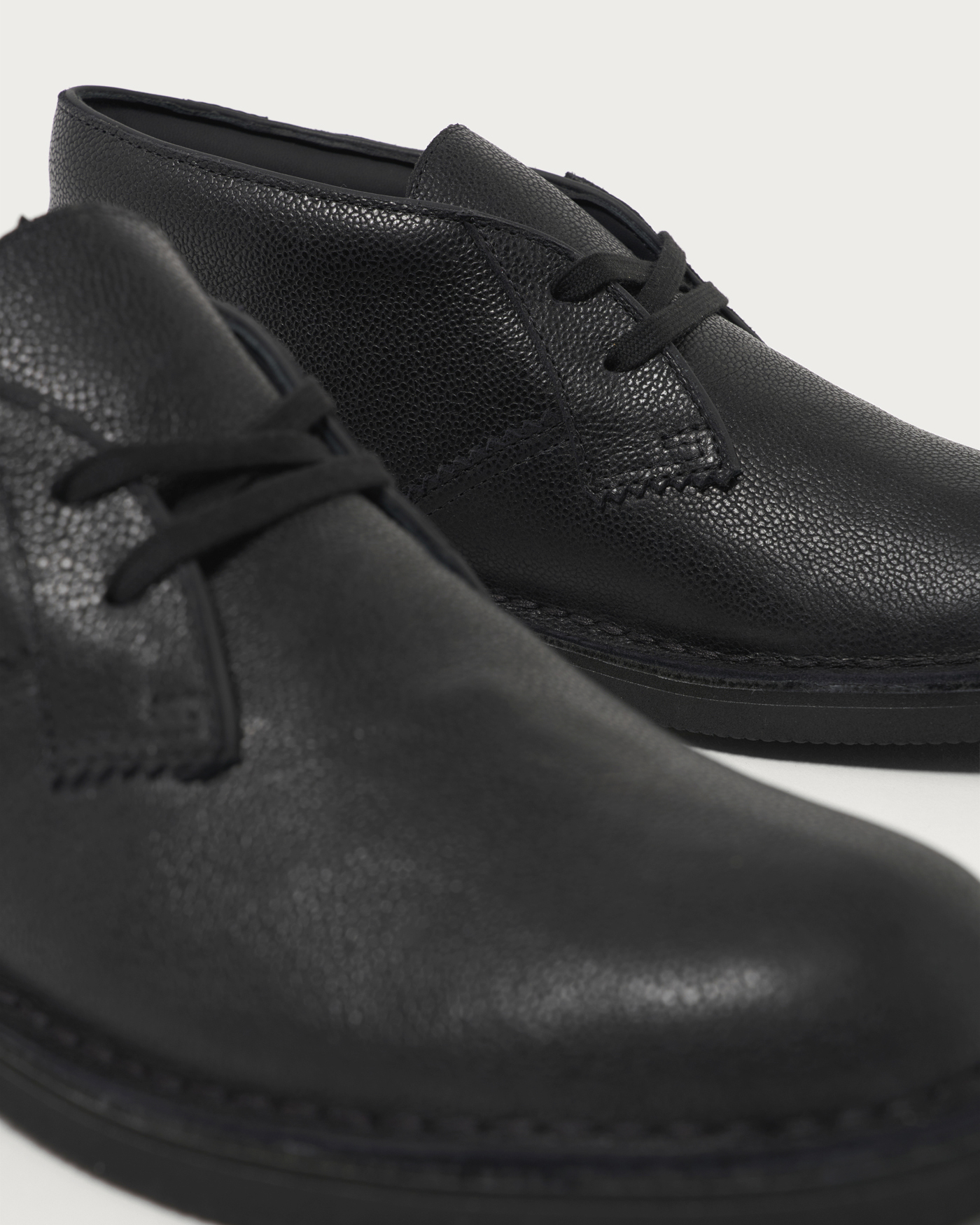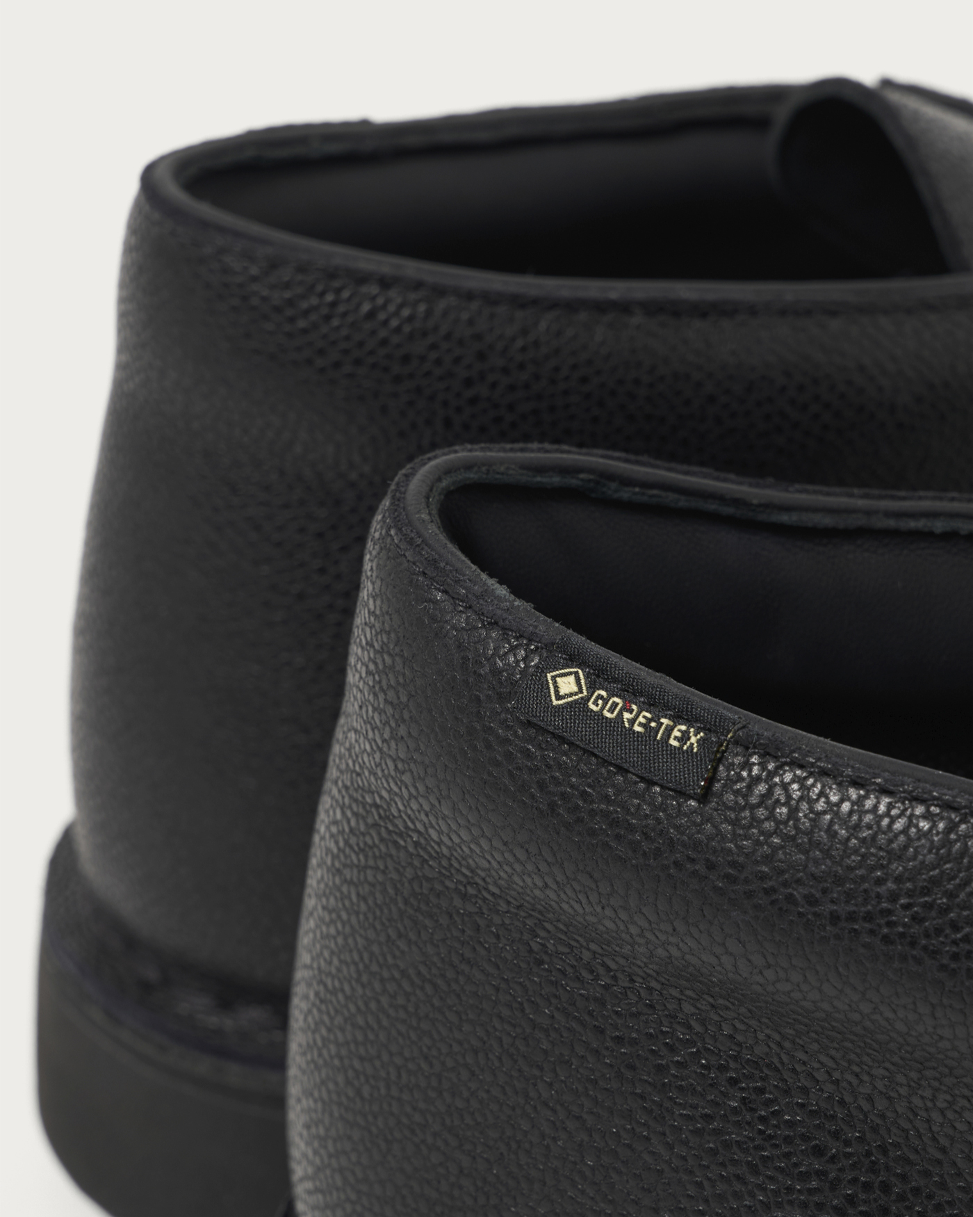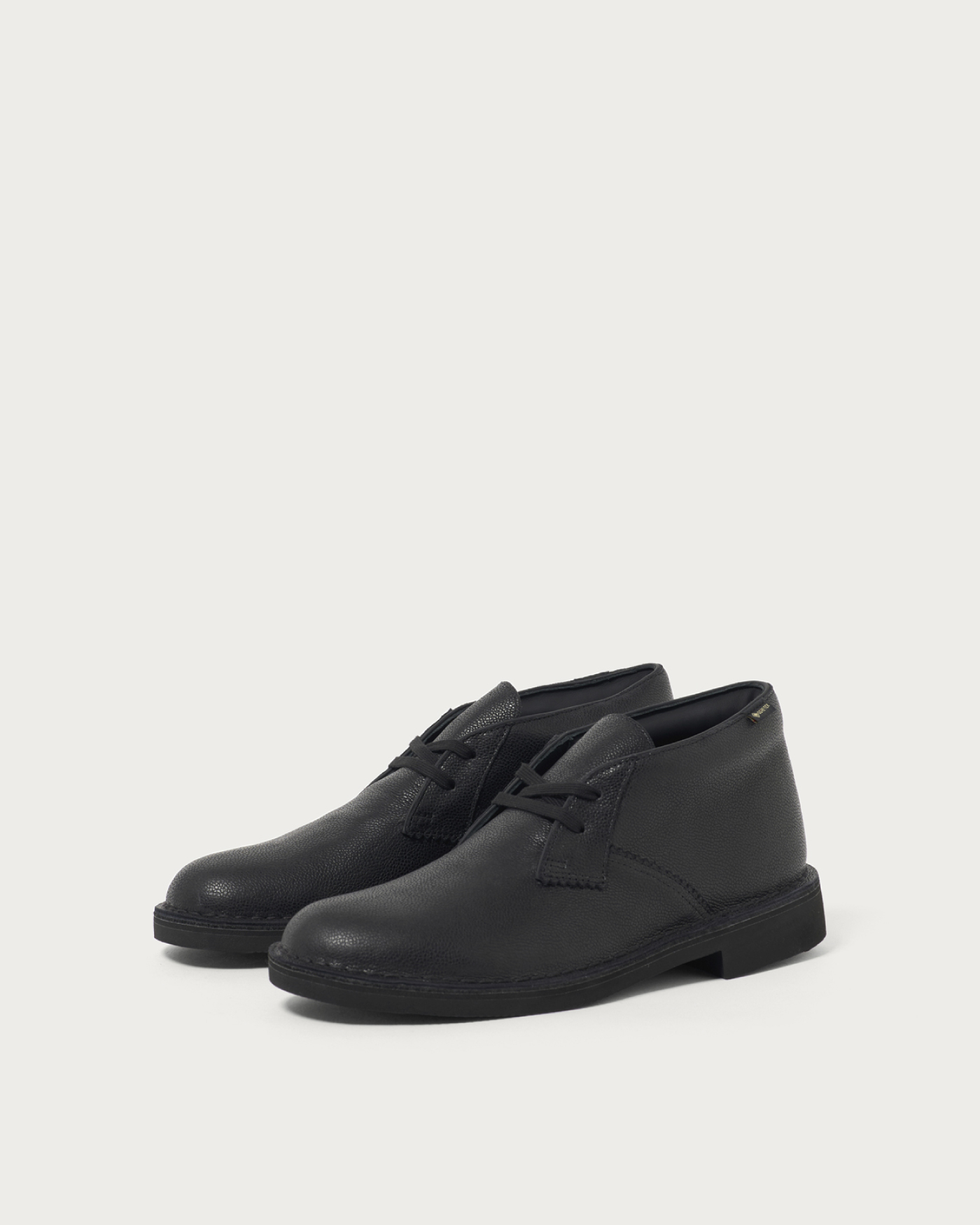 アイコニックなデザートブーツをベースに、昨年別注で展開した「デザートカーン56」のデザイン要素を組み合わせた、UAオリジナルデザインのデザートブーツを製作しました。柔らかく足馴染みの良いグレインレザーを使用し、さらに防水透湿性に優れたGORE-TEXを搭載。天候に左右されることなく快適にスタイリングを楽しめる一足に仕上がっています。アウトソールには、軽量性とクッション性を兼ね備えた「Vibram社製 GUMLITEソール」を採用。ボリュームのある見た目ながらも、驚くほど軽やかな履き心地を実現しています。