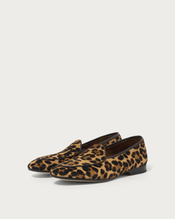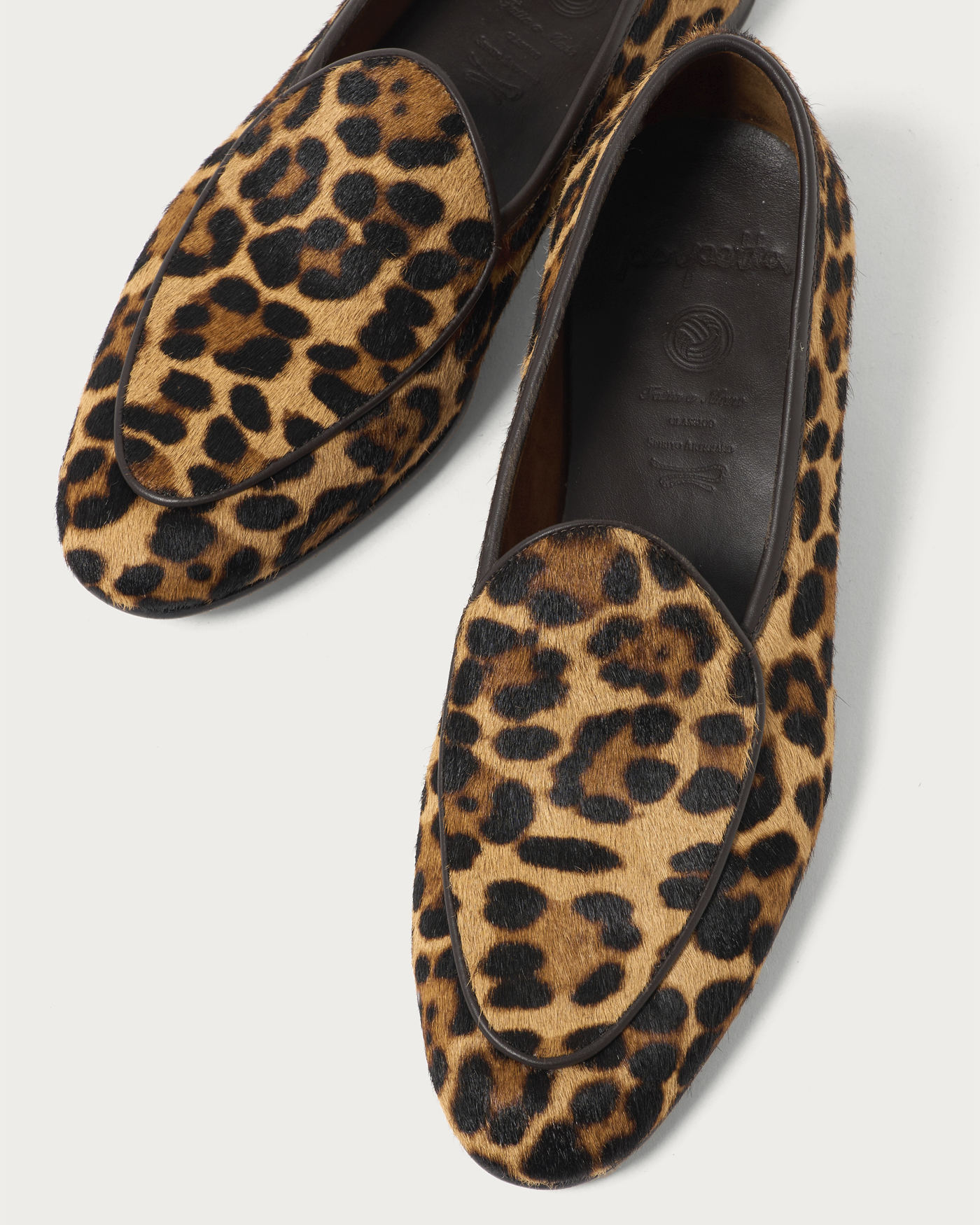 〈POLPETTA〉の定番木型「passo」をベースにしたシューズ。ブランドを象徴する端正なフォルムに、アクセントとしてレオパード柄をあしらった一足です。上品な佇まいの中に華やかさを添え、スタイリングに個性と抜け感をプラスします。