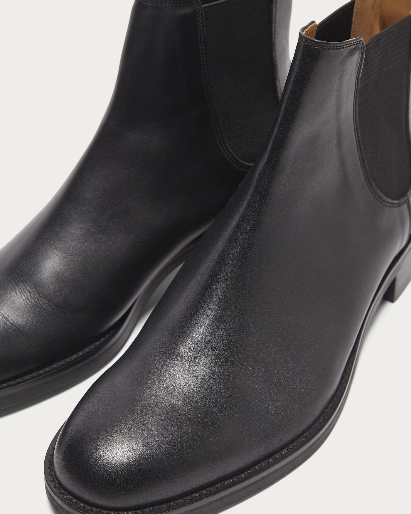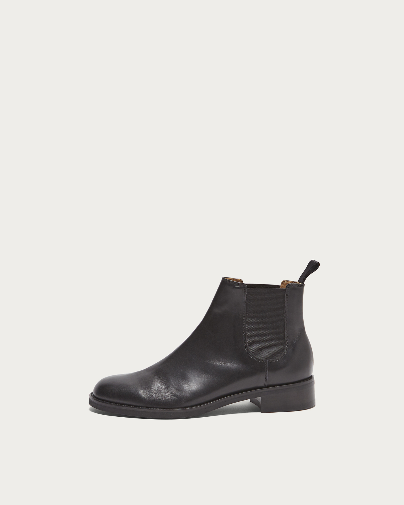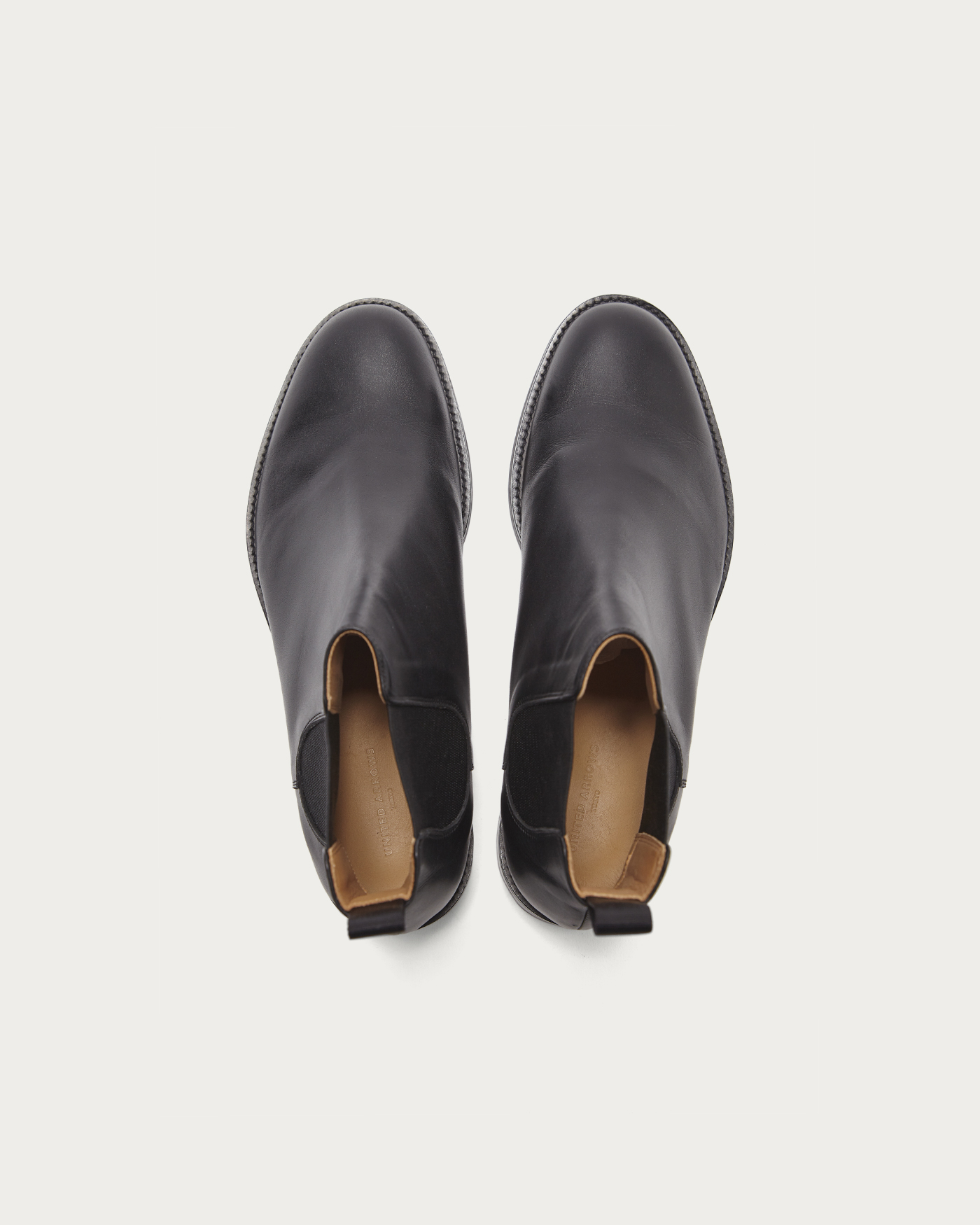 定番として展開しているサイドゴアブーツをアップデート。「VIBRAM」社製のソールを採用し、悪路でもアスファルトでも安心して着用できる安定感のある一足に仕上げました。アッパーには、微光沢を帯びた牛革を使用。きめ細やかな質感が上品さを引き立て、艶やかな表情が足元にモダンな印象を添えます。クラシックな佇まいと実用性を兼ね備えた、シーズンを問わず活躍する定番ブーツです。