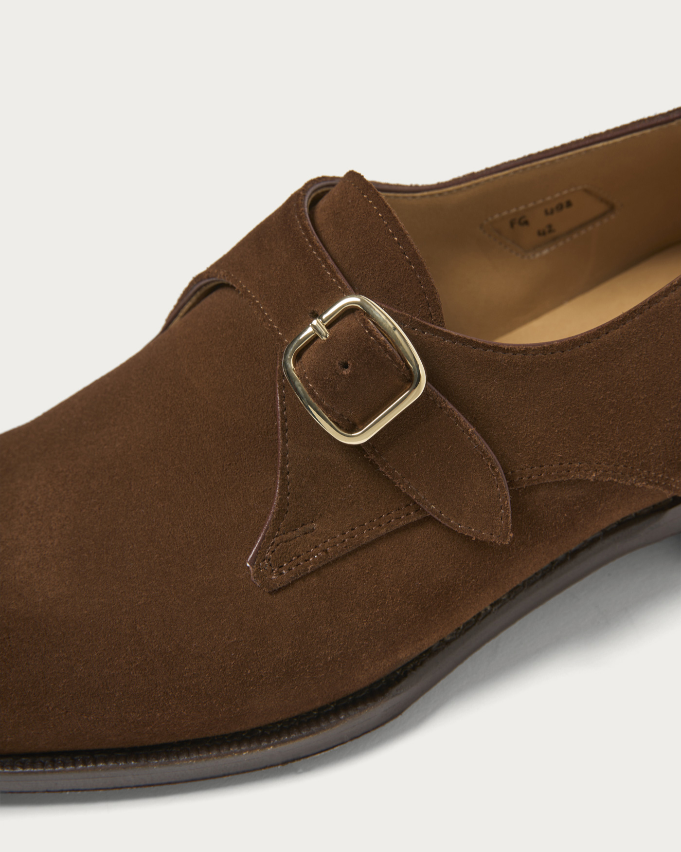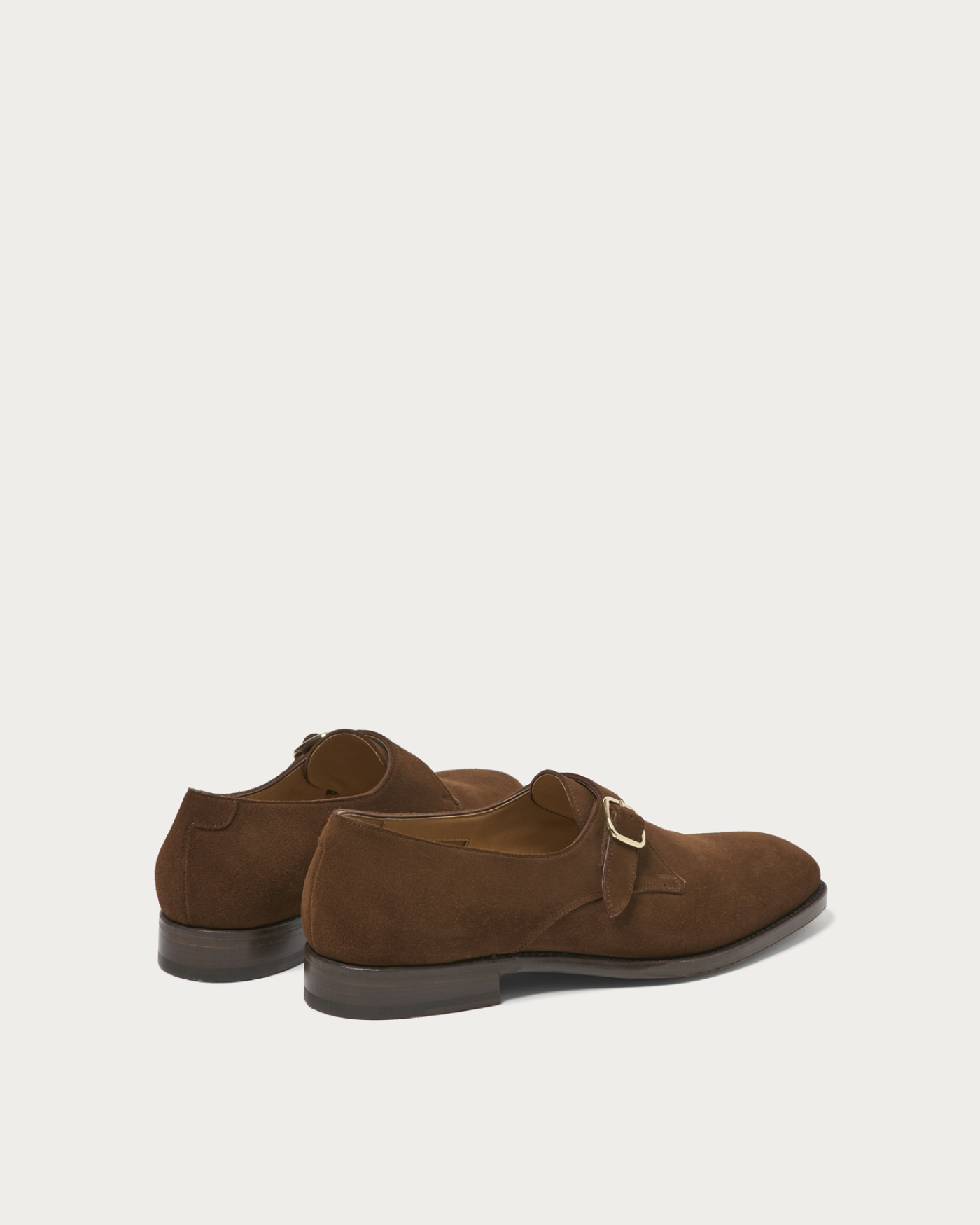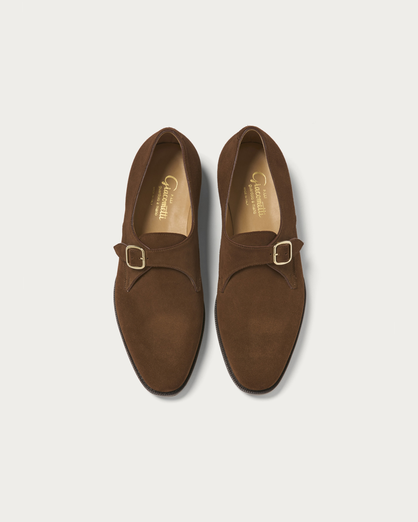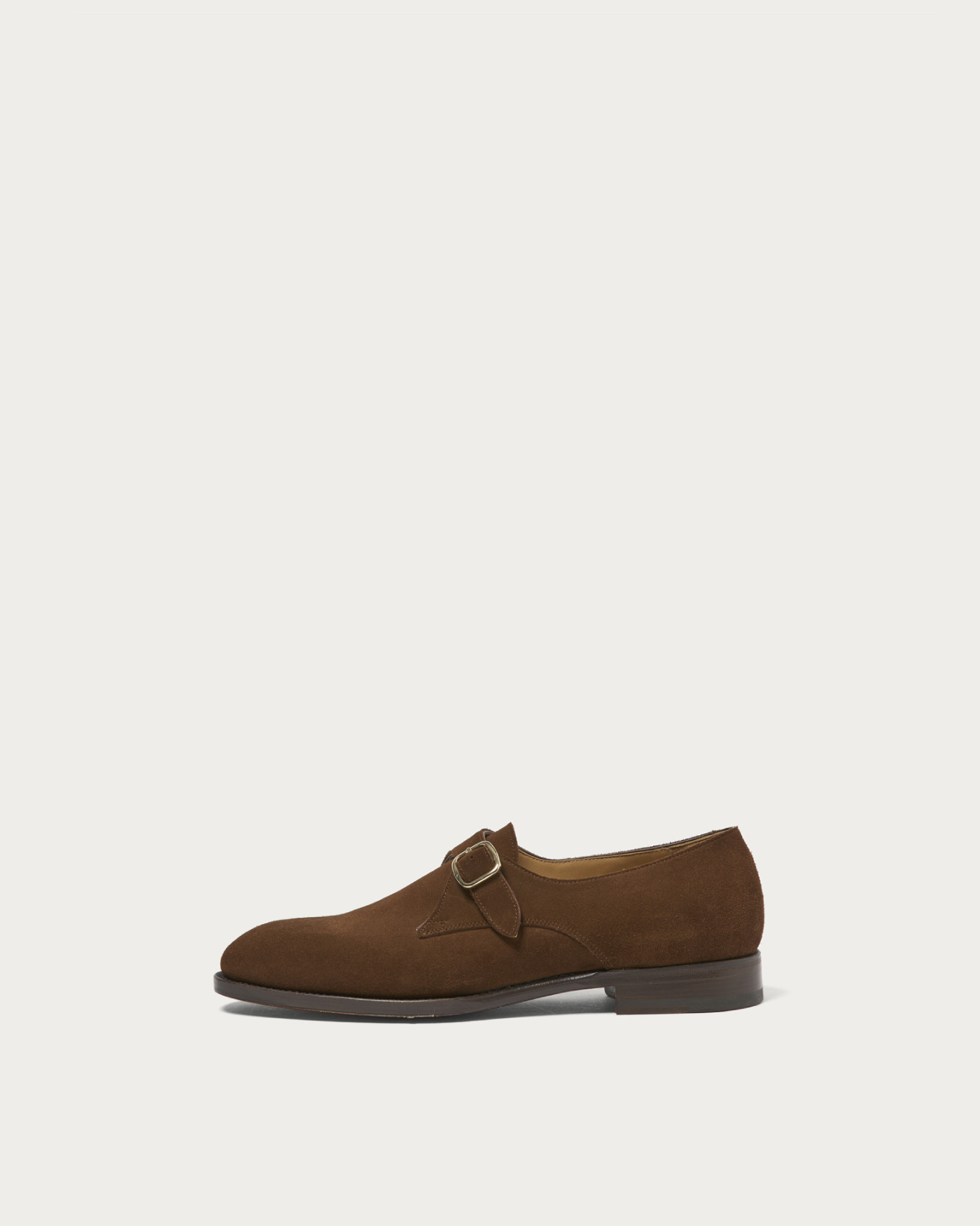 ローファー用の木型をベースに仕立てた〈F.lli Giacometti〉のシングルモンク。ノーズが長すぎず、程よく抜け感のあるフォルムは、カジュアルな装いとも好相性。ドレス顔ながらも、肩の力を抜いて履ける一足です。