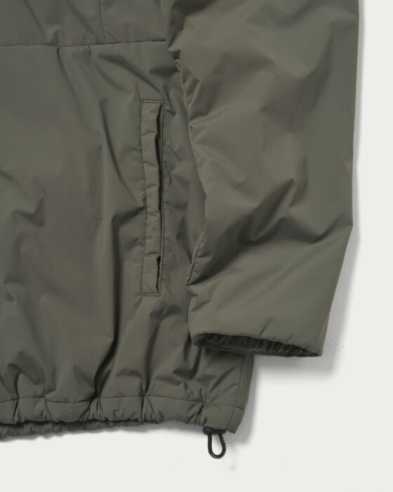 軽やかさとしなやかさを兼ね備えた素材を採用した中綿ジャケット。高密度で織り上げられた生地は、防風性と撥水性を備えながらも軽量で、冬場のゴルフシーンにふさわしい機能性を発揮します。袖には縦に配したブランドロゴがスポーティなアクセントに。同素材パンツを合わせてセットアップとしても着用いただけます。