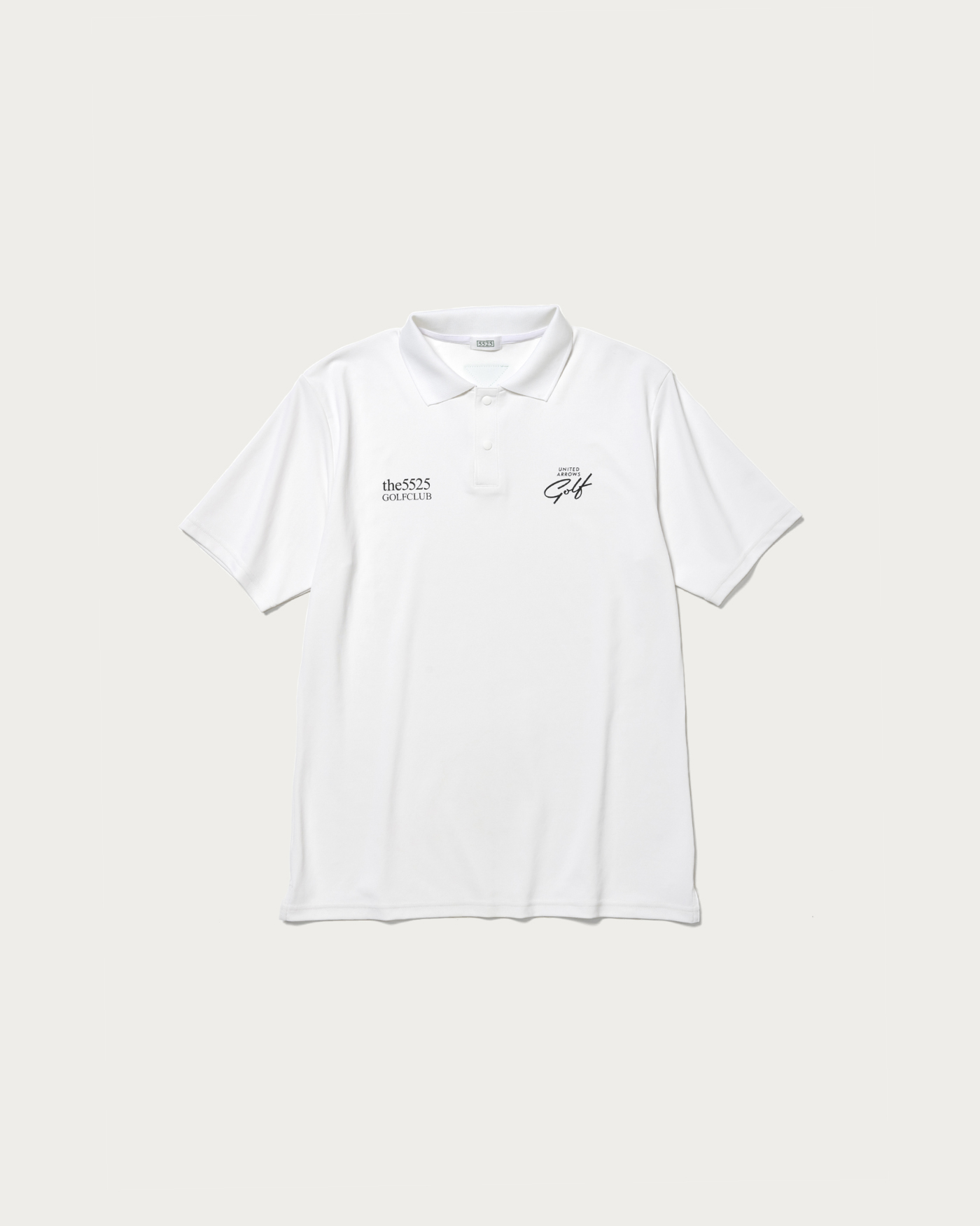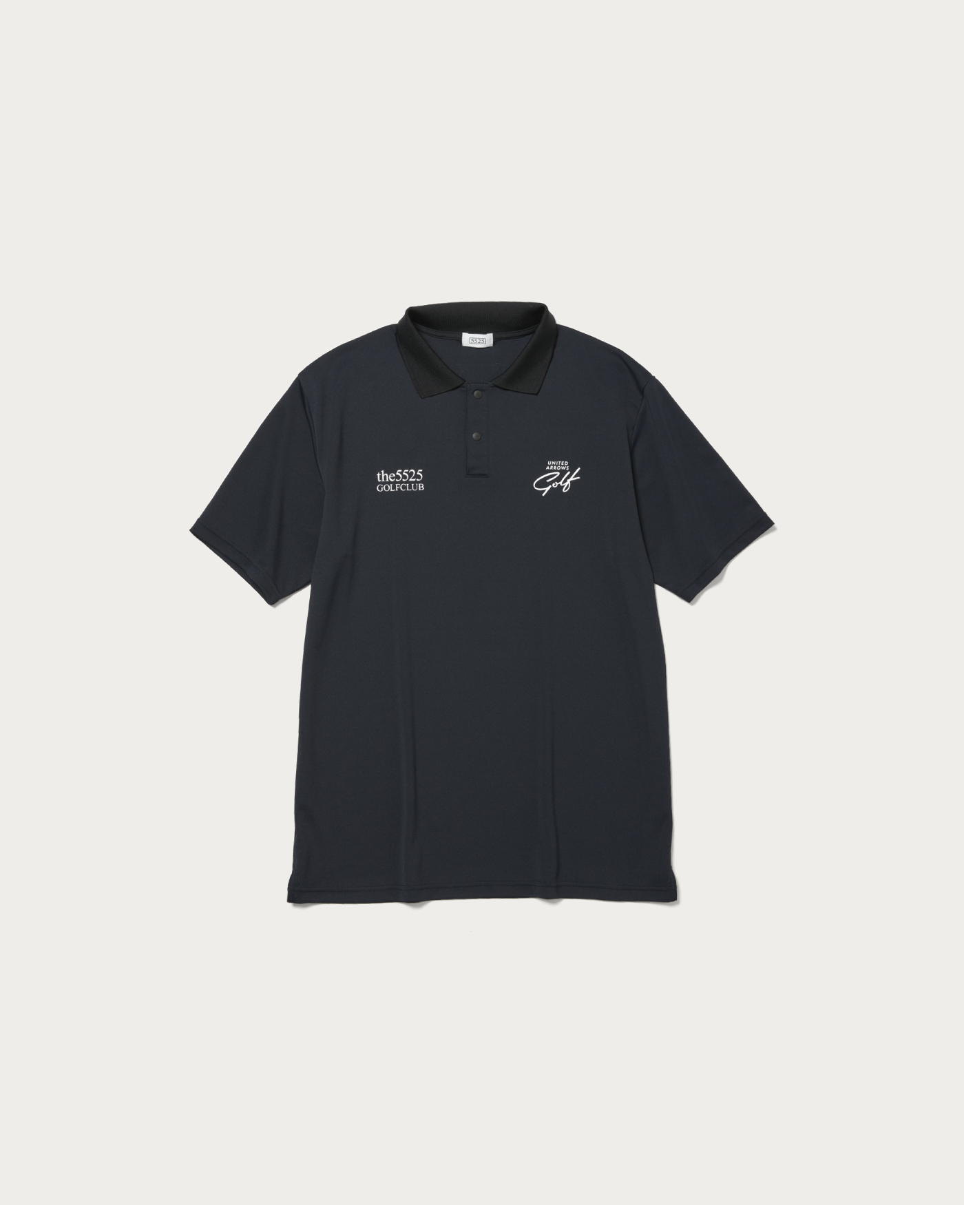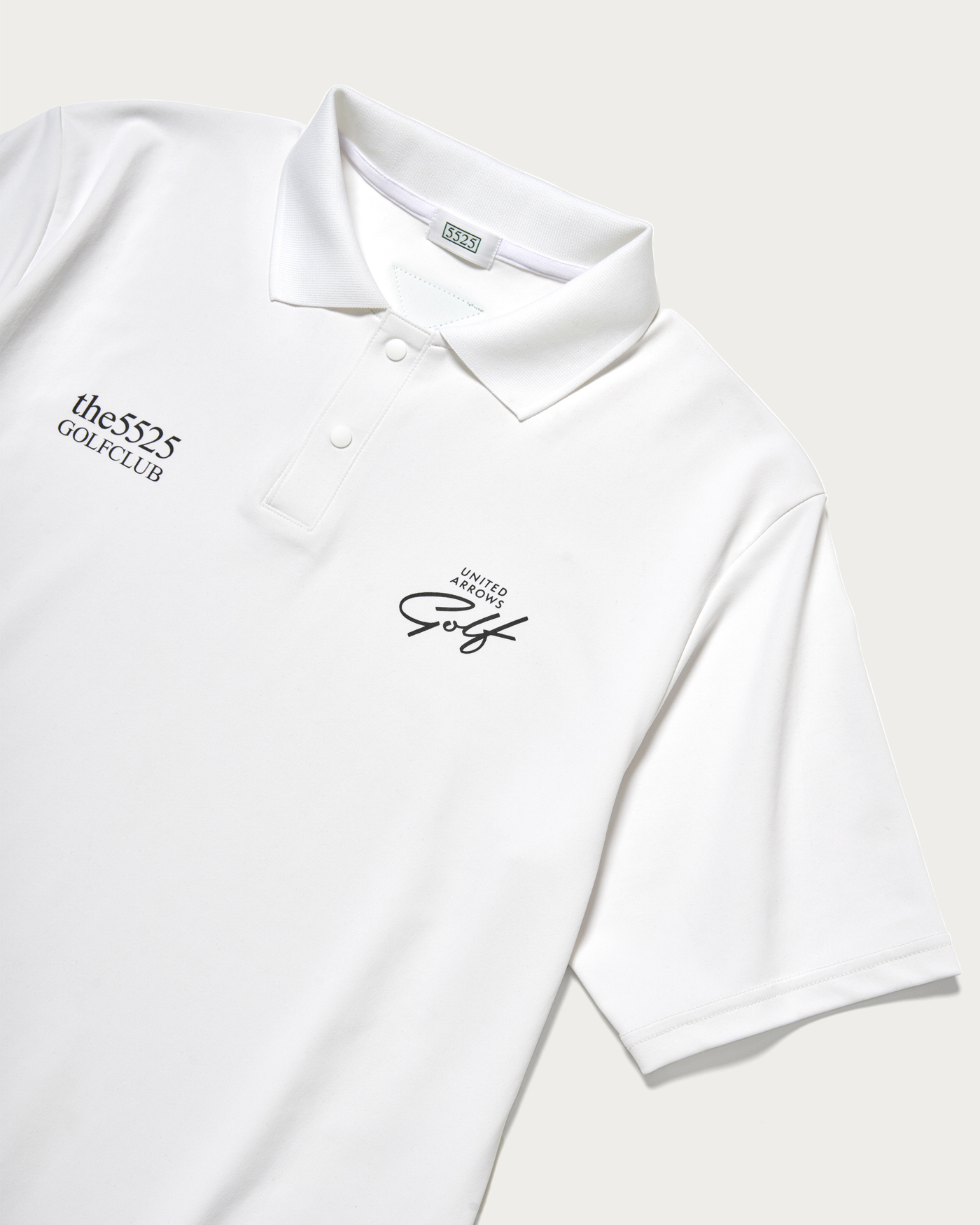 〈5525〉のインラインモデルをベースに素材、カラー、シルエットを別注仕様に変更したポロシャツ。フロント胸部分には両ブランドロゴを配置。背面上部の〈5525〉を象徴するグリーンカラーのシリコンマークを〈ユナイテッドアローズ ゴルフ〉のロゴデザインにカスタマイズしています。