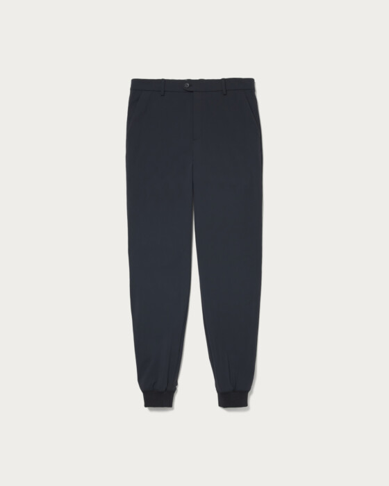 よりシルエットがきれいに見えるよう股上を浅めにし、膝下のフィット感を調整したのシンプルなジョガーパンツ。着こなしの幅が広がるデザインが特徴です。