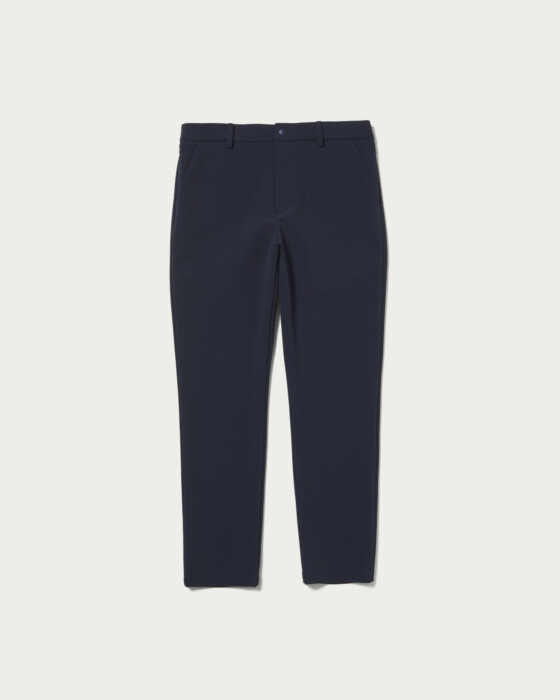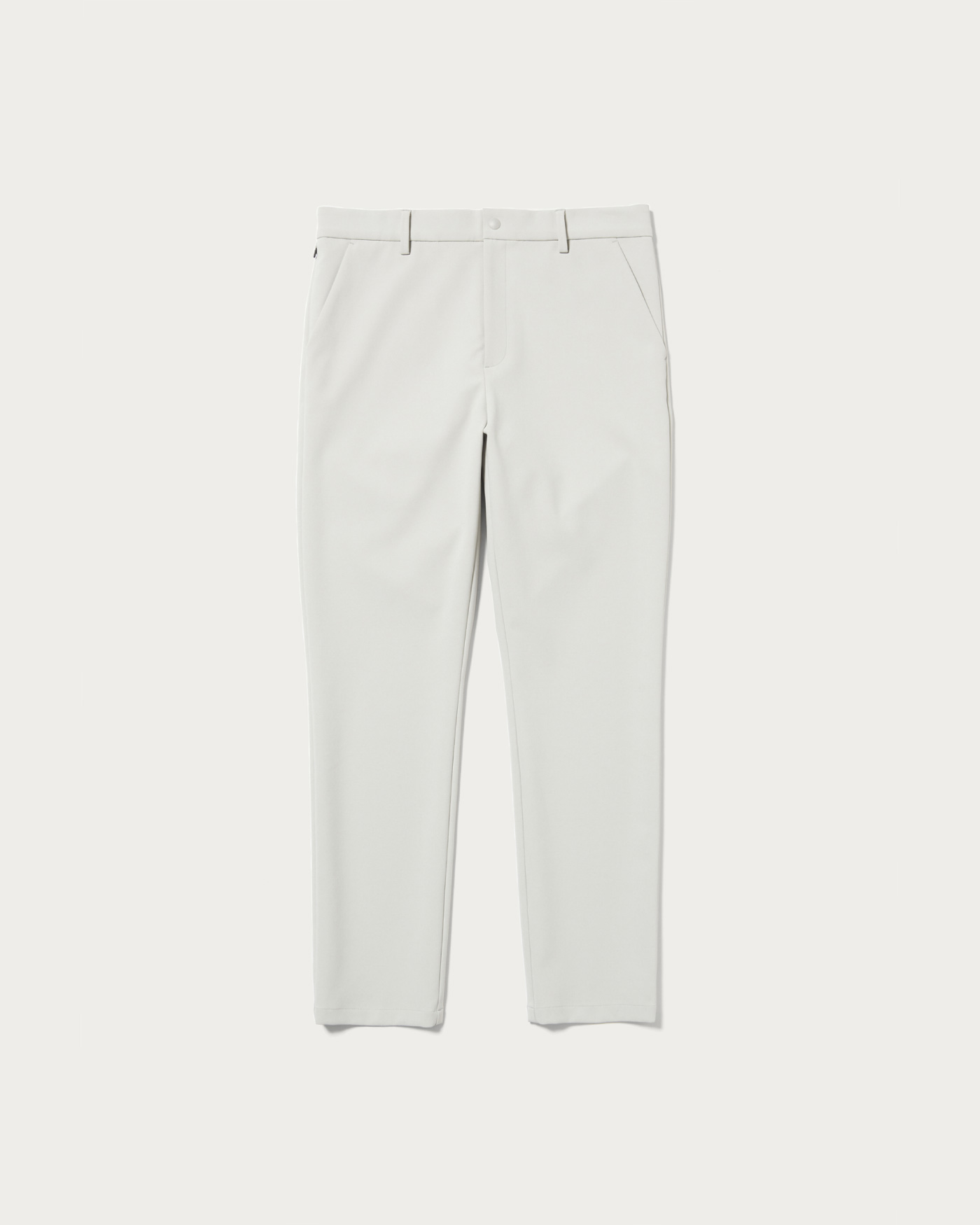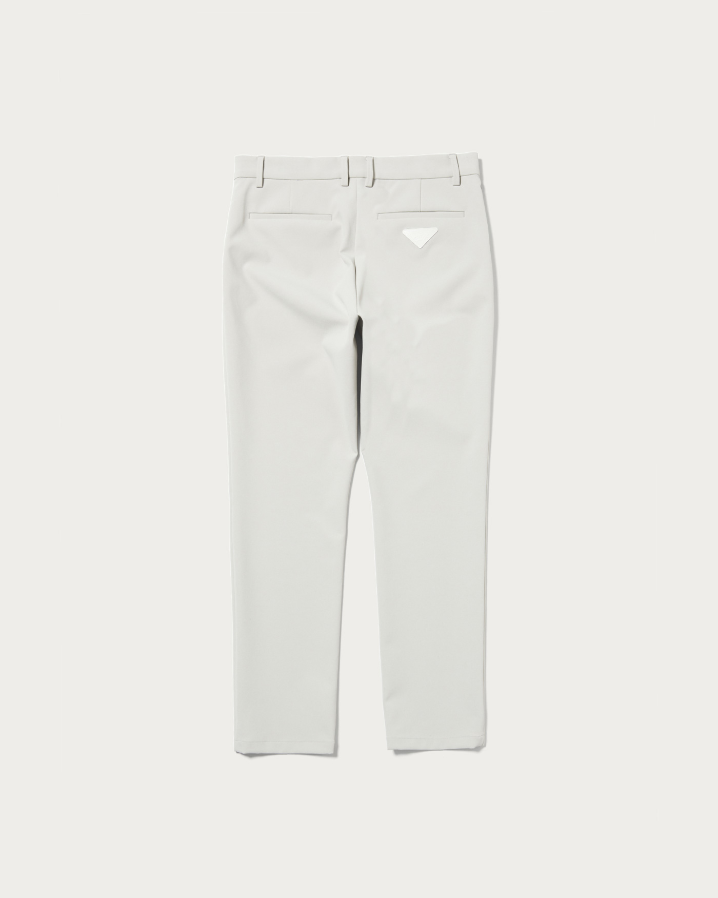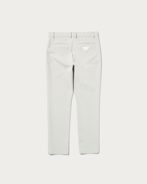 汎用性の高い素材を使用した3シーズン着用可能なスポーティなスリムパンツ。今シーズンより股上をやや浅くし、膝下のテーパードを緩くしたことで、よりアクティブな動きにも対応可能なシルエットにこだわりました。後ろ右ポケット部と膝下部分にロゴを配しています。