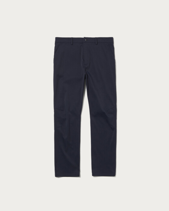 スポーティな素材を使用したスリムパンツ。今シーズンより股上をやや浅くし、膝下のテーパードを緩くしたことで、よりアクティブな動きにも対応可能なシルエットにこだわりました。後ろ右ポケット部にロゴを配しています。