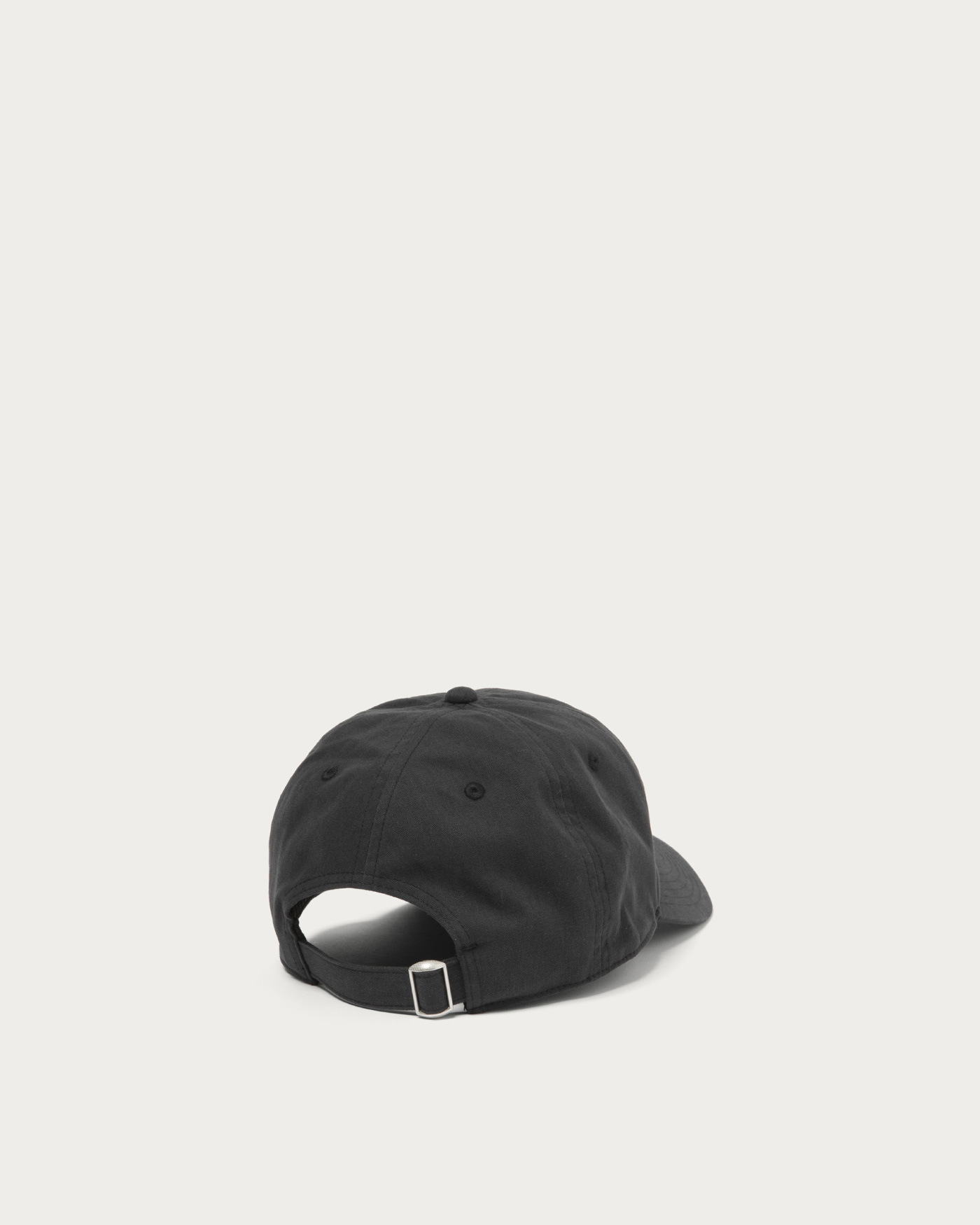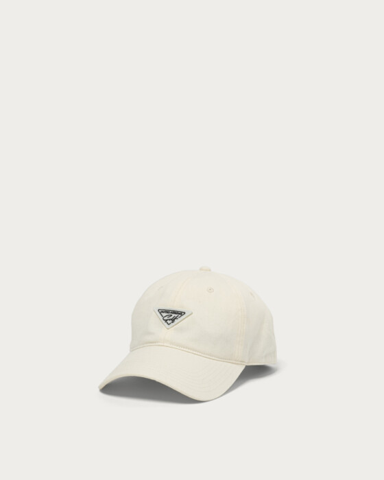 フェード感のあるコットンナイロン素材を使用した6パネルキャップ。フロントに三角のロゴワッペンを配し、やや浅めのデザインにしています。