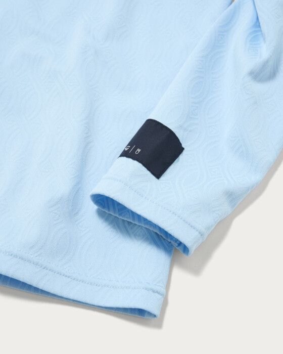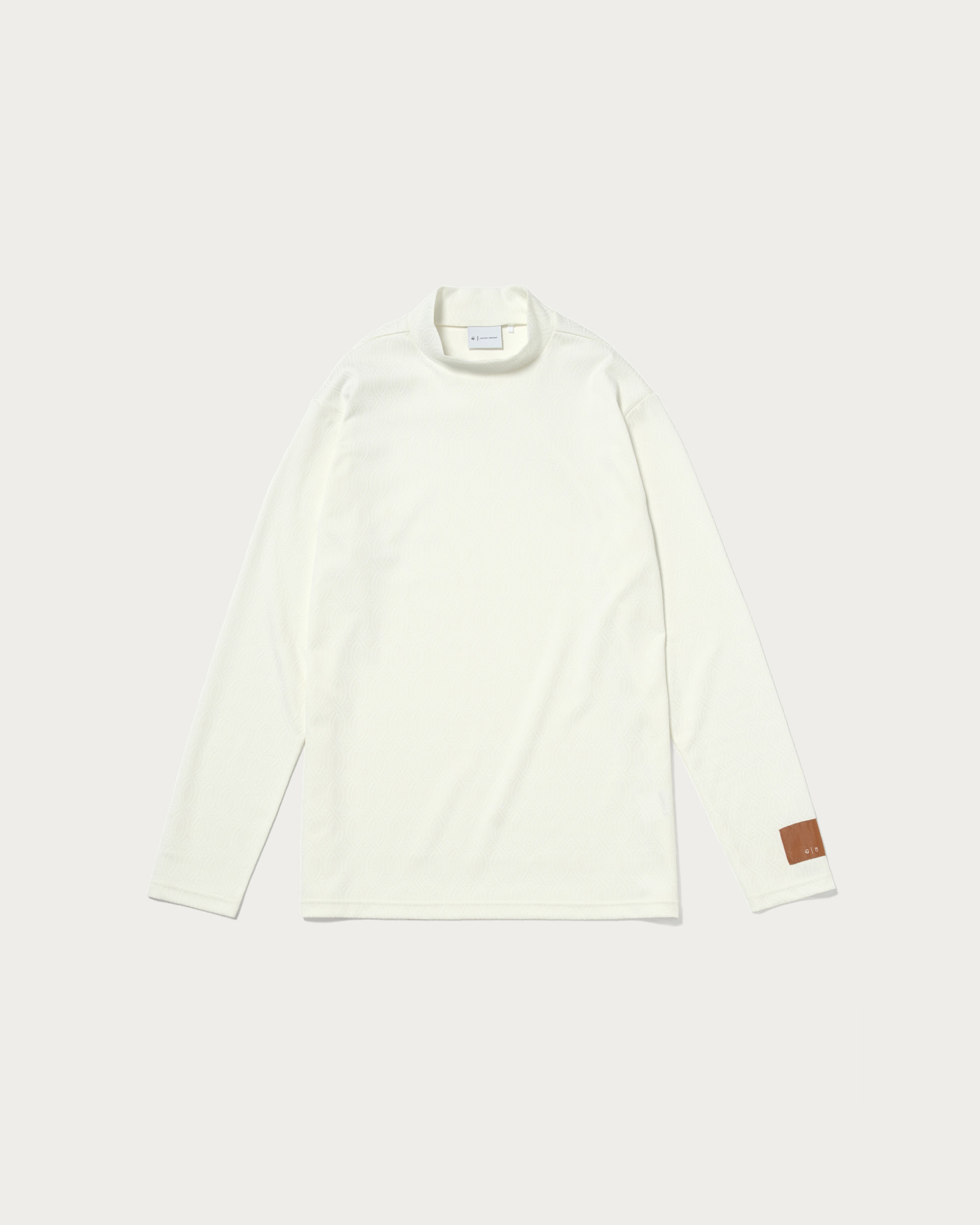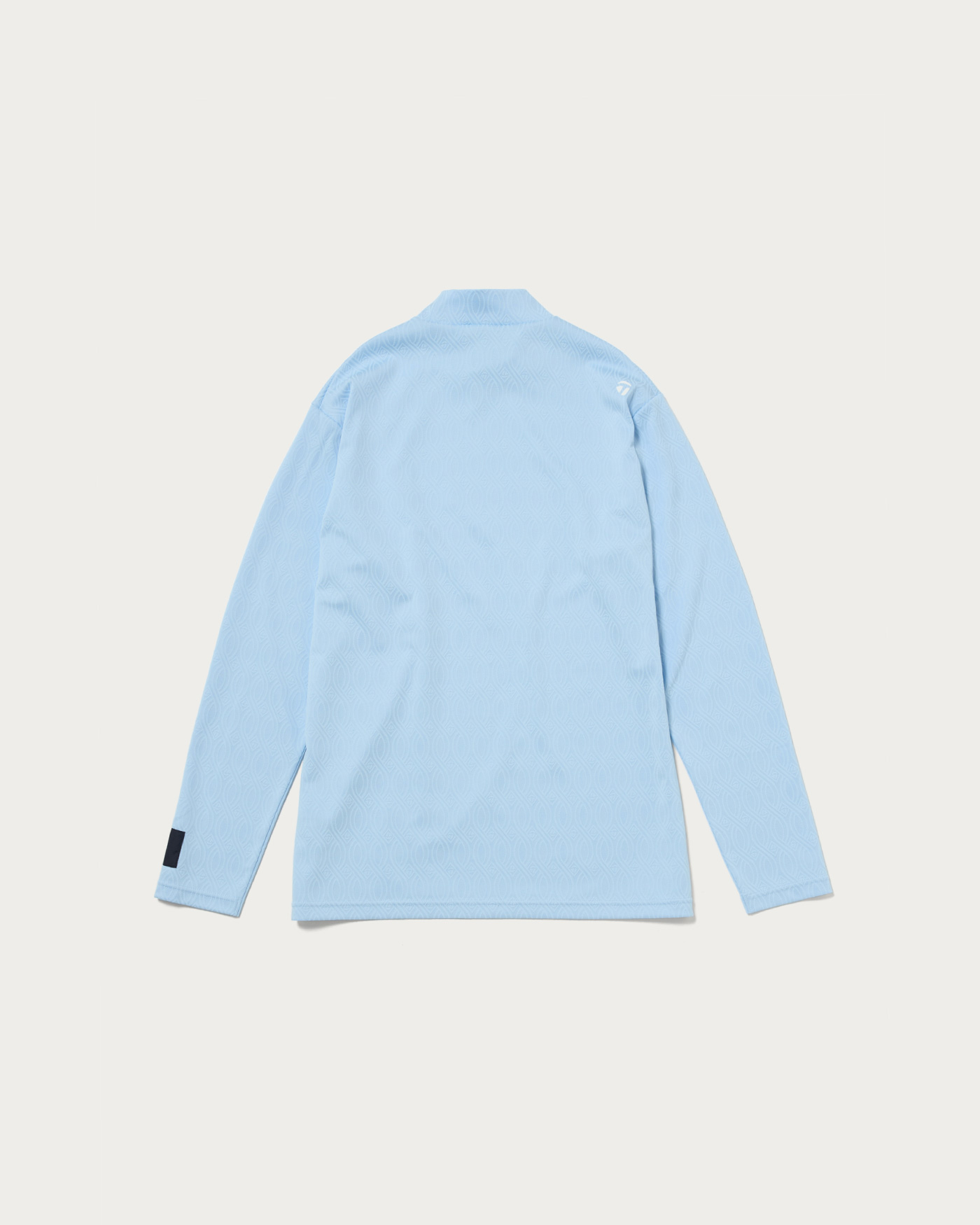 レトロな幾何学模様とメタルTを組合せ、ジャカードで表現したモックネックシャツです。吸水速乾性素材が採用されています。テーラーメイドとユナイテッドアローズによるコラボコレクションです。