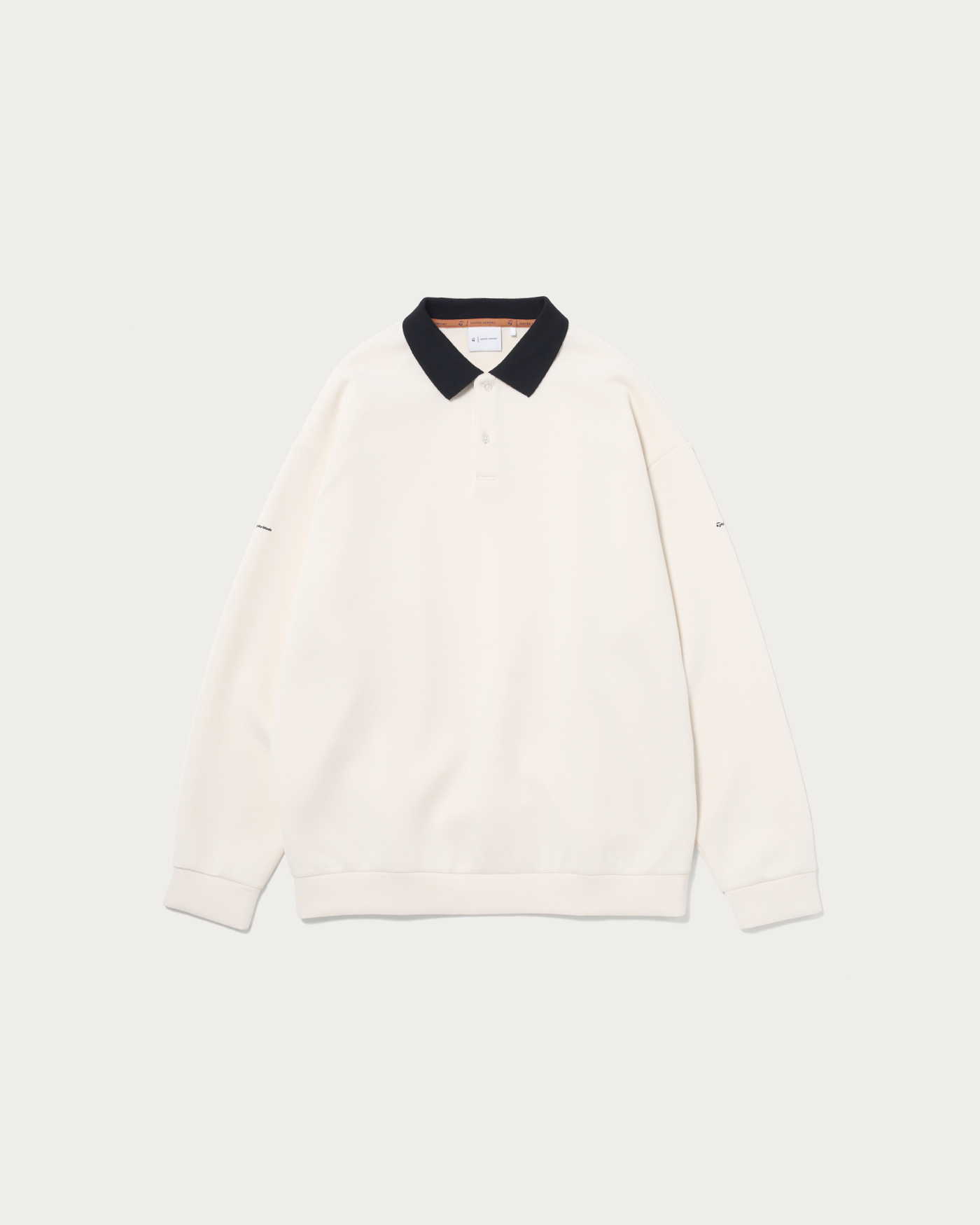 リラックスシルエットのスウェットポロシャツです。温かみがあり、やや表面感のある素材が特徴です。テーラーメイドとユナイテッドアローズによるコラボコレクションです。