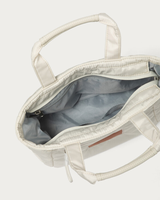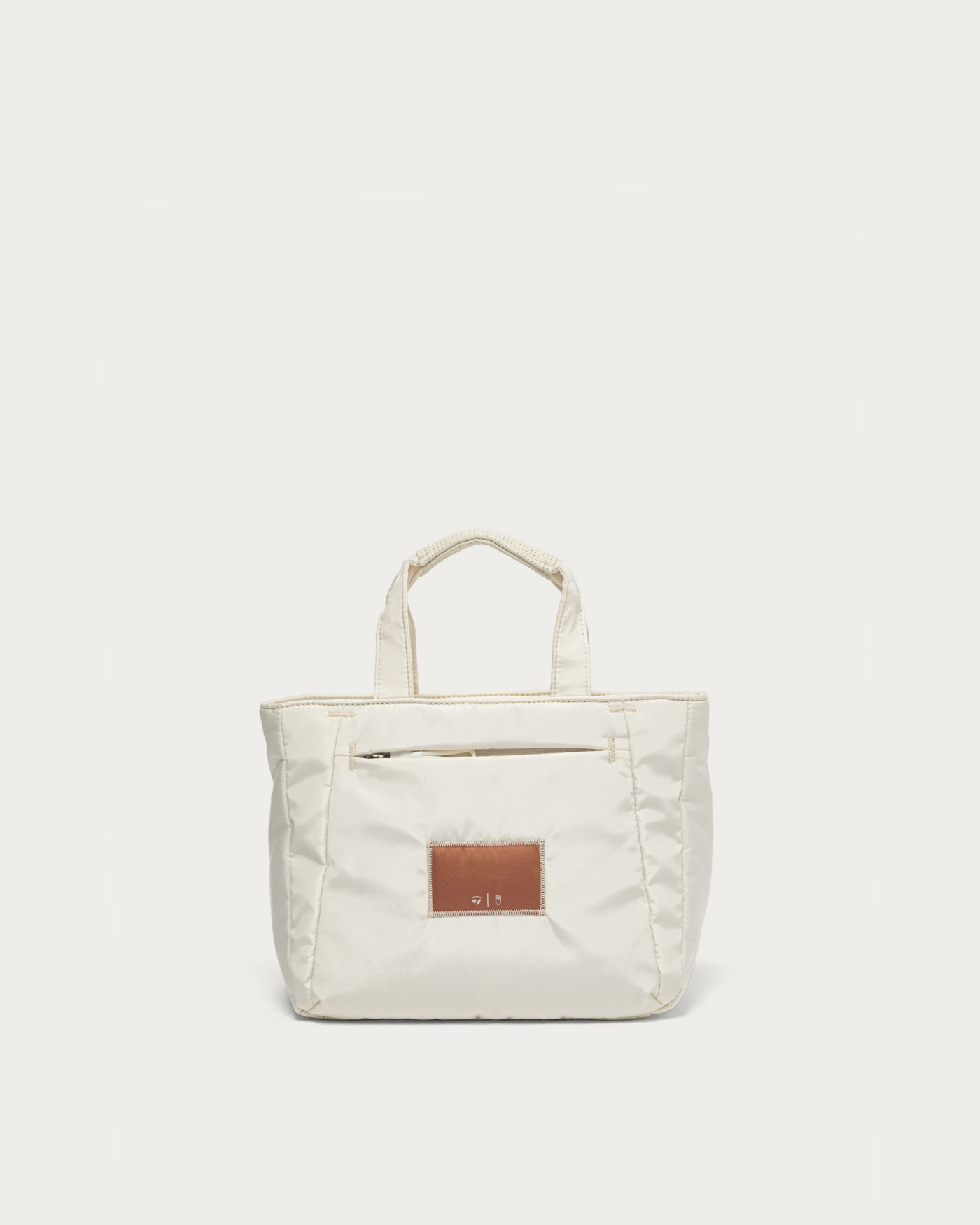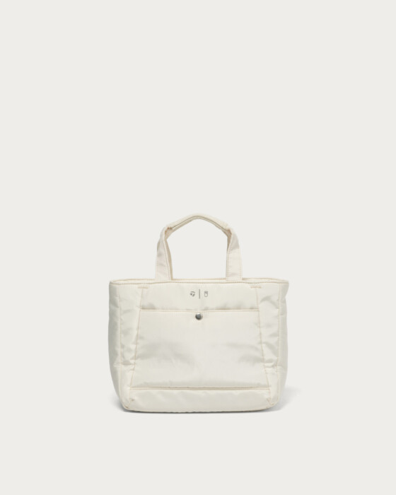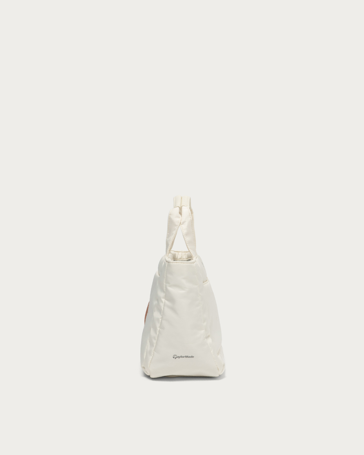 リラックス感のあるふんわりした質感のオフホワイトのポリエステル素材を採用し、ボディにUAのブランドカラーであるオレンジのワッペンをアクセントにしたラウンドトートバッグ。正面にはファスナーポケット、背面にはスナップ開閉のオープンポケットを配置した、使い勝手や収納力にも優れたアイテムです。