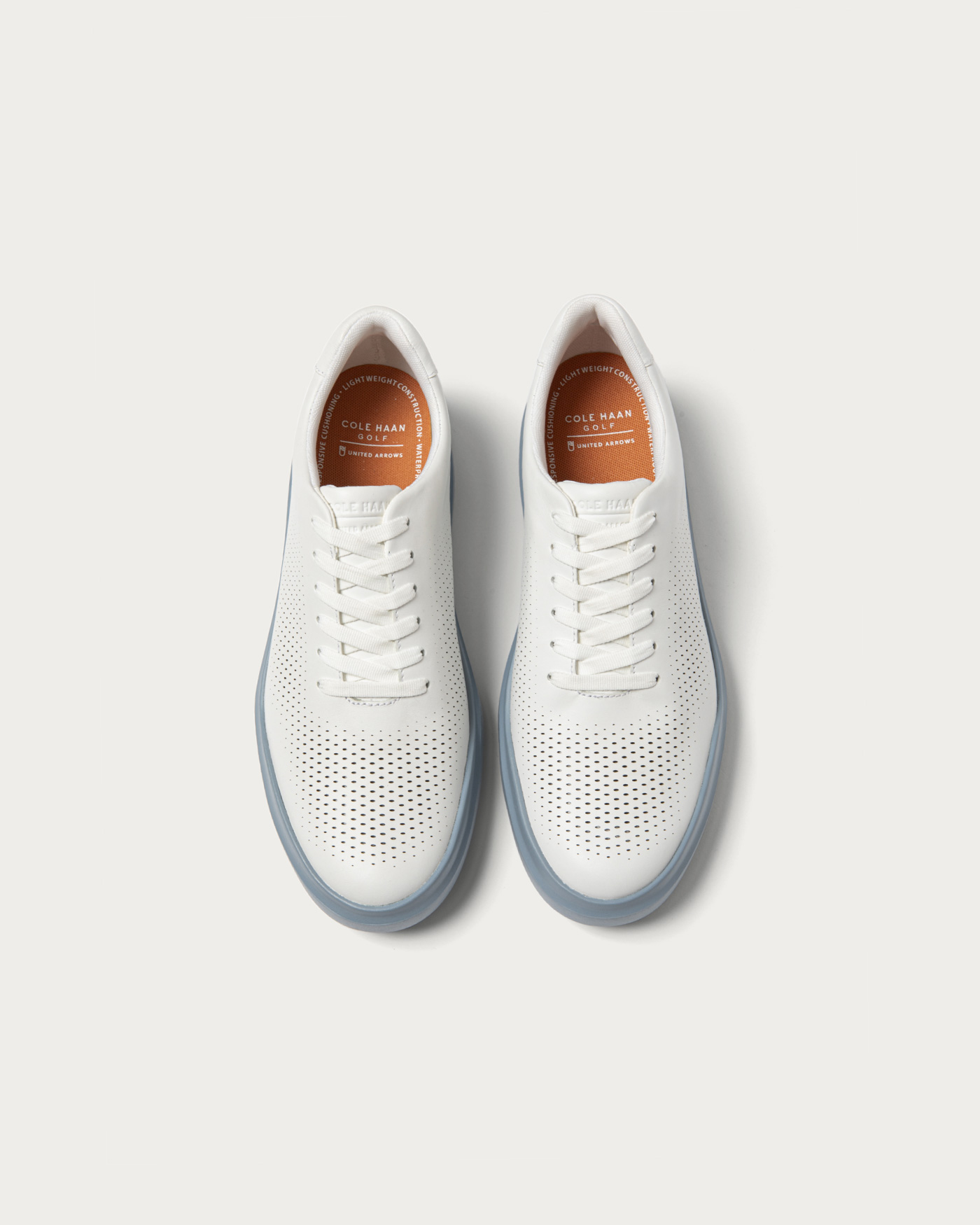 「GRANDPRO RALLY LASER CUT」のアッパーを使用し、スポーティな印象の中に上品さを感じるデザインに仕上げたスパイクレスのゴルフシューズ。コールハーンとユナイテッドアローズによる特別なゴルフパックコレクションです。