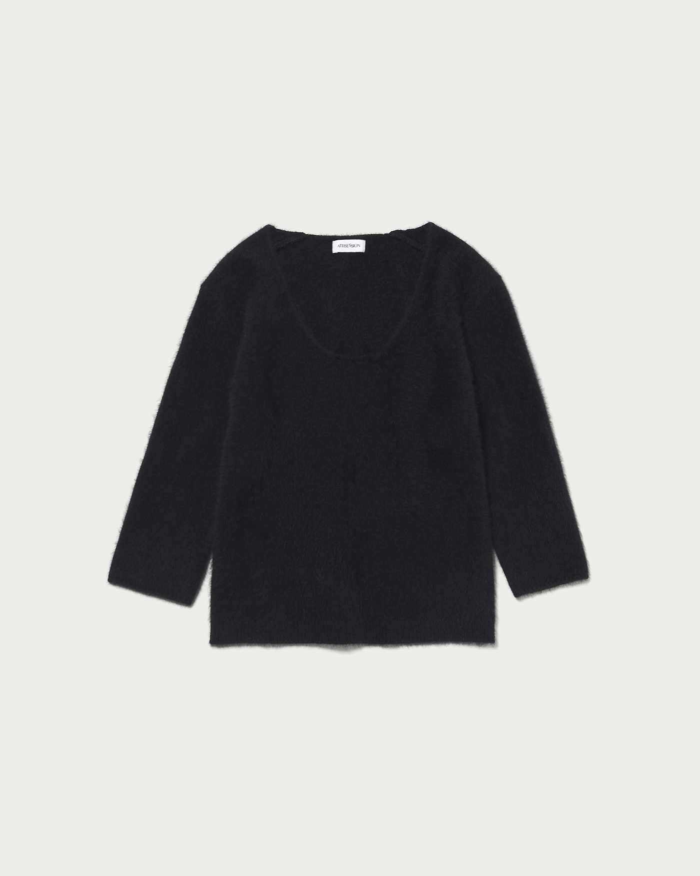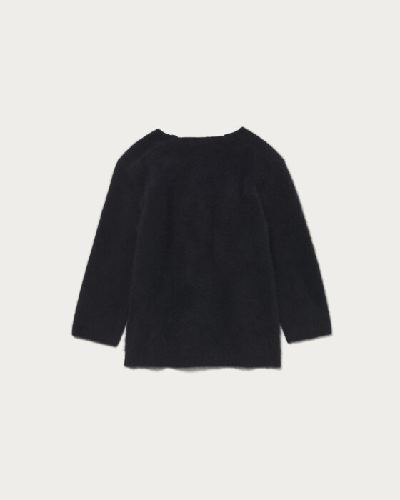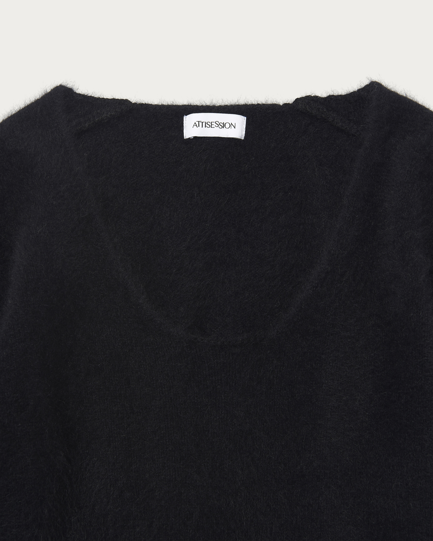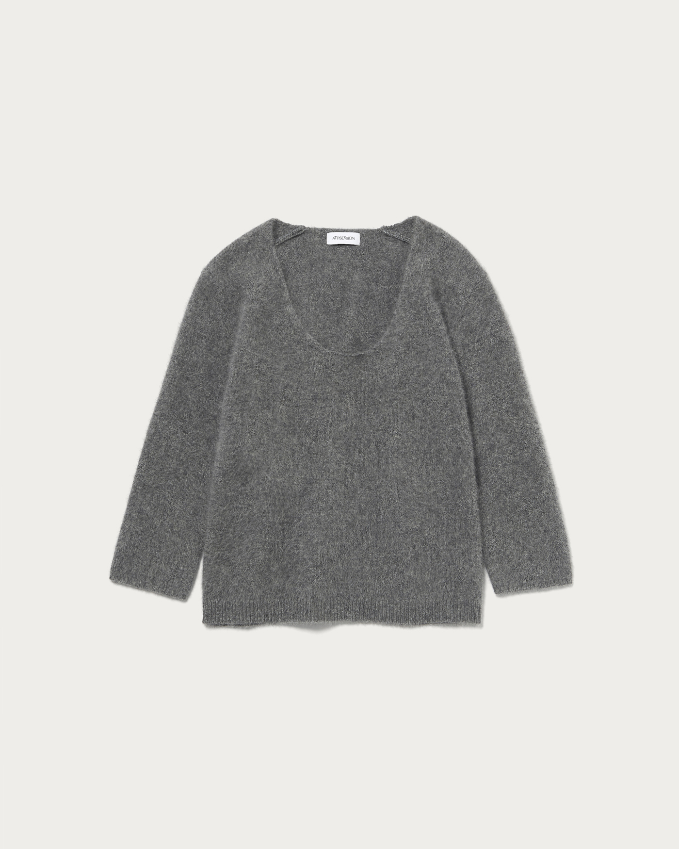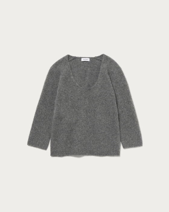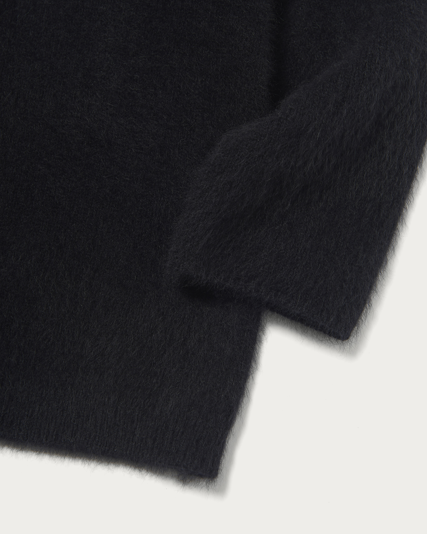 シャツやTシャツとのレイヤードも楽しめるディテールのリラックスシルエット。上質な糸を使用し肌ざわりと質感にもこだわった一着。