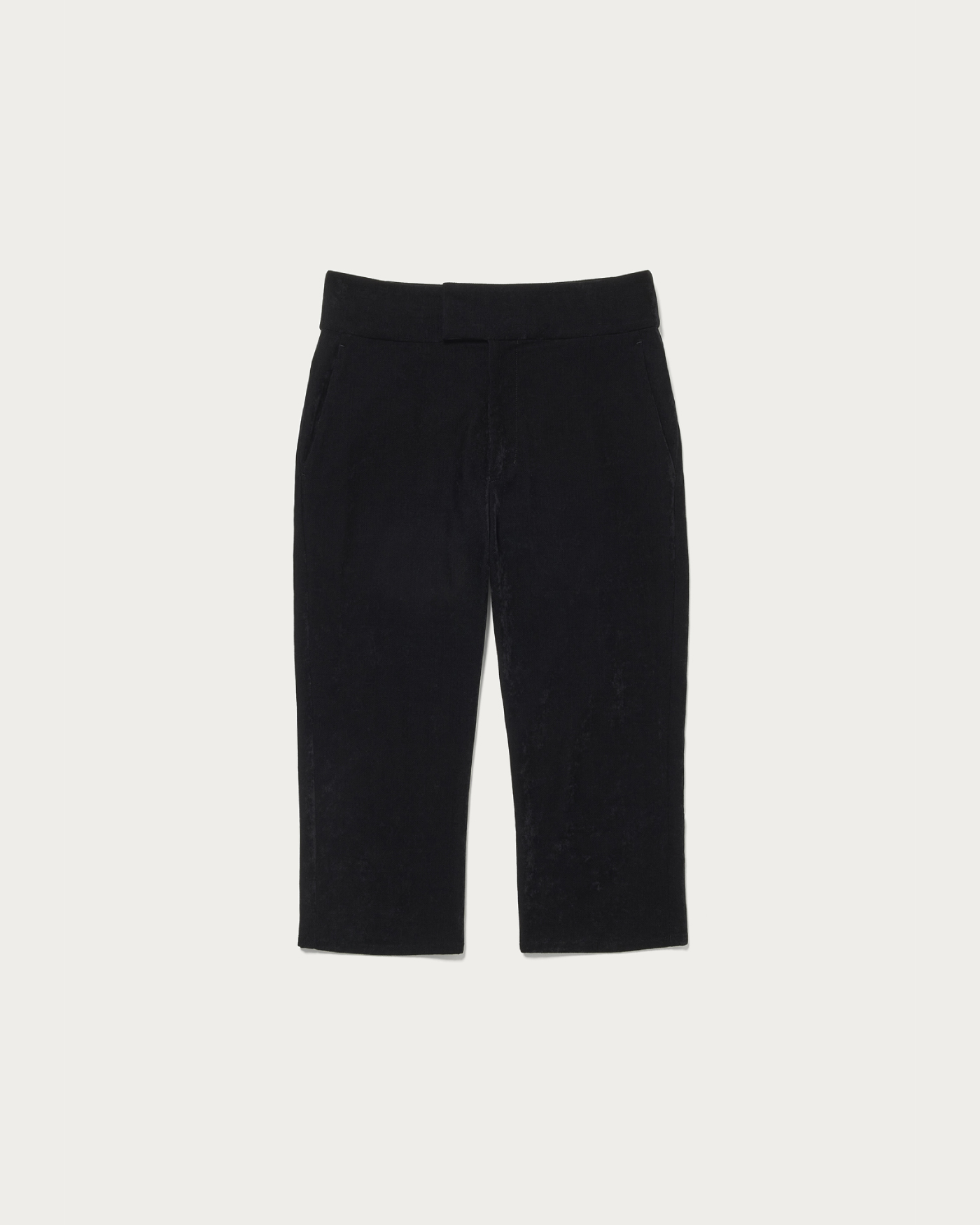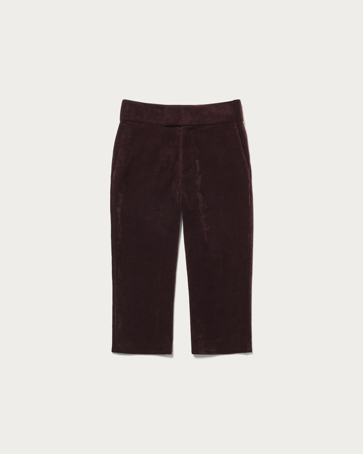 旬なスタイルへと導く、シーズンムードを纏うベロア素材のカプリパンツ。無駄のないシンプルなデザインながら、ポケット付きでデイリー使いに重宝する一着です。