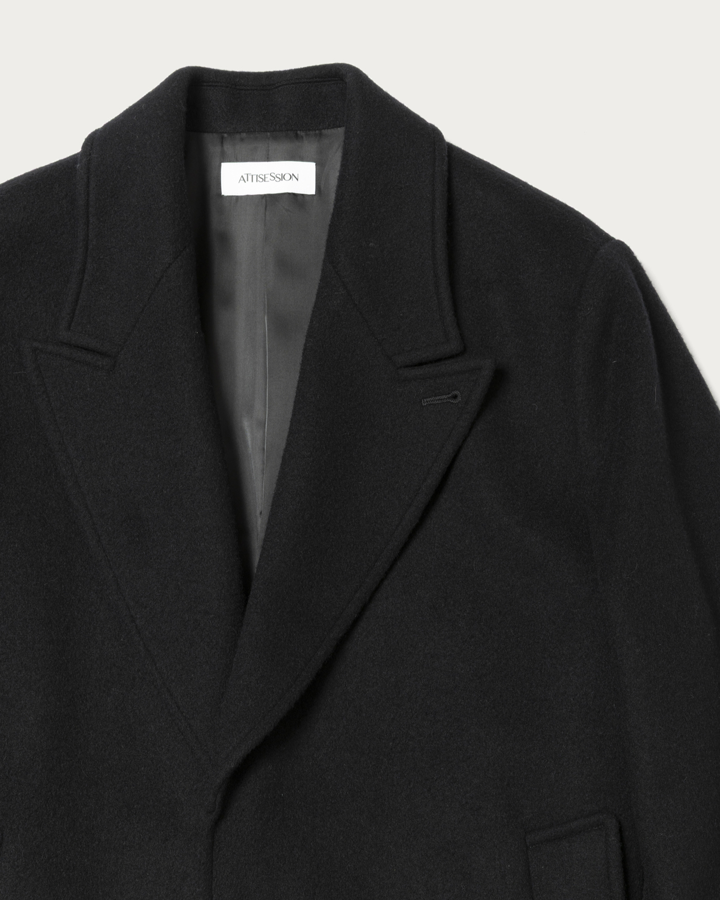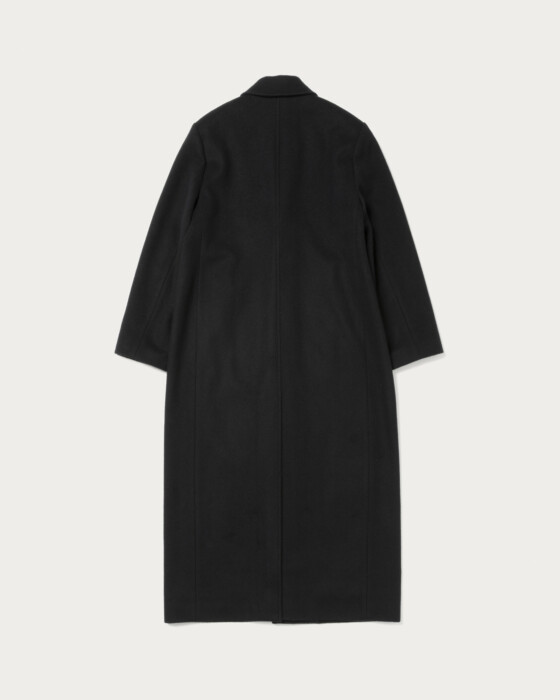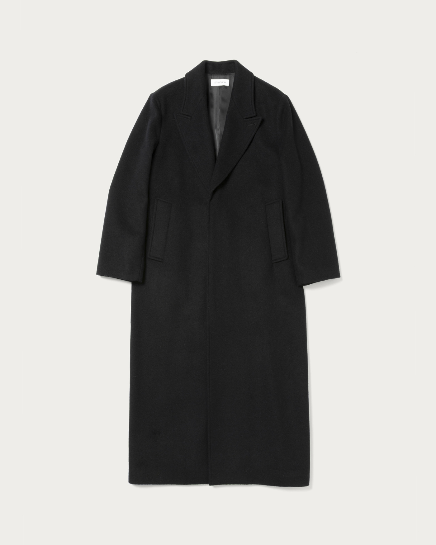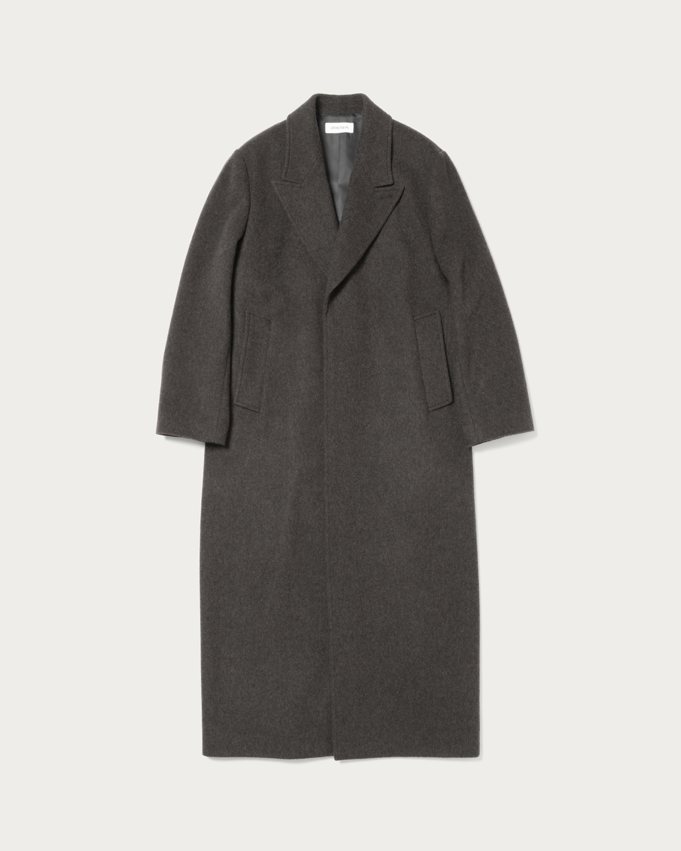 ピークドラペルジャケットのデザインを採用したマニッシュなロングコート。昨年よりも肩幅をコンパクトにリサイズし、より着やすさにこだわりアップデートした一着です。