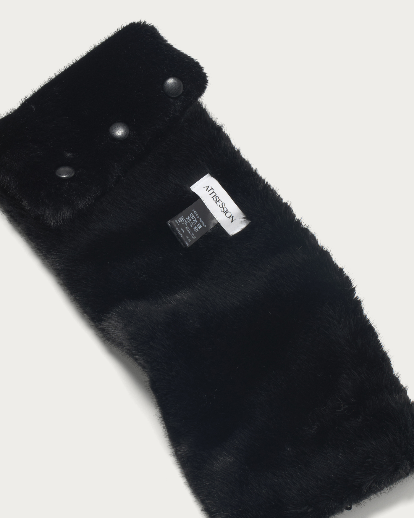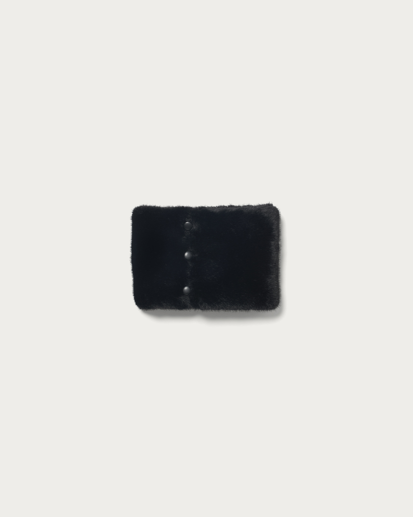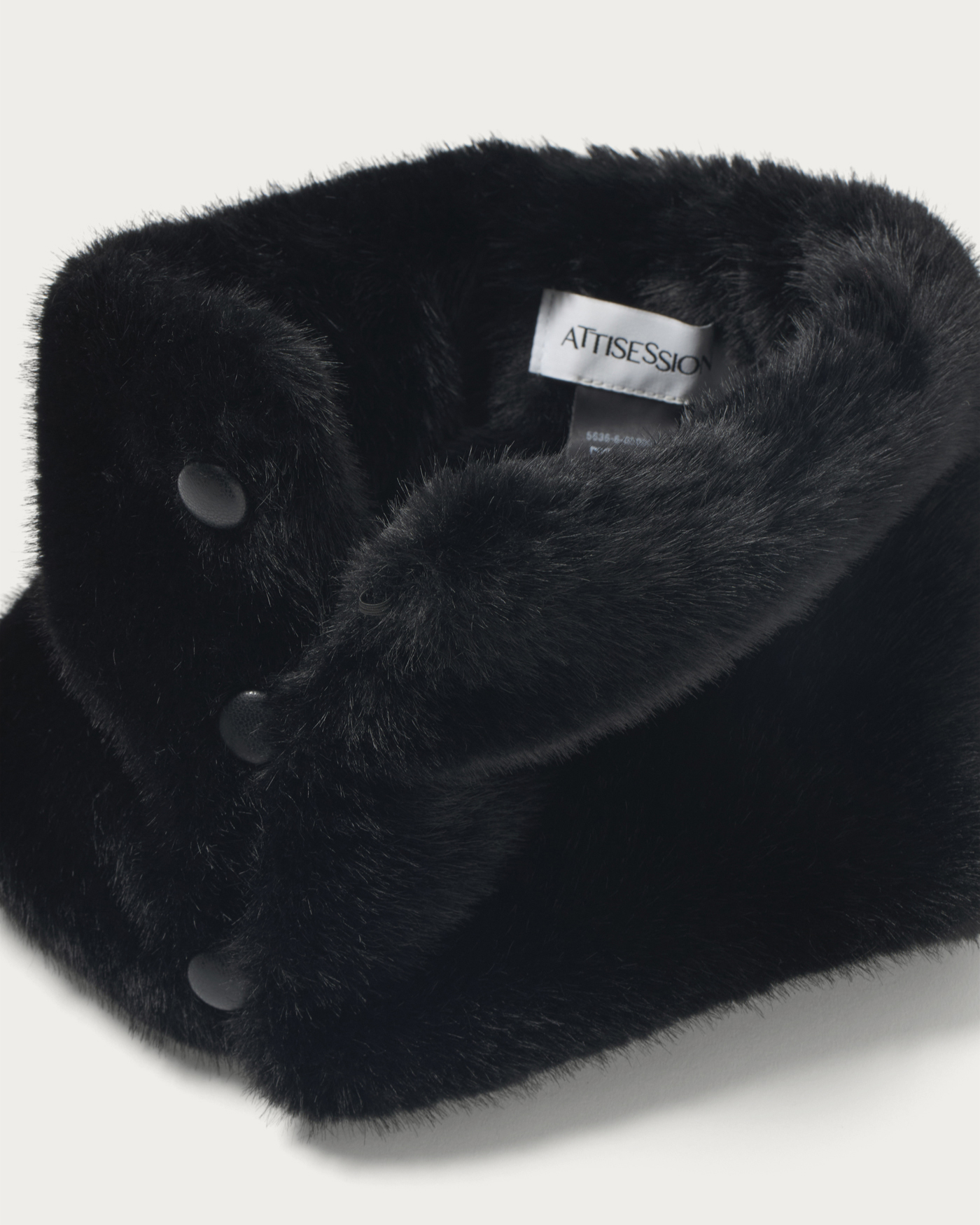 コンパクトに身に付けられるファーマフラー。レザーのボタンは全て閉めても、ボタンをはずし襟のようにも楽しめます。かさばらないサイズ感がデイリー使いを叶えるカジュアルモードなアテムです。