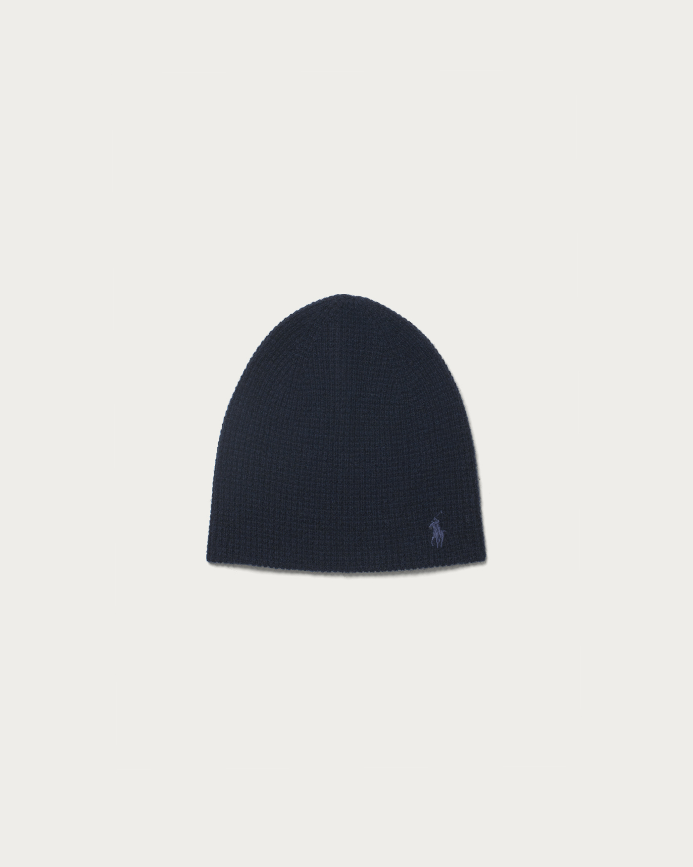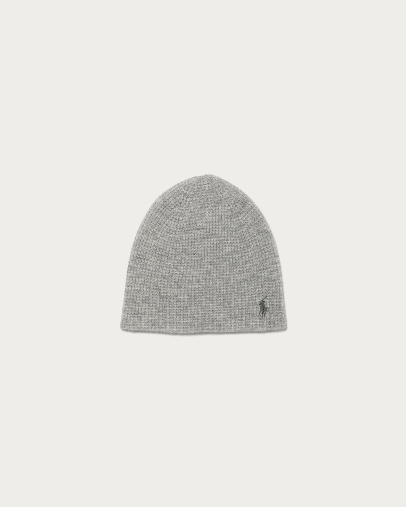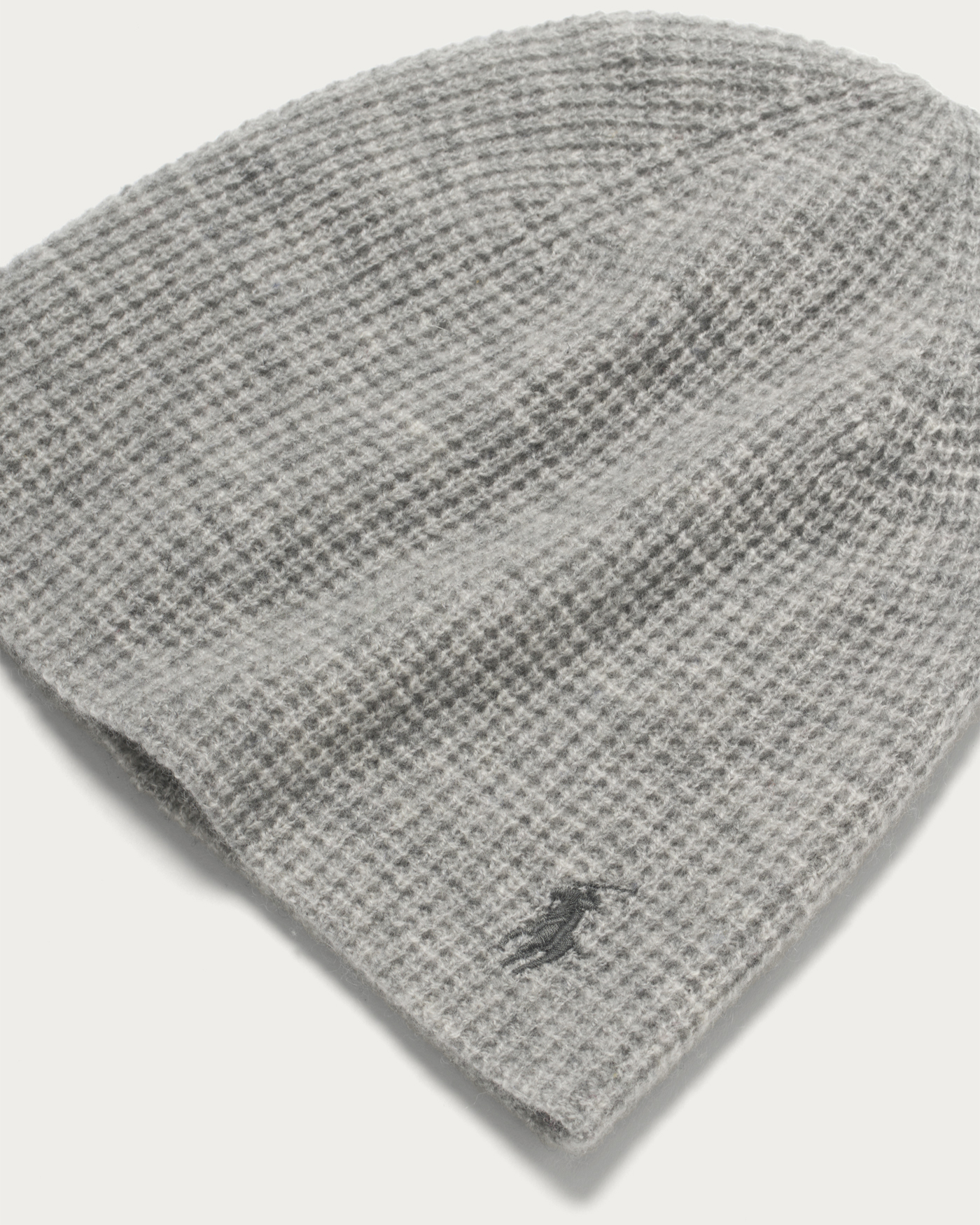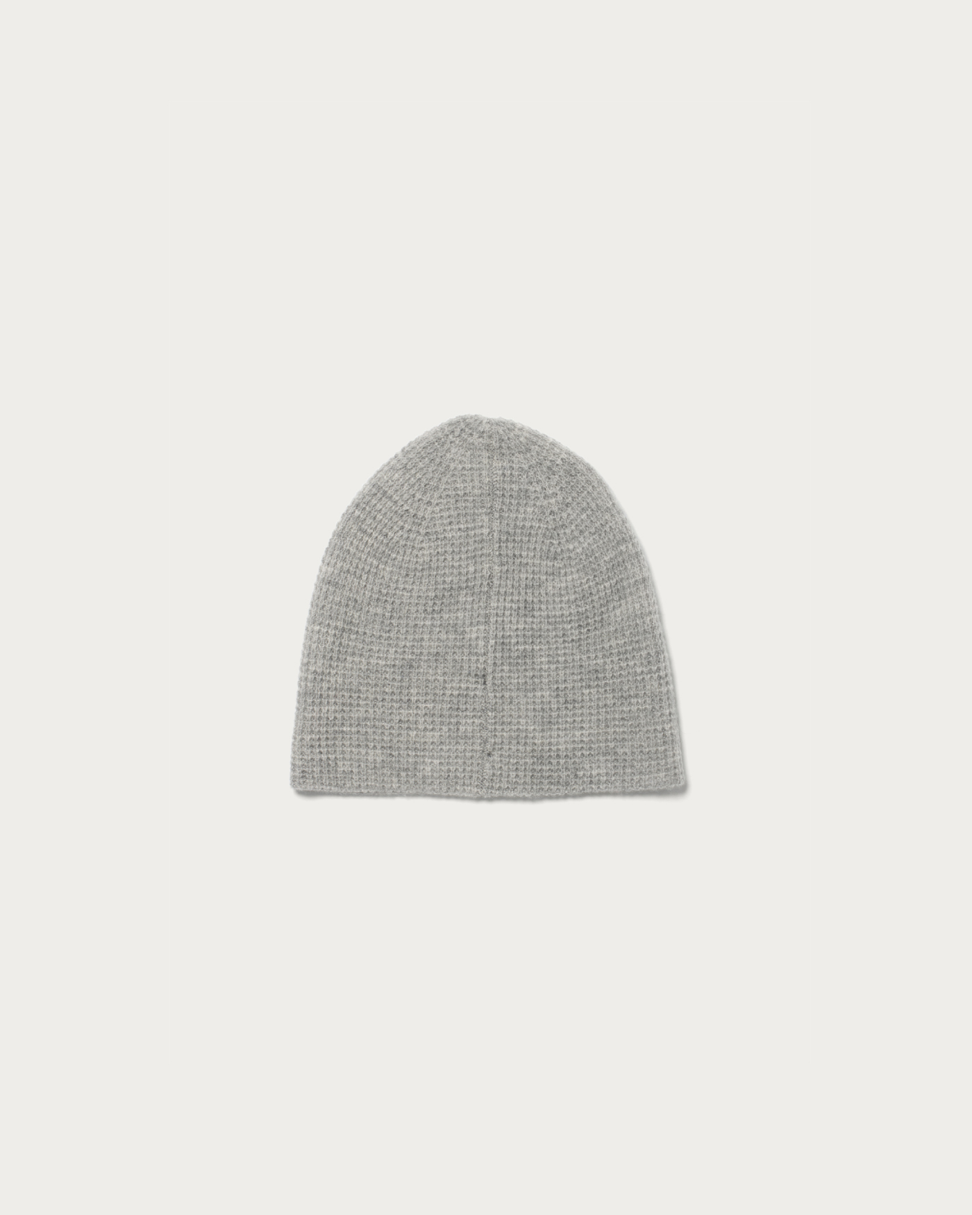 ウールカシミヤ素材のワッフルビーニー。ワッフル地がどこかライトなニュアンスをプラス。ワントーンでシックにまとめるのがおすすめです。