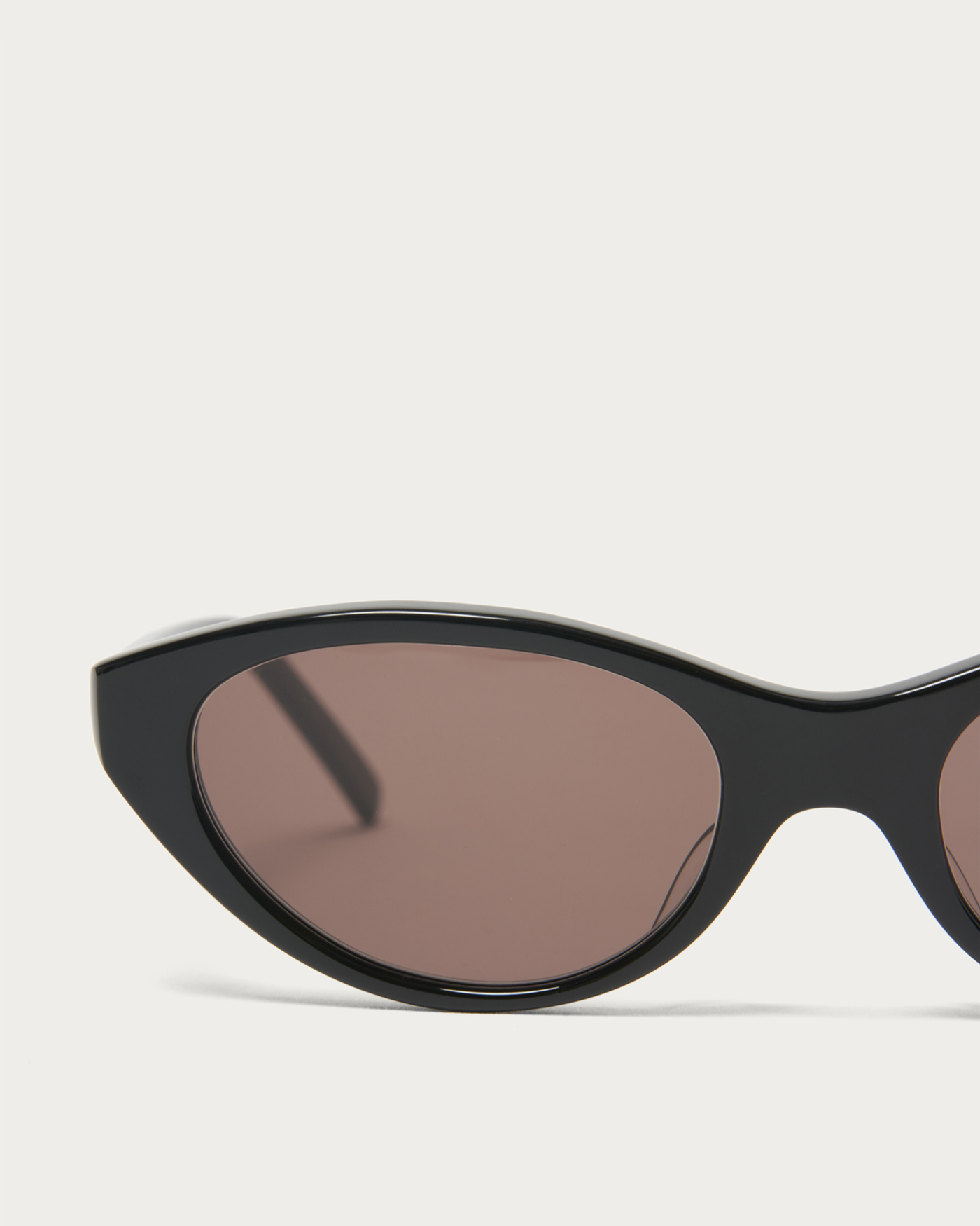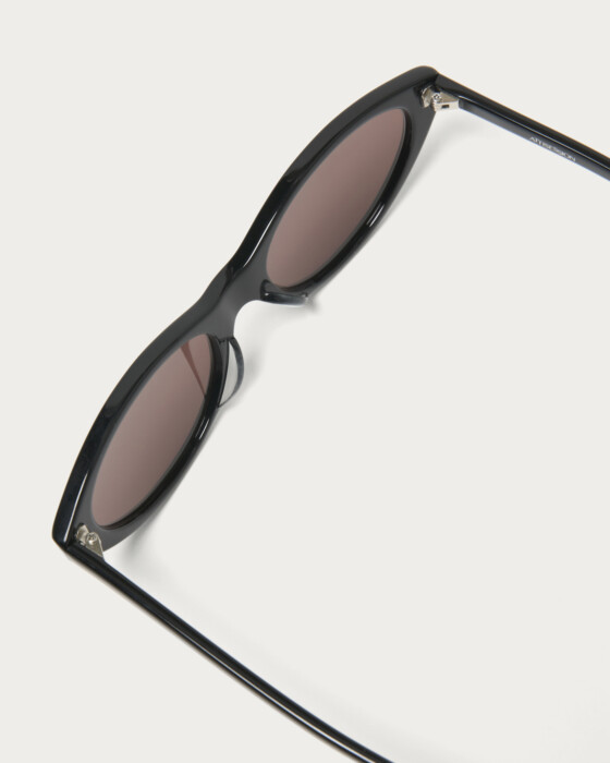 〈金子眼鏡〉と〈アティセッション〉の別注モデル。型からオリジナルで作成した浅くシャープなシルエットに、90年代のムードがあふれます。