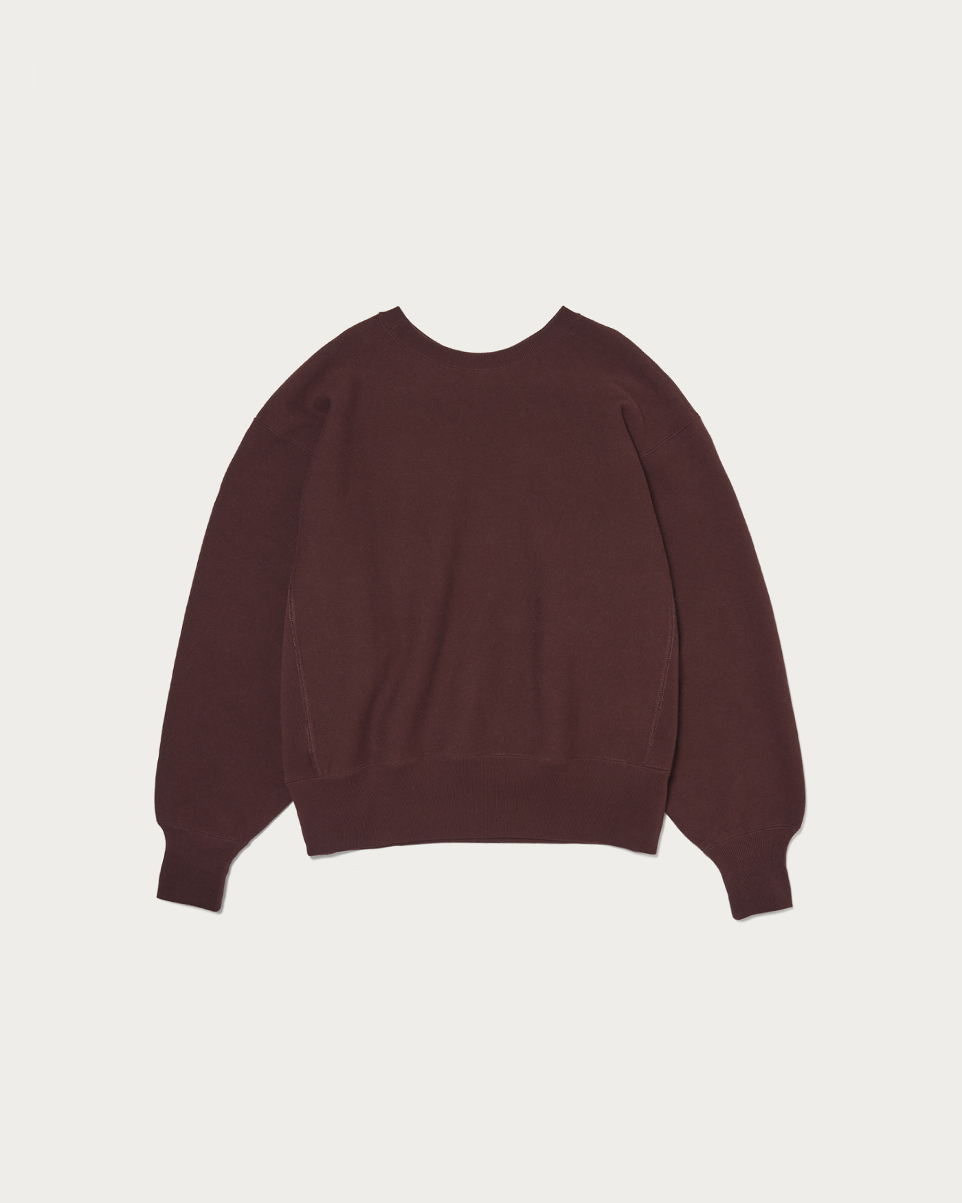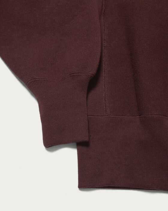 毎シーズン好評の「REVERSE WEAVE(R)」を復刻したやや短丈のボックスシルエットが特徴。ゆったりとした肩幅とアームが太めに取られており、なだらかなドロップショルダーのラインが出ます。詰まったネックと前後差があまりつかないフォルムもポイント。定番使いしやすいオフホワイトと、一からカラー出しを行ったワインとダークグリーンの3色をご用意しました。