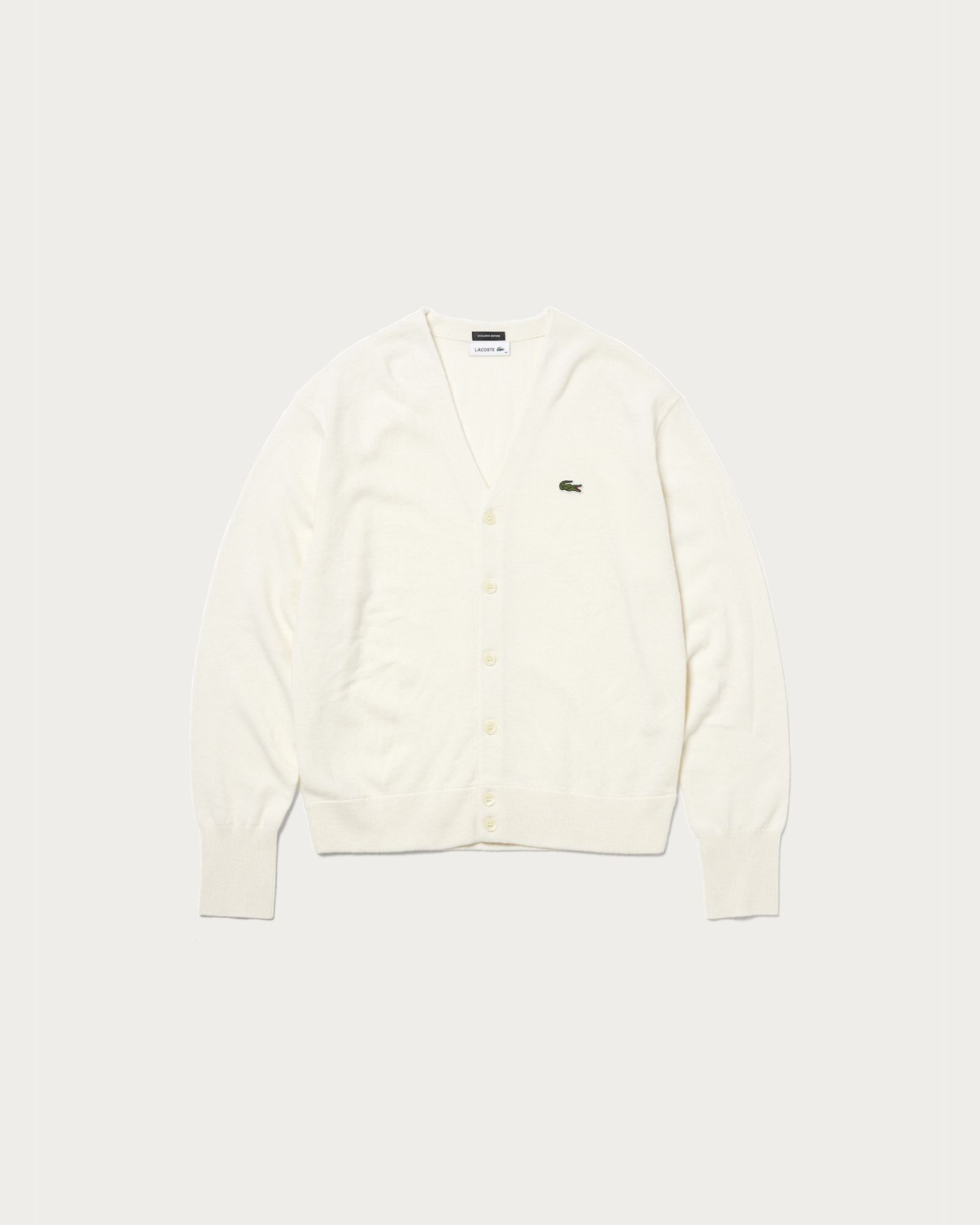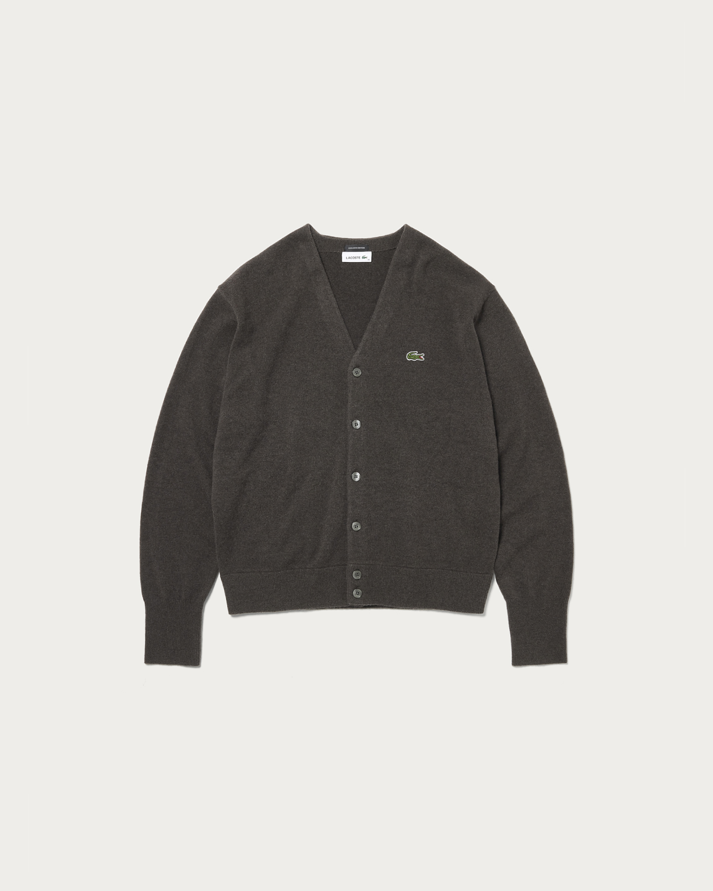 ダブルジャガードで編み立てた後に起毛加工を施し、ふわふわの風合いに仕上げたラクーン混のカーディガン。大きなポケットがデザインのポイントです。サテンや梳毛ウールなどの落ち感のある素材のボトムや、スカートと合わせるのがおすすめ。ラフにロンTをインナーに入れてもサマになります。