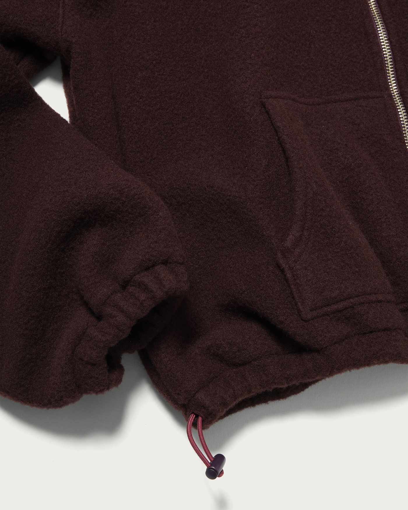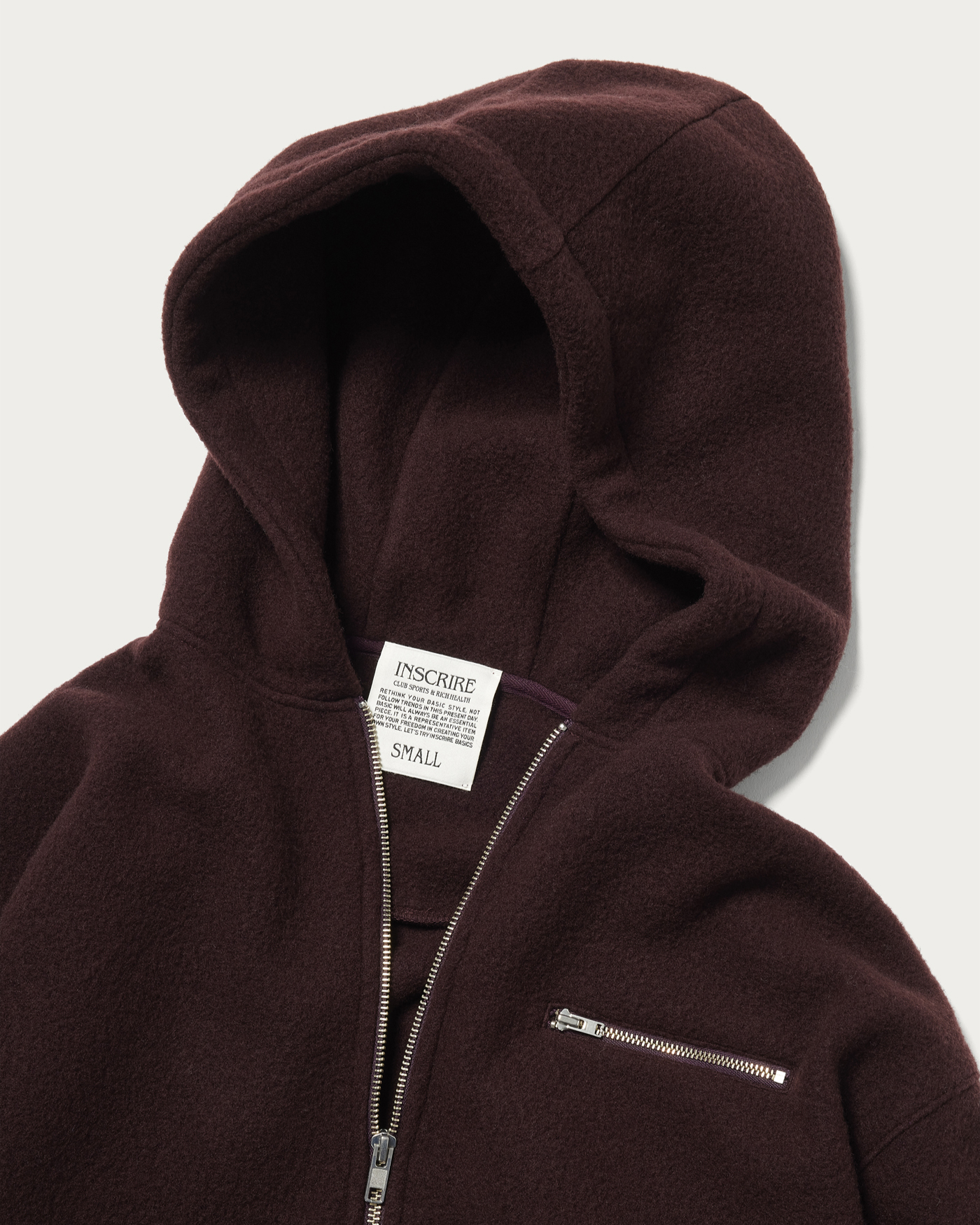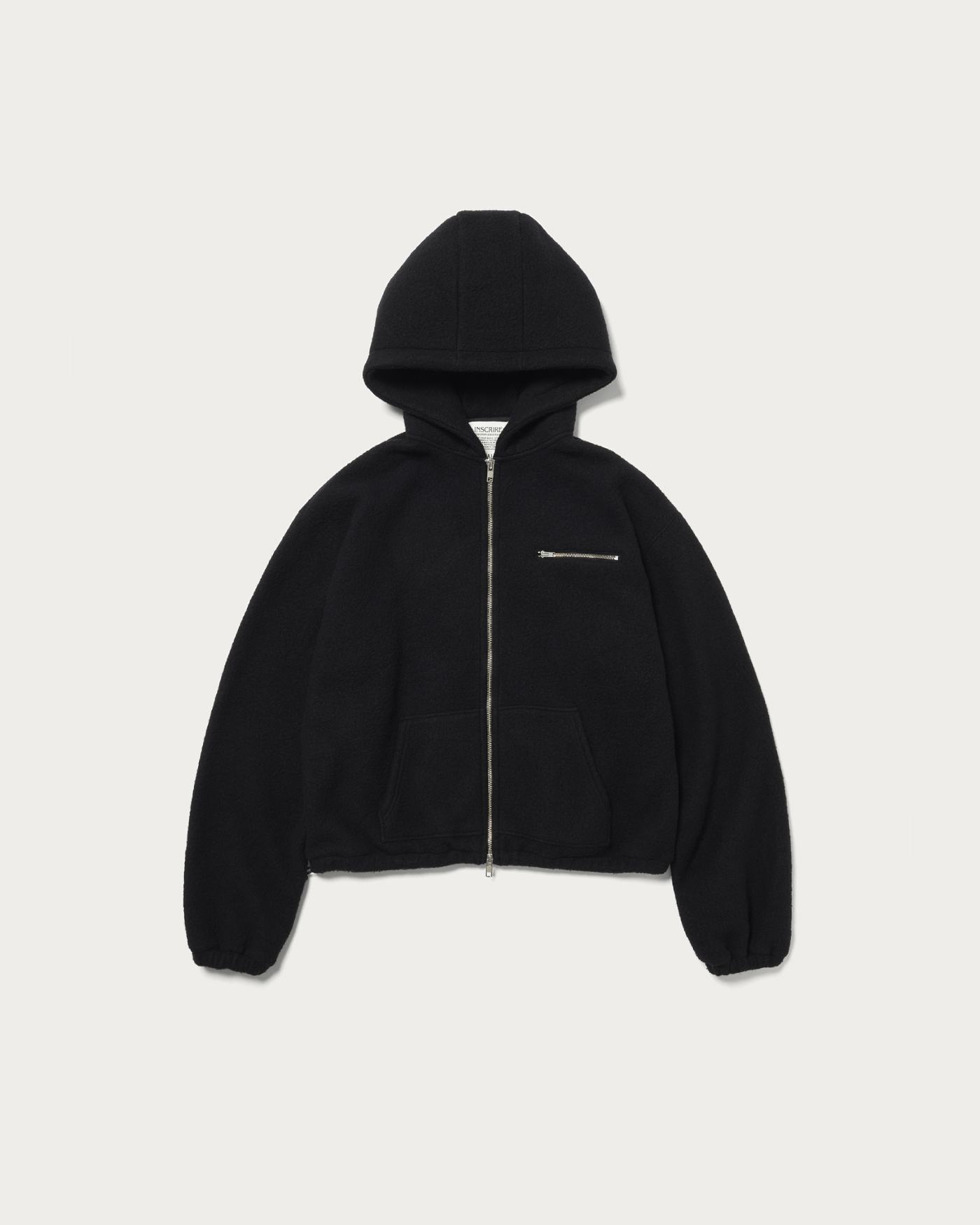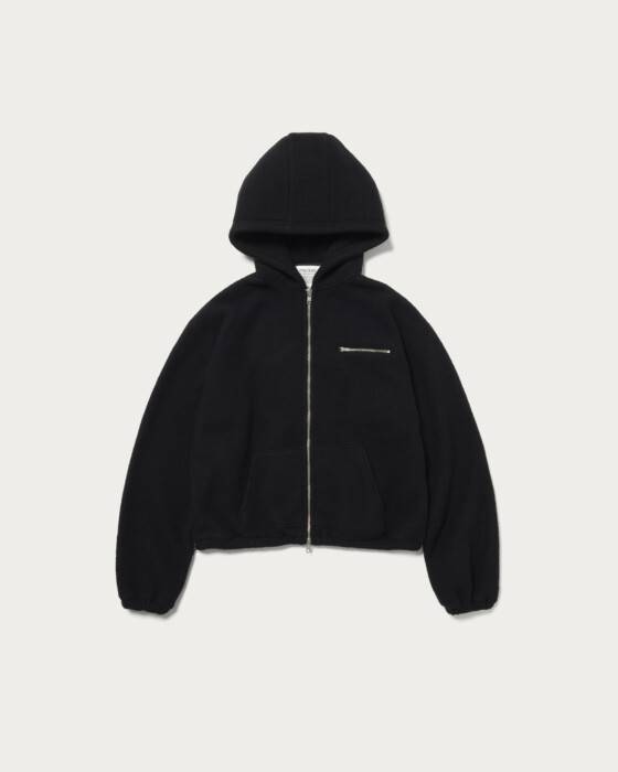 風合いに適度な厚みで軽くてあたたかみのある毛素材を使用した、アウターとしても活躍するジップパーカー。フルジップのデザインで着回しの効くアイテムです。カラーはブラックとワインの2色。裾のアジャスターを絞り、丸みあるシルエットを楽しむのもおすすめ。