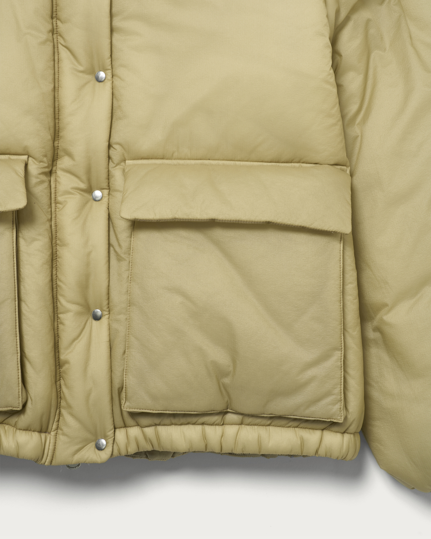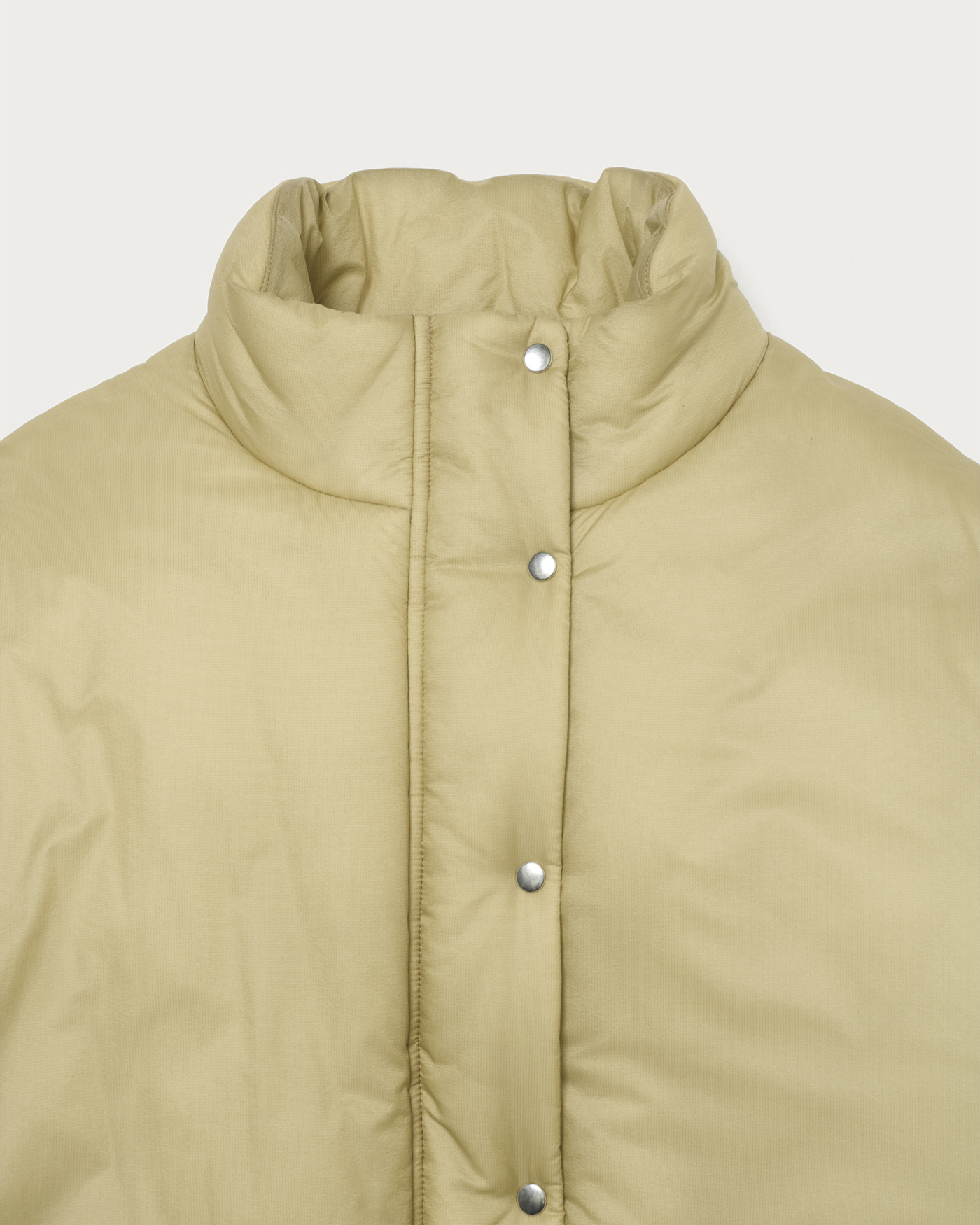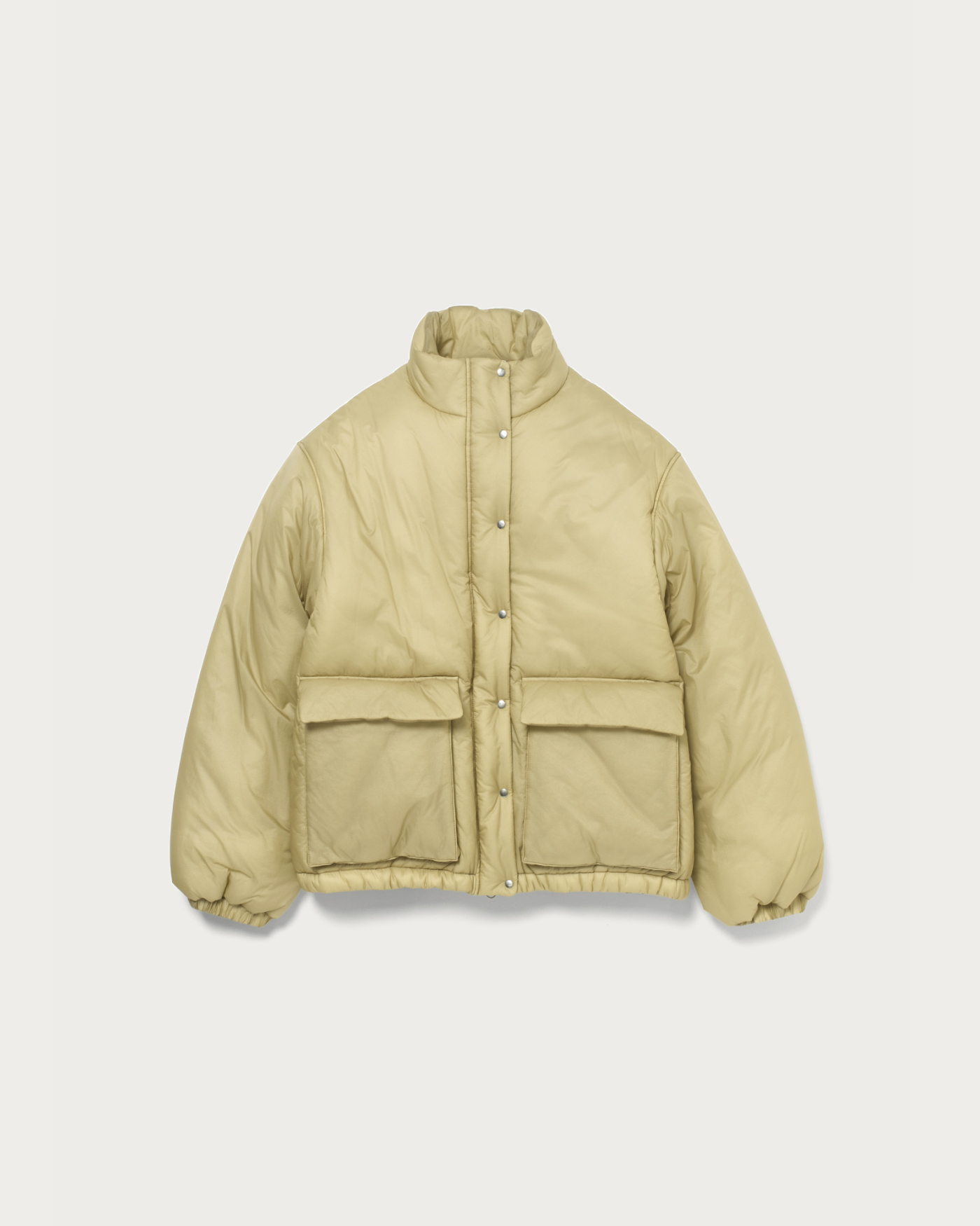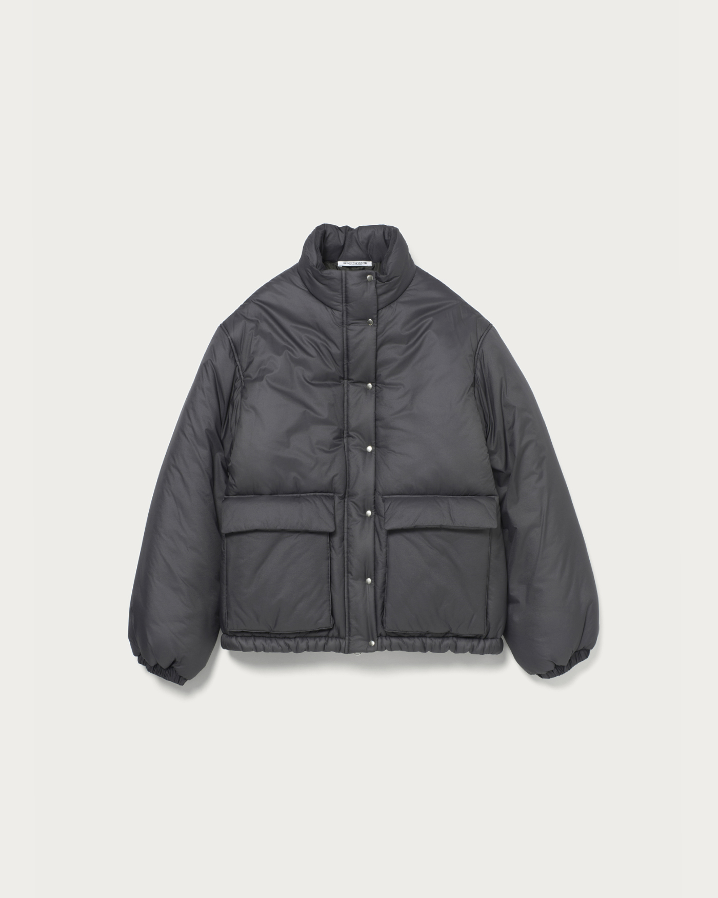 短めな丈感に、丸みのあるシルエットが特徴のブルゾン。パッチポケットやフラップポケットにもワタを入れることで、全体的にボリュームを出しています。表地にはマットな質感の上質な生地を使用し、スポーツ感を抑えているのがポイント。トレンドを味わえる一着です。