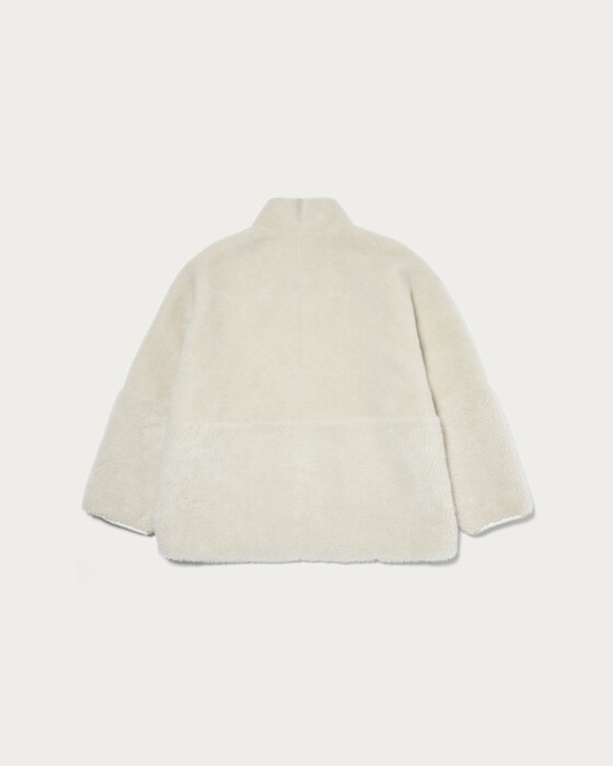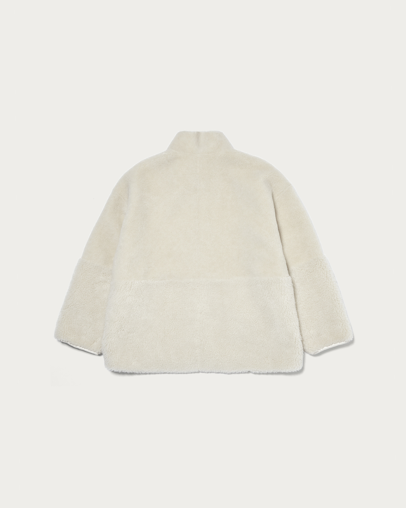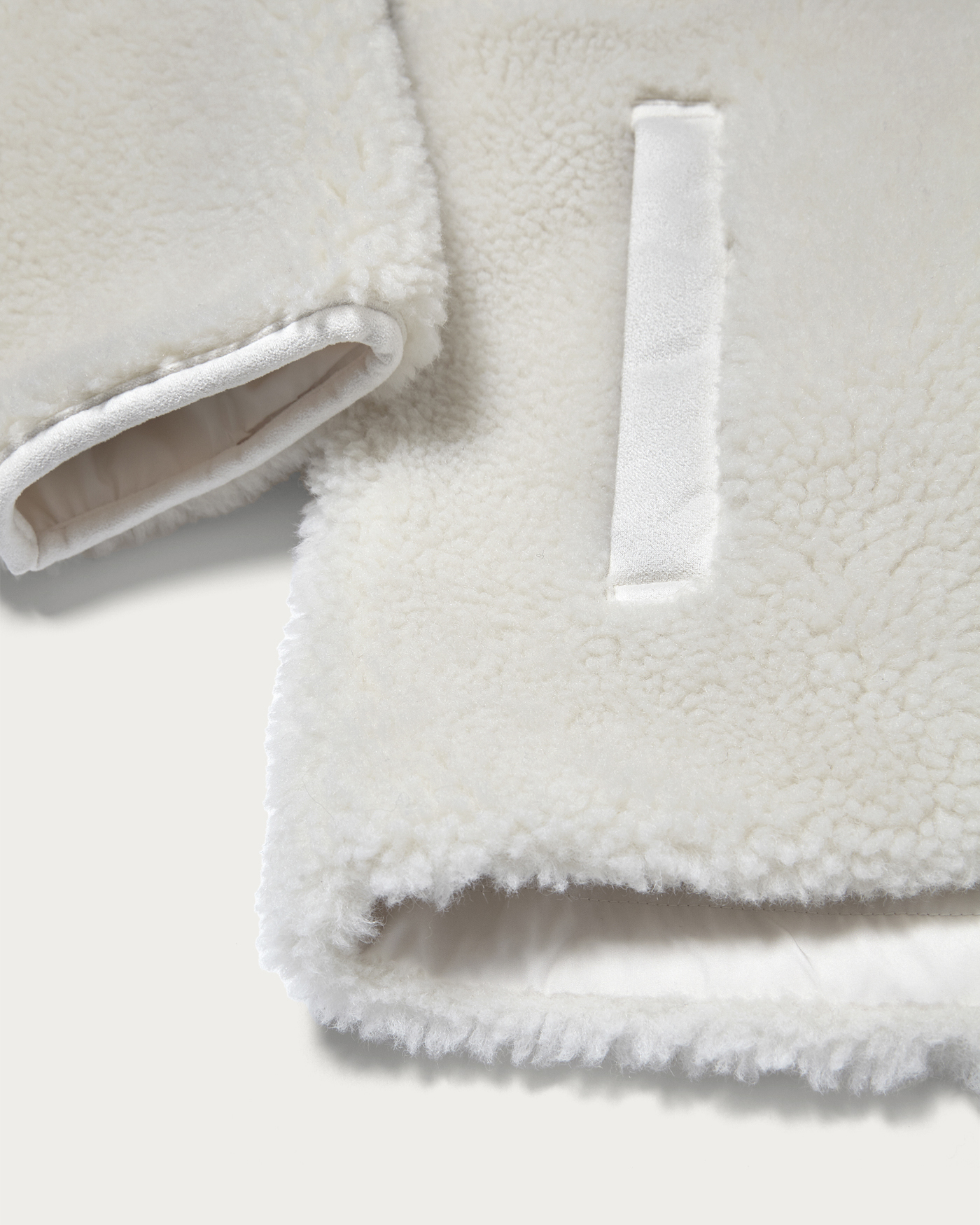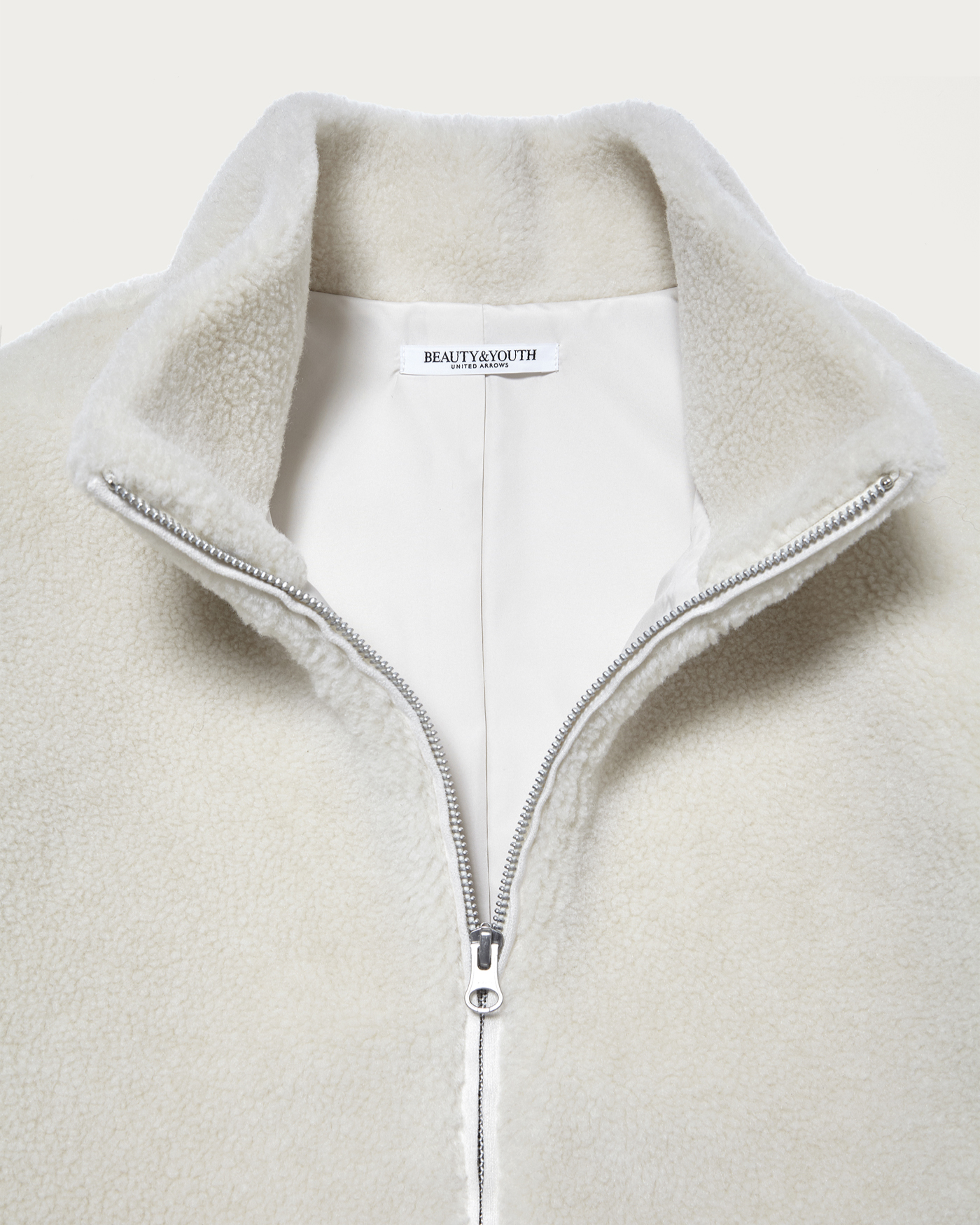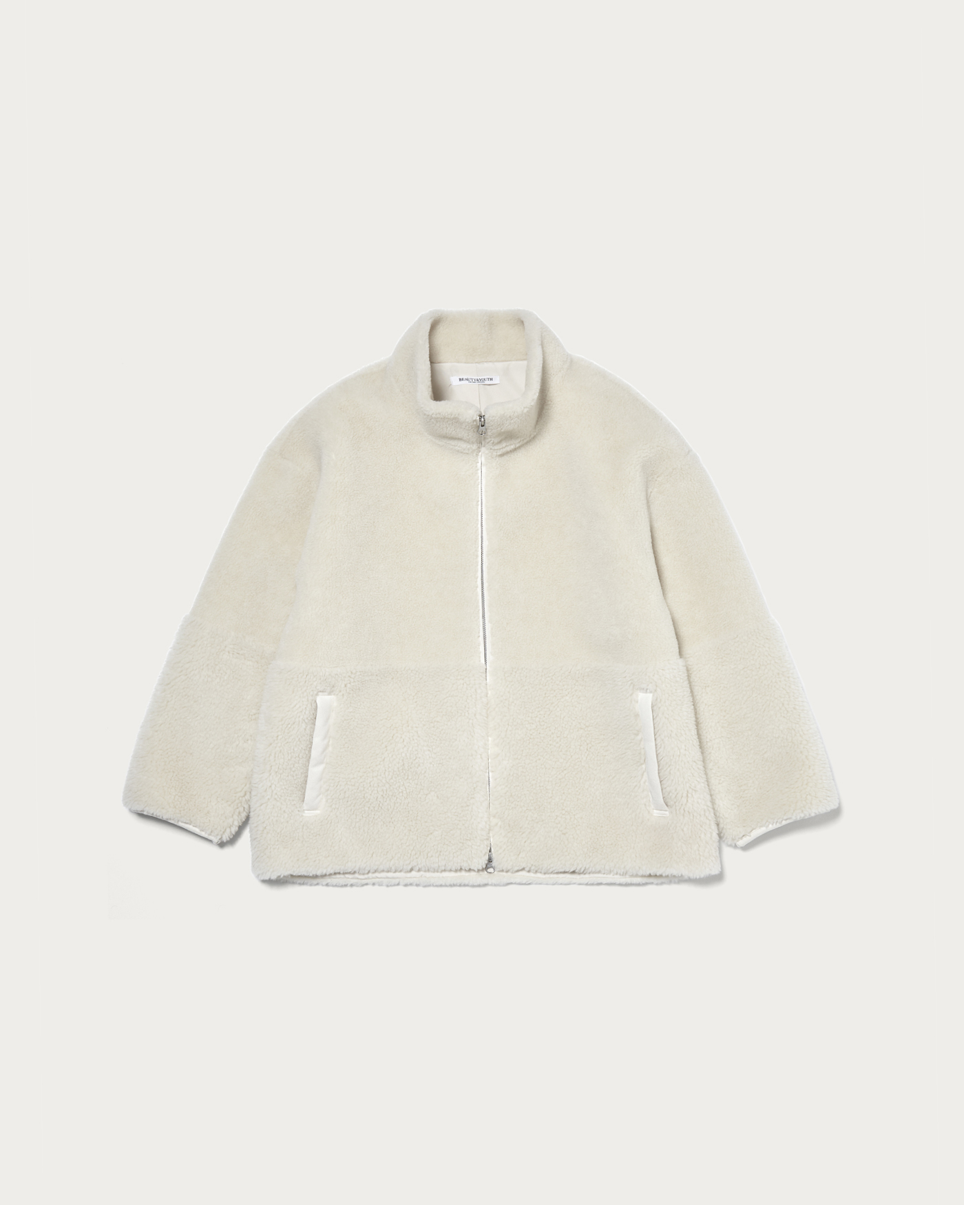 ウール混のボアを2種類使ったジップブルゾンは、シルエットに変化をつけられる裾のドローコードがポイント。ウールが入った生地はややマットで、高級感が漂います。カジュアルにデニムパンツやワイドパンツに合わせるのがおすすめです。
