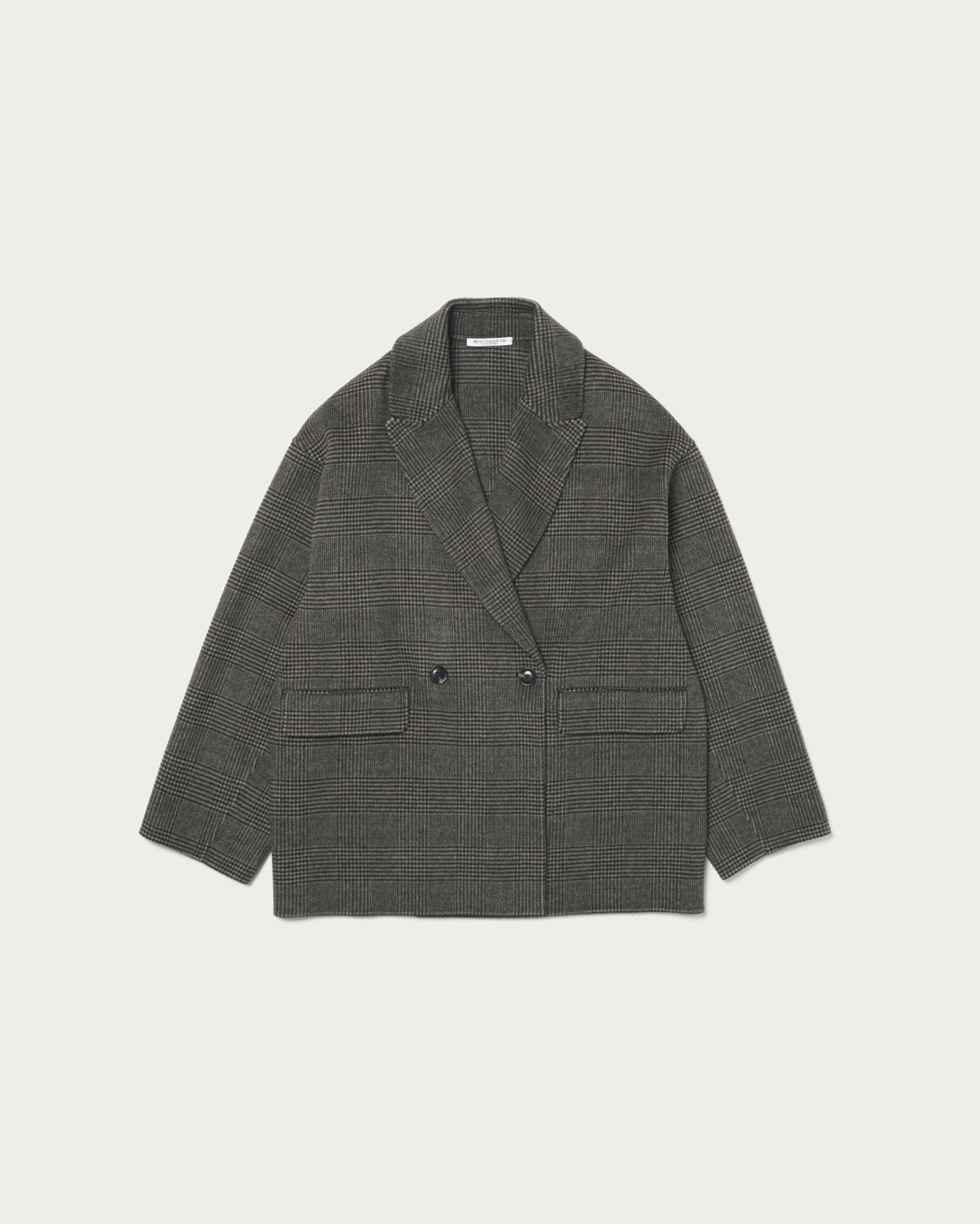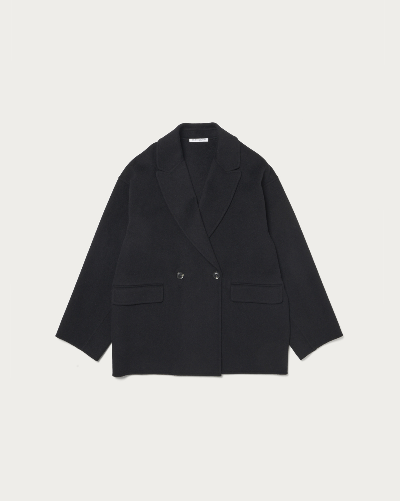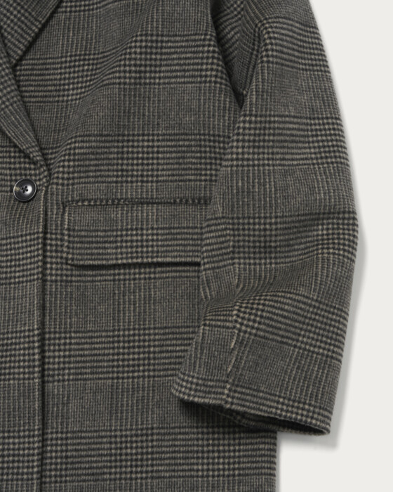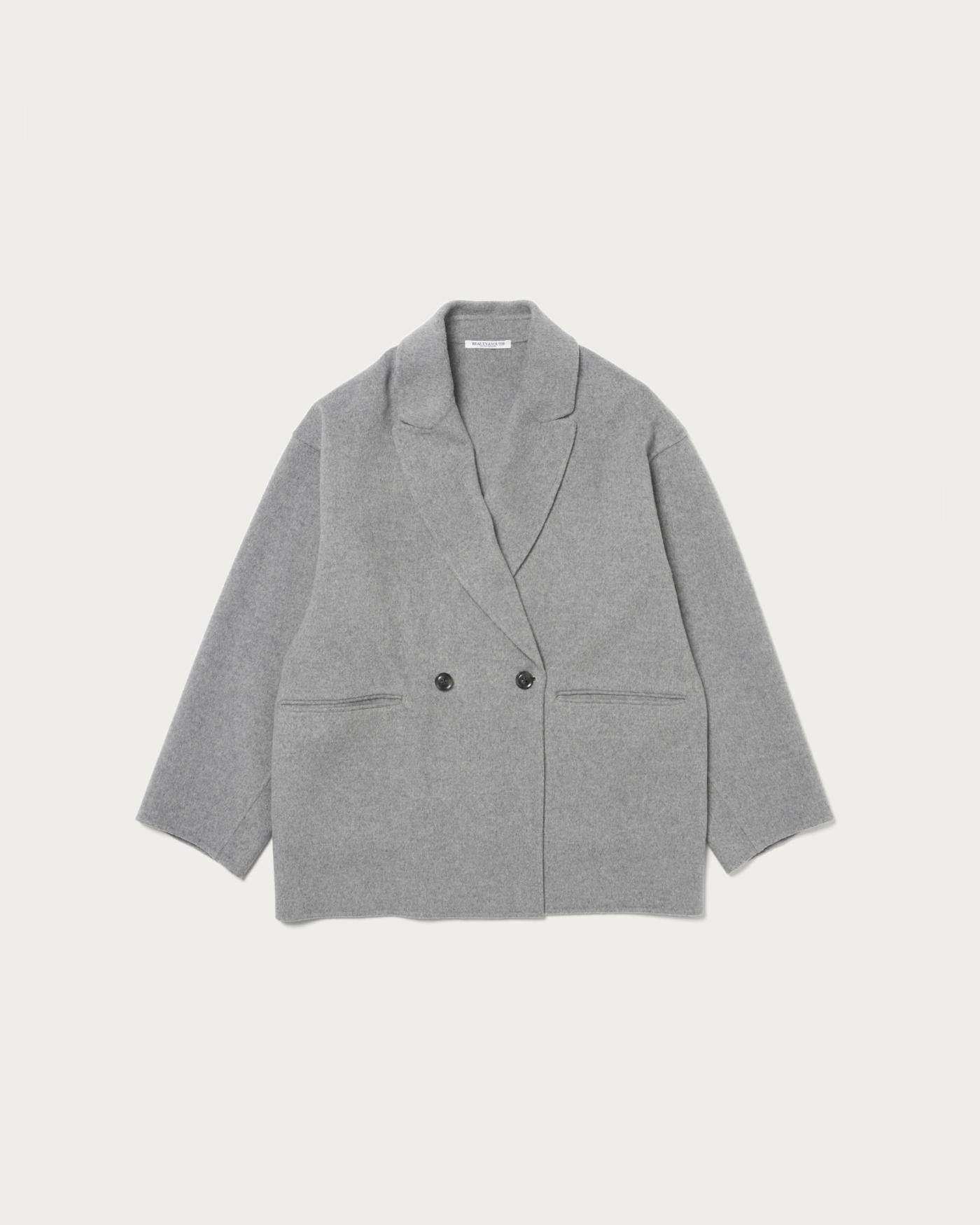 24FWに展開したテーラードコートをベースに、アームホール、袖周り、身幅のゆとりを見直し、よりすっきりとしたシルエットにアップデートしました。ミドル丈なのでジャケットのように気軽に羽織れるのが嬉しいポイント。さまざまなスタイリングを楽しむことができます。