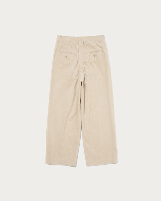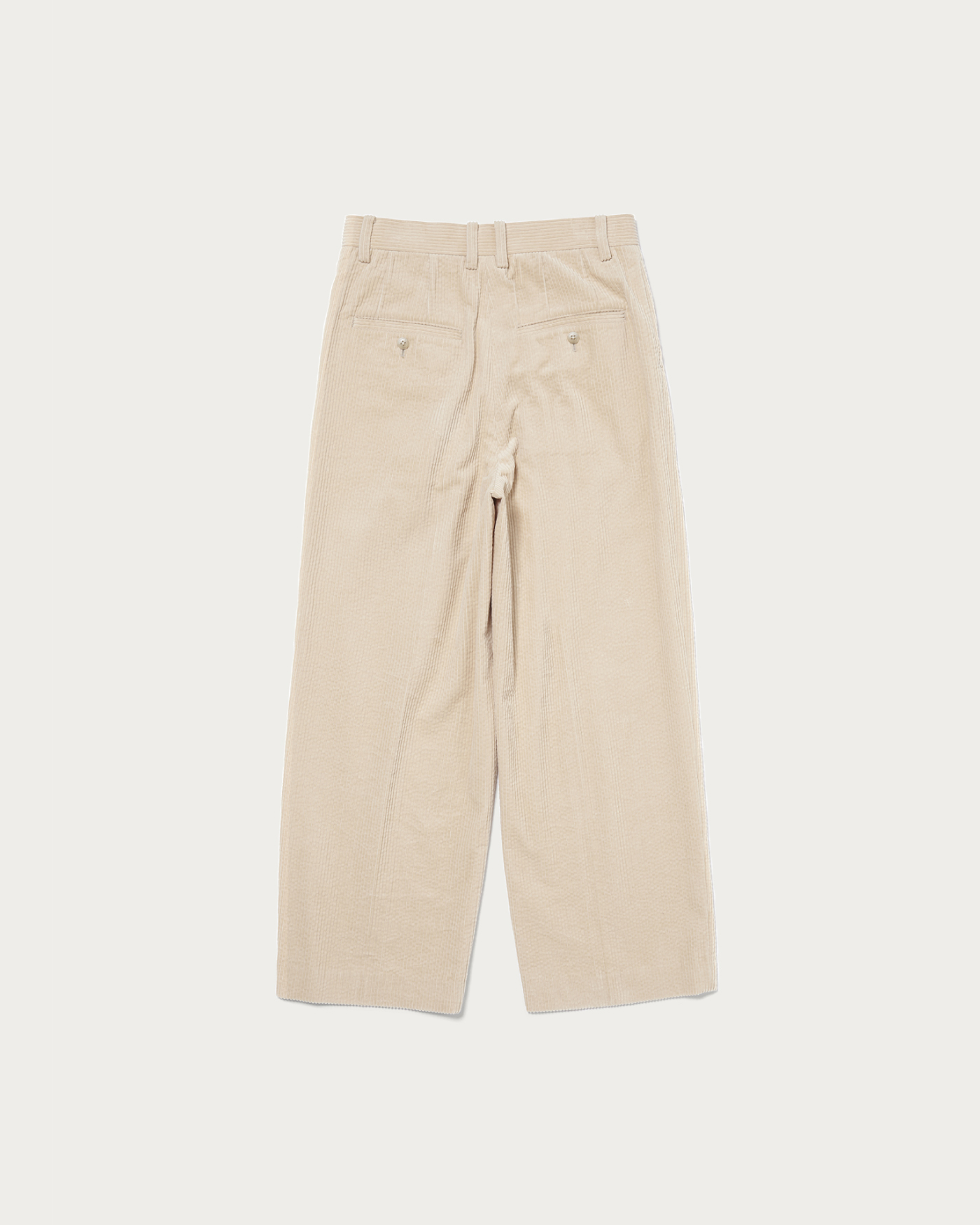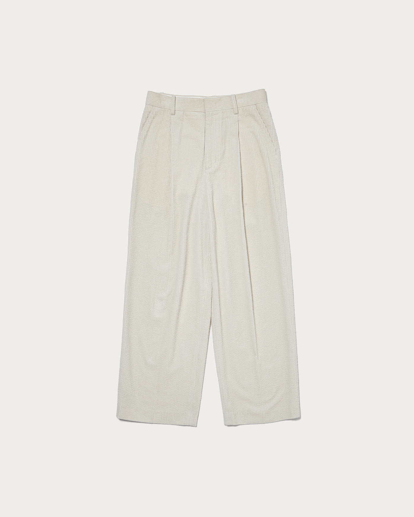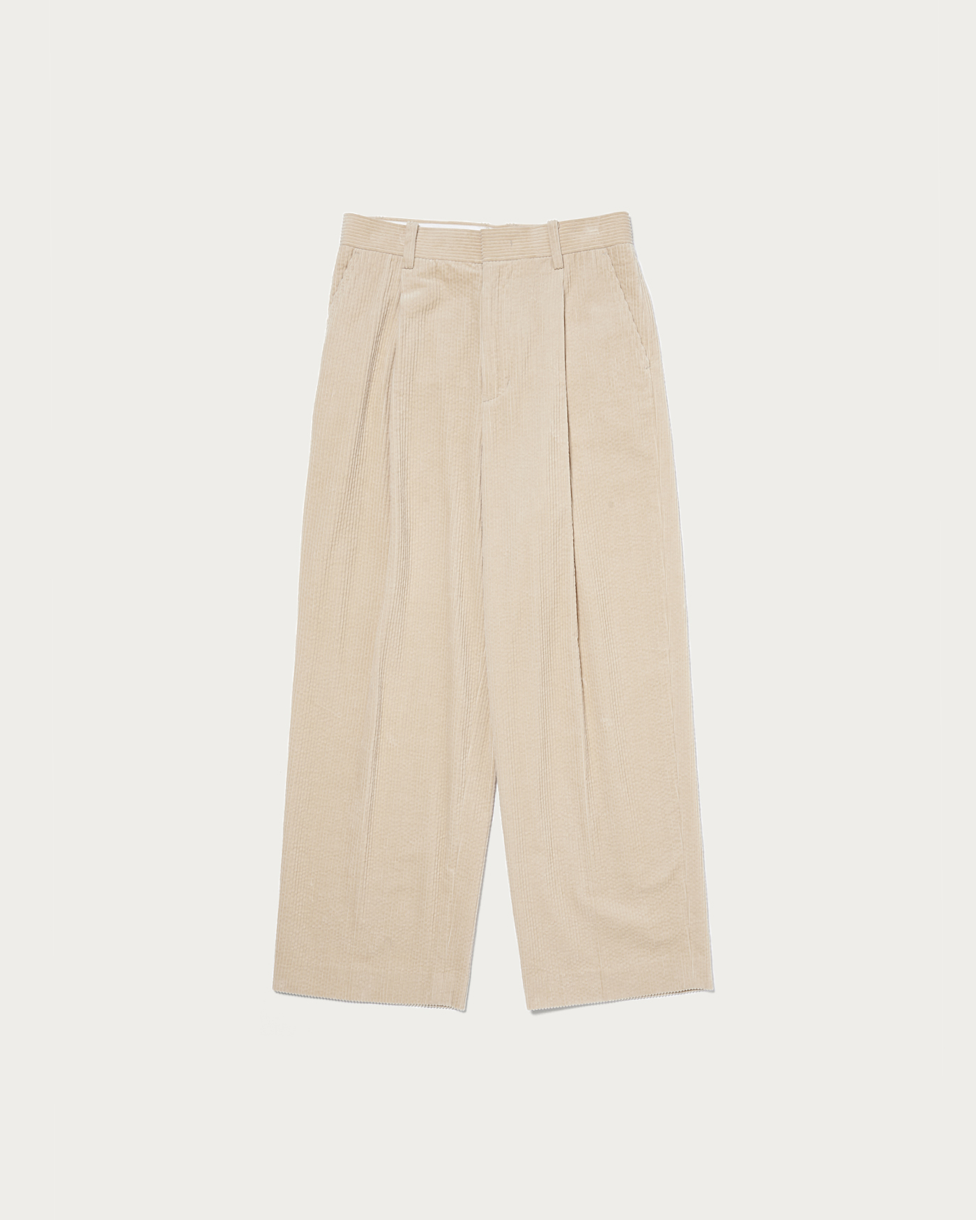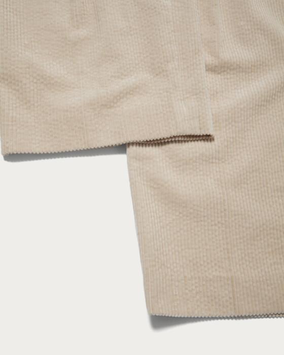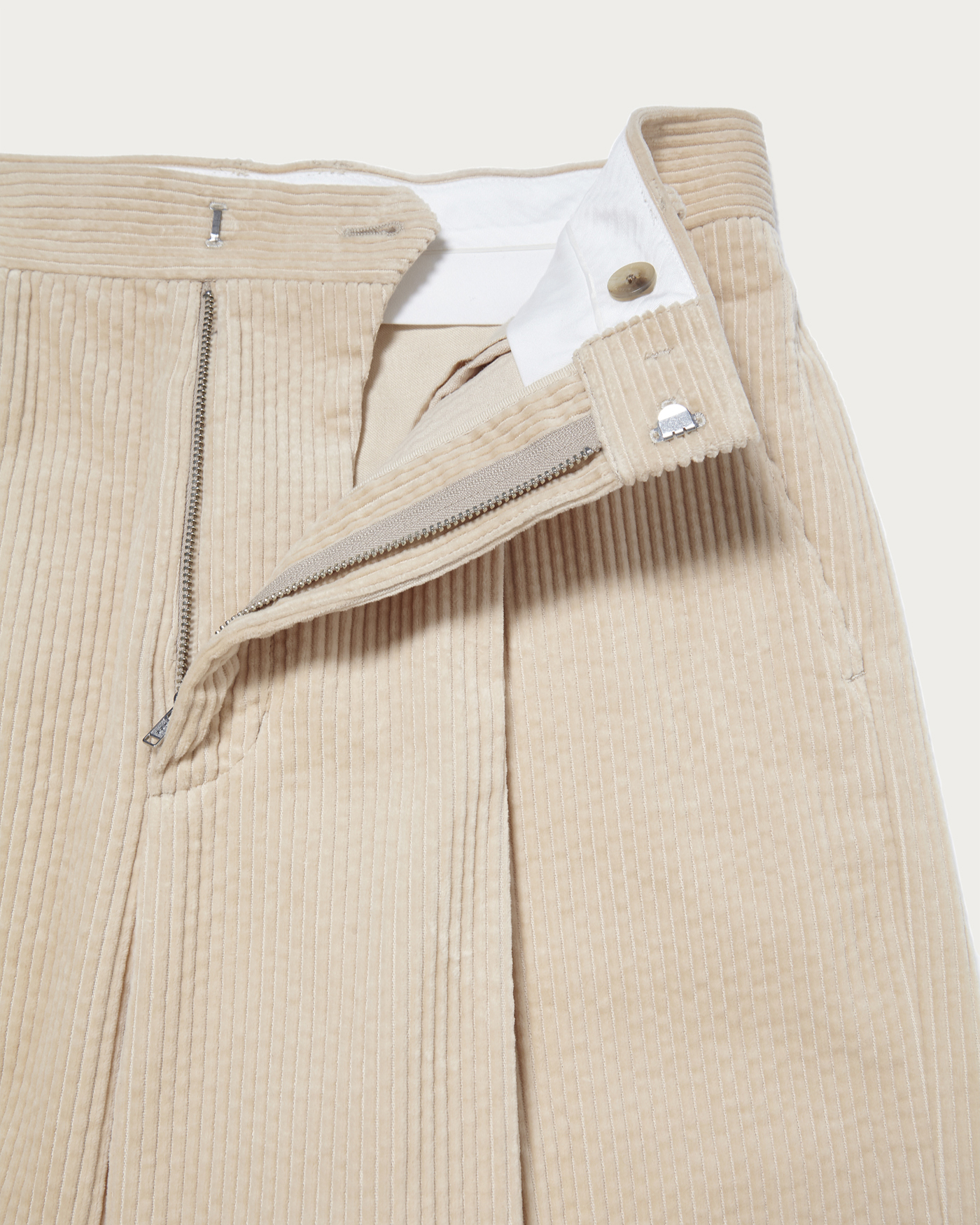 カジュアルなコットン100%のコーデュロイ素材を、ベーシックなメンズスラックス仕様で作りました。ベルト裏にマーベルト仕様を取り入れた、オーセンティックなディテールもポイント。サッカータイプなので畝に凹凸感があり表情があるのも特徴です。
