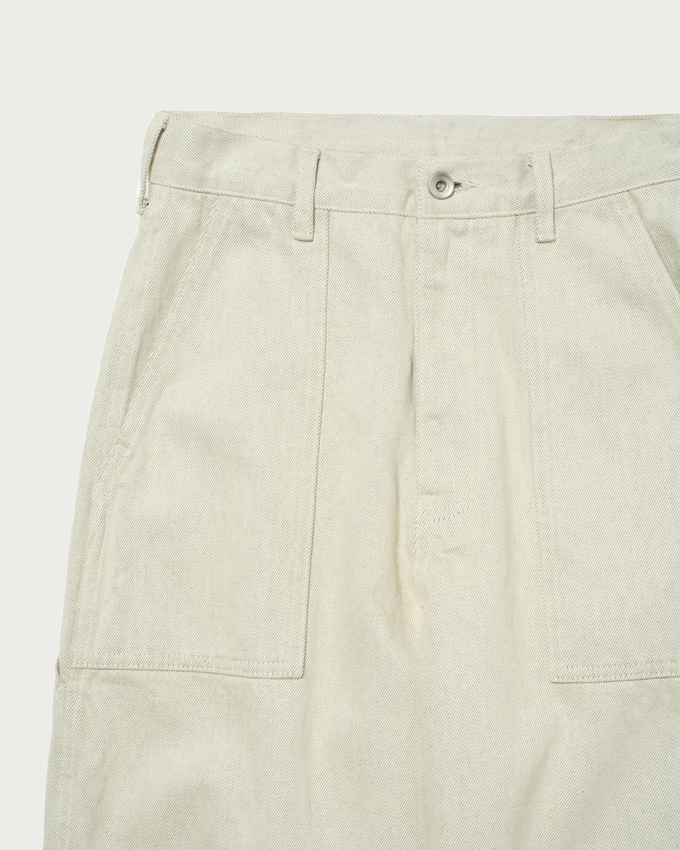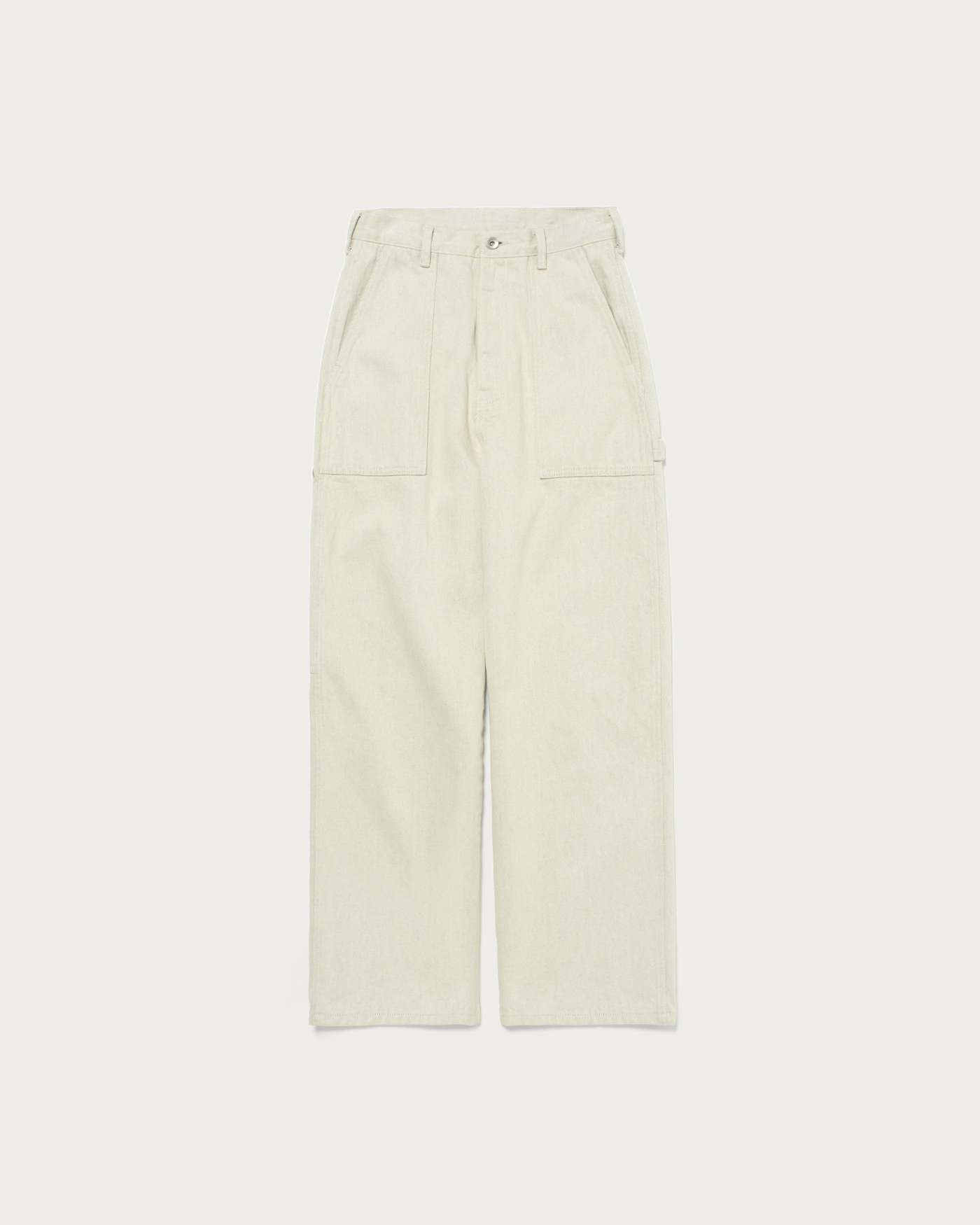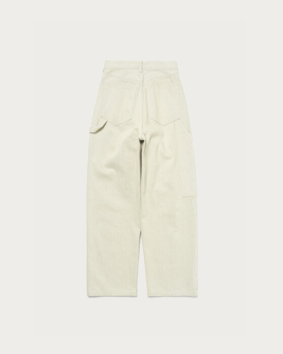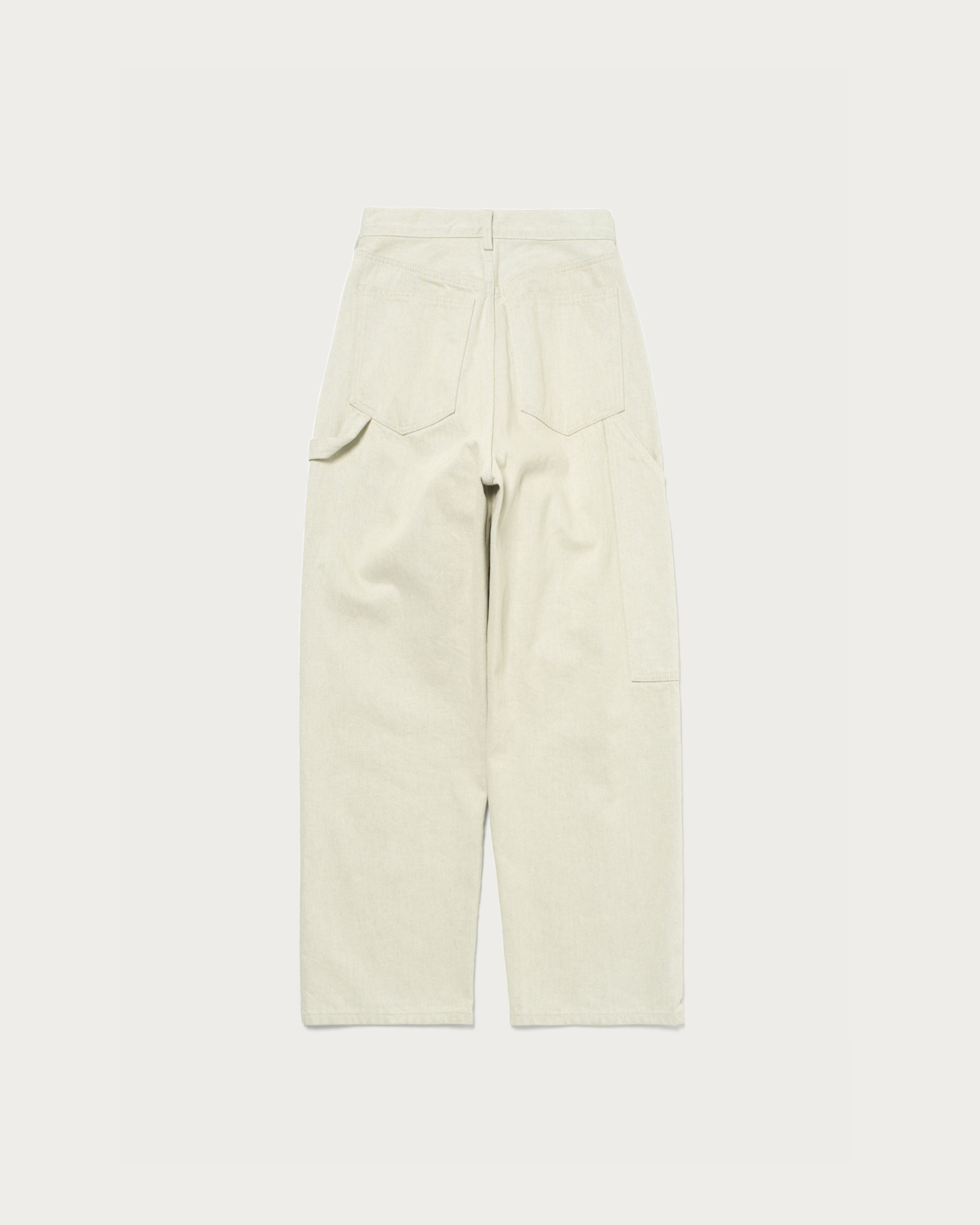 カラーデニム生地を使用した、大きなパッチポケットがポイントのペインターパンツ。今年らしいルーズなシルエット。ラインナップはこっくりしたマスタードカラーと、アイボリーにTOP糸を掛け合わせたクリーム系の色合いが可愛いオフホワイト。フードニットなどのカジュアルアイテムやモヘアのノーカラージャケットなどとの相性が最高です。