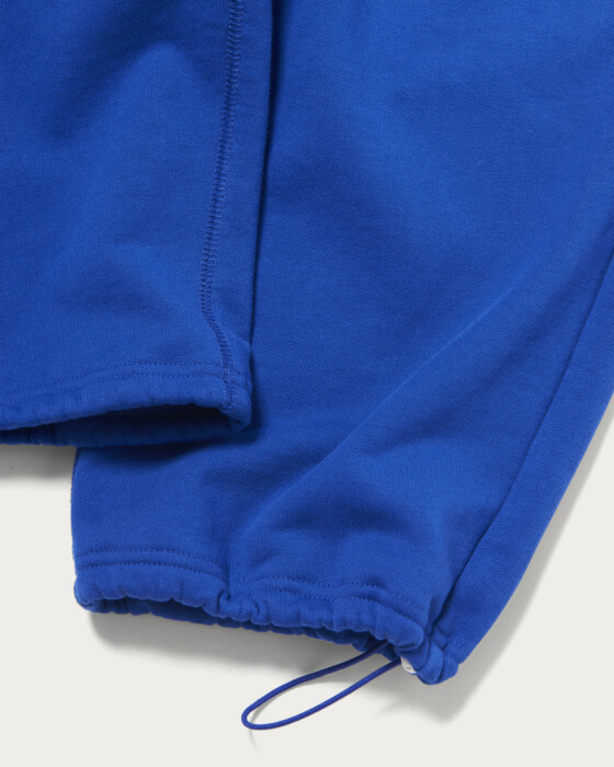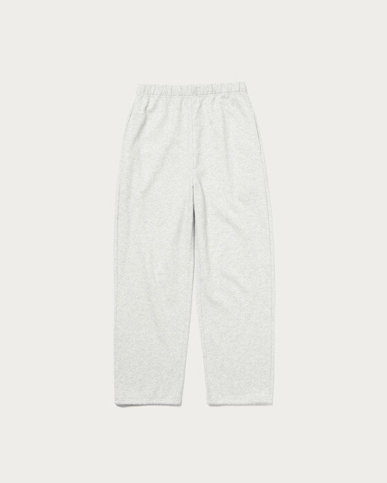 ほどよい肉感の裏毛素材のスウェットパンツは、体を拾いすぎずにスッキリと見えるデザイン。裾のドローストリングでシルエットの変化が可能です。生地には毛羽が少なくクリアな表面のものを使用し、きれいめな印象になるようこだわりました。