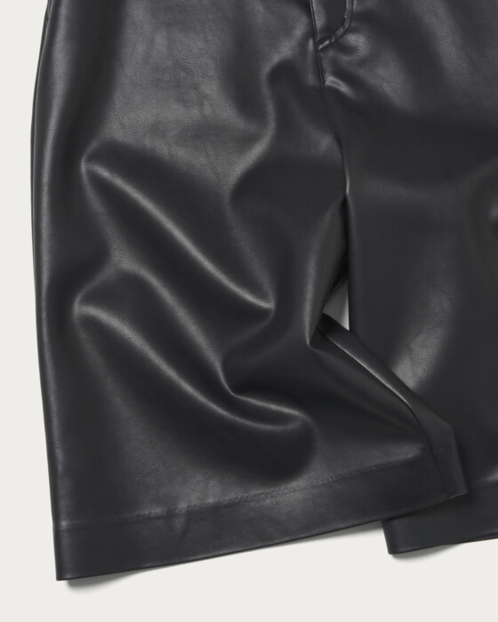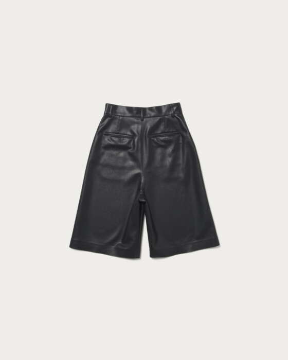 昨シーズンに展開したショーツのシルエットをベースに、着丈を今年らしくやや長めにアップデート。カジュアルからキレイめまで、幅広く合わせやすいよう、シンプルにデザインしました。素材はしなやかさはありつつも冬にも快適な薄すぎないレザーライク素材。どんな装いにもマッチするよう光沢感が控えめのものを選んでいます。