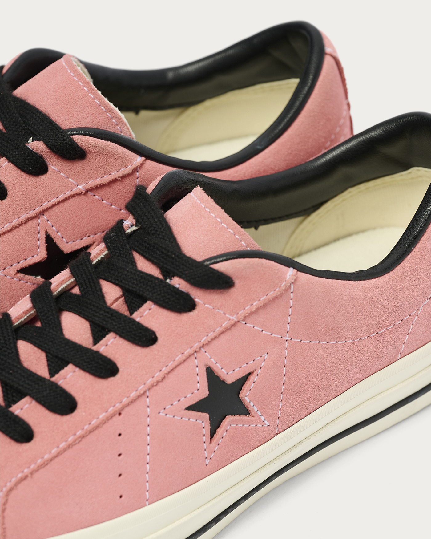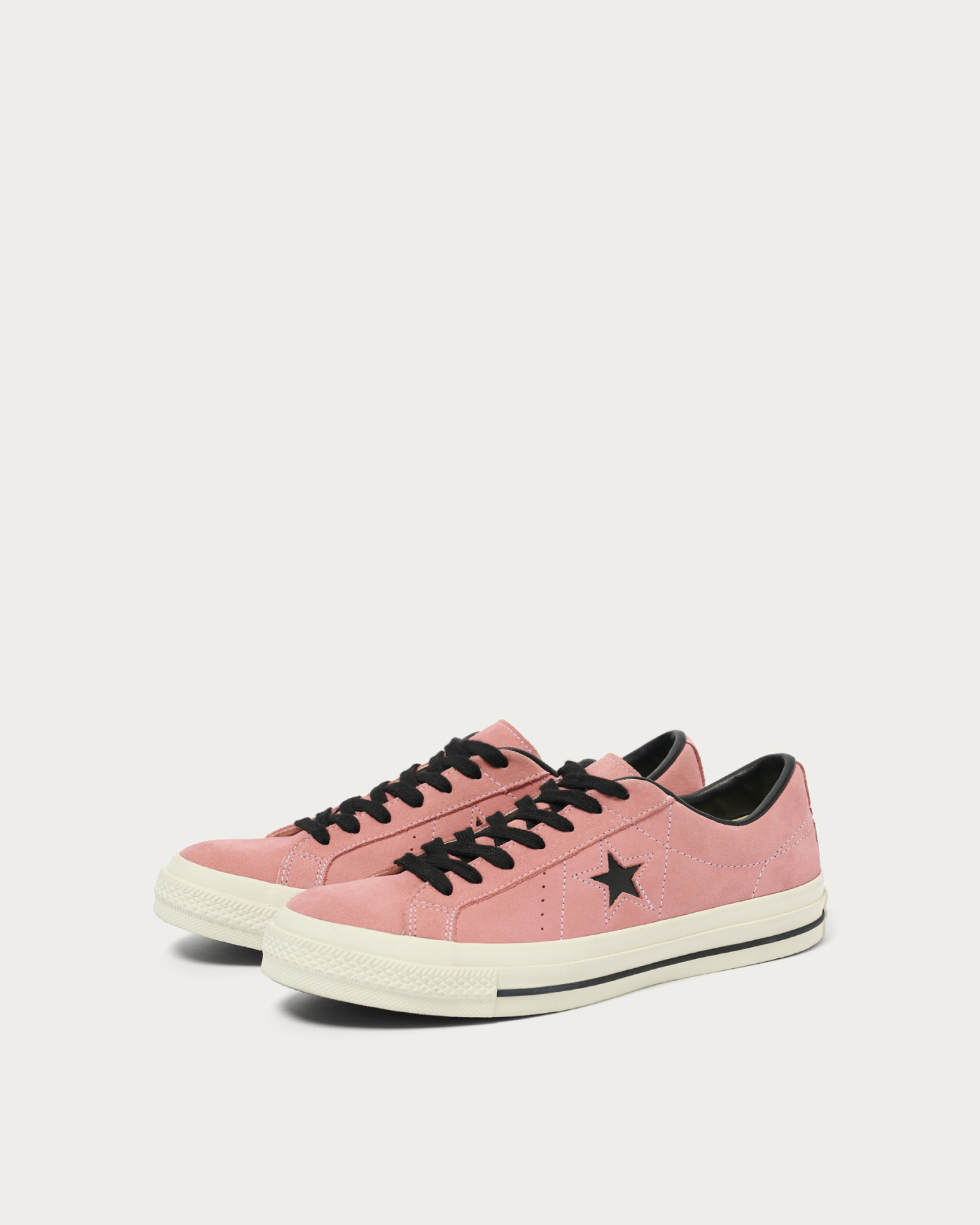 〈CONVERSE〉のキャッチーな配色ながらも大人なカジュアルスタイルに寄り添う「ONE STAR SUEDE」。アッパーにスエードを、シューレースには8ミリ幅のものを採用し、クラシックなムードが漂う一足です。また、ダスティピンクのアッパーに対して、アイコニックな星マークと靴紐、履き口をブラックで揃えることでピリッとモダンな存在感を放ちます。カジュアルなデニムスタイルからマニッシュなジャケットコーデまで、さまざまな装いにアクセントを効かせてくれます。