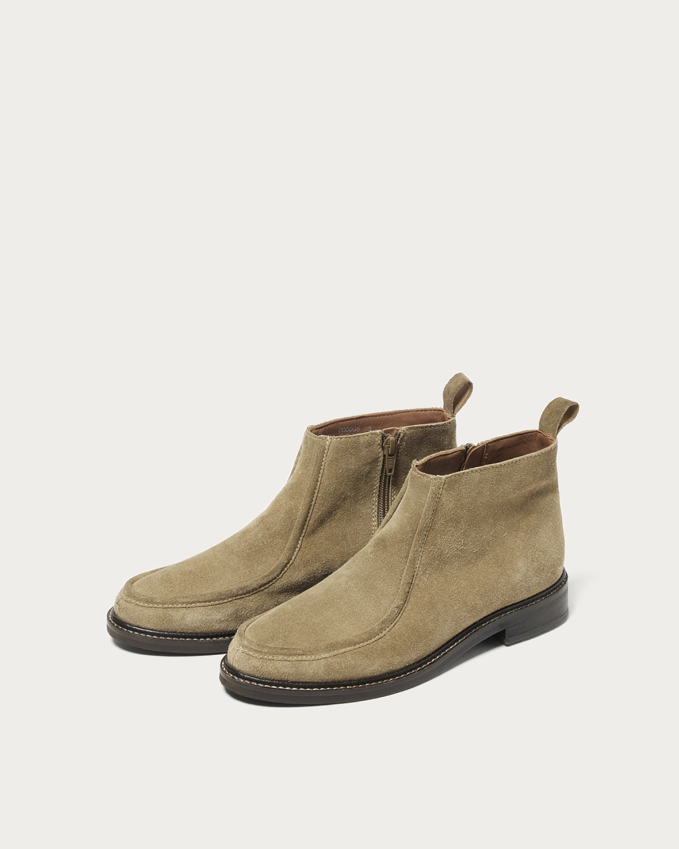 今年の気分にぴったりなスエードショートブーツ。Uチップ仕様を採用し、ローファー感覚で履いていただける一足に。アウトソールをダークな色合いにすることで、引き締まった印象に仕上げています。