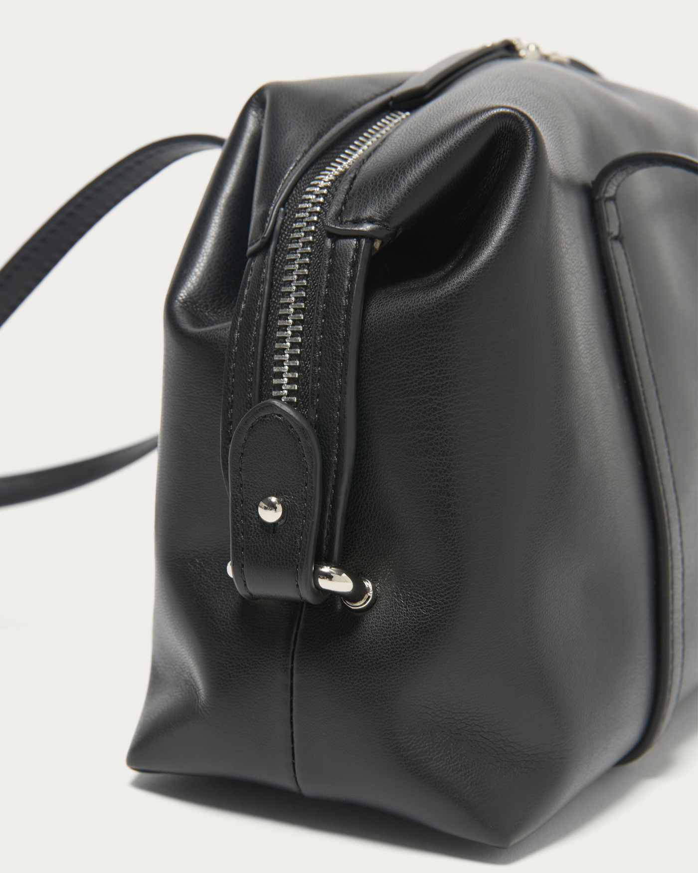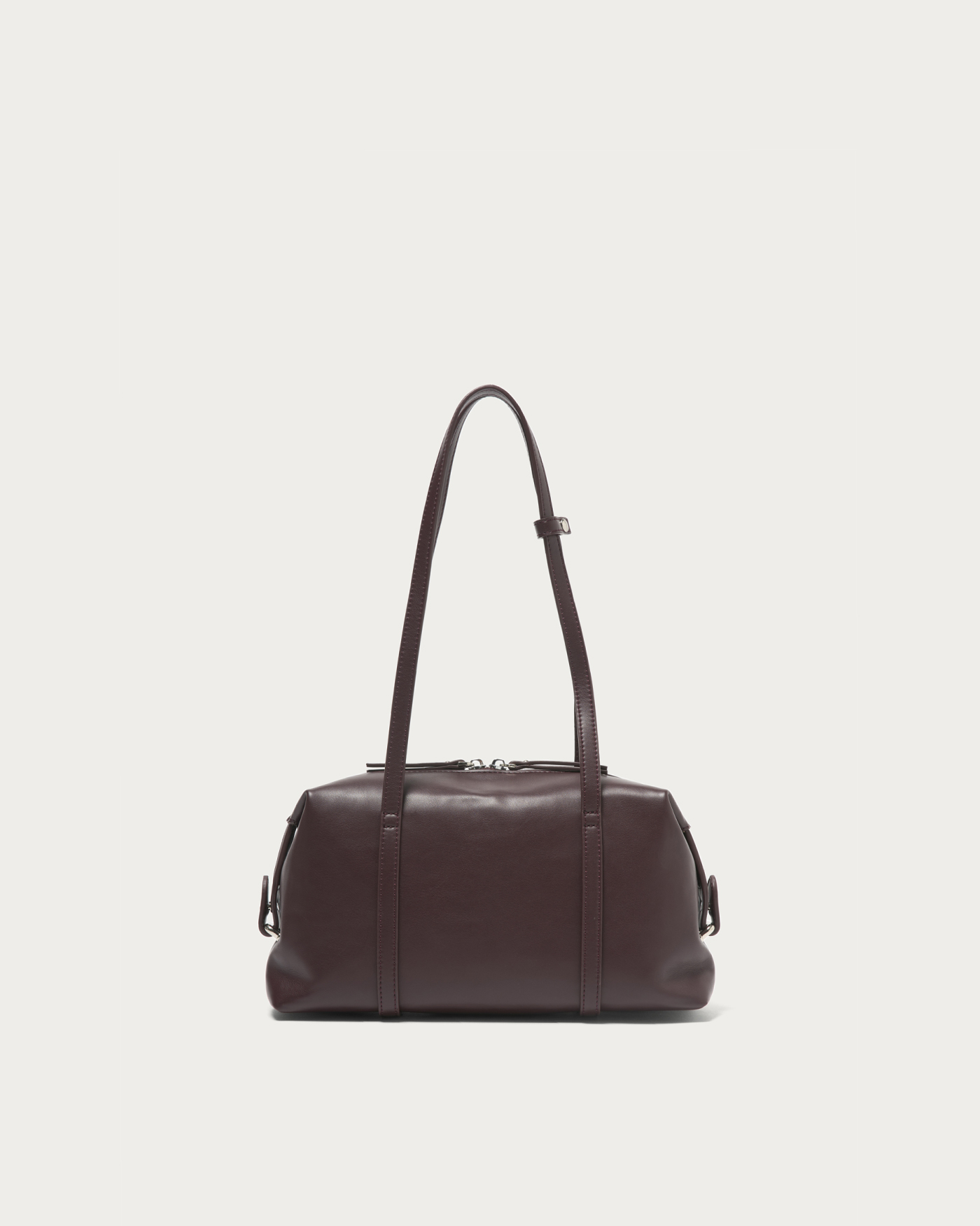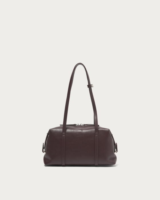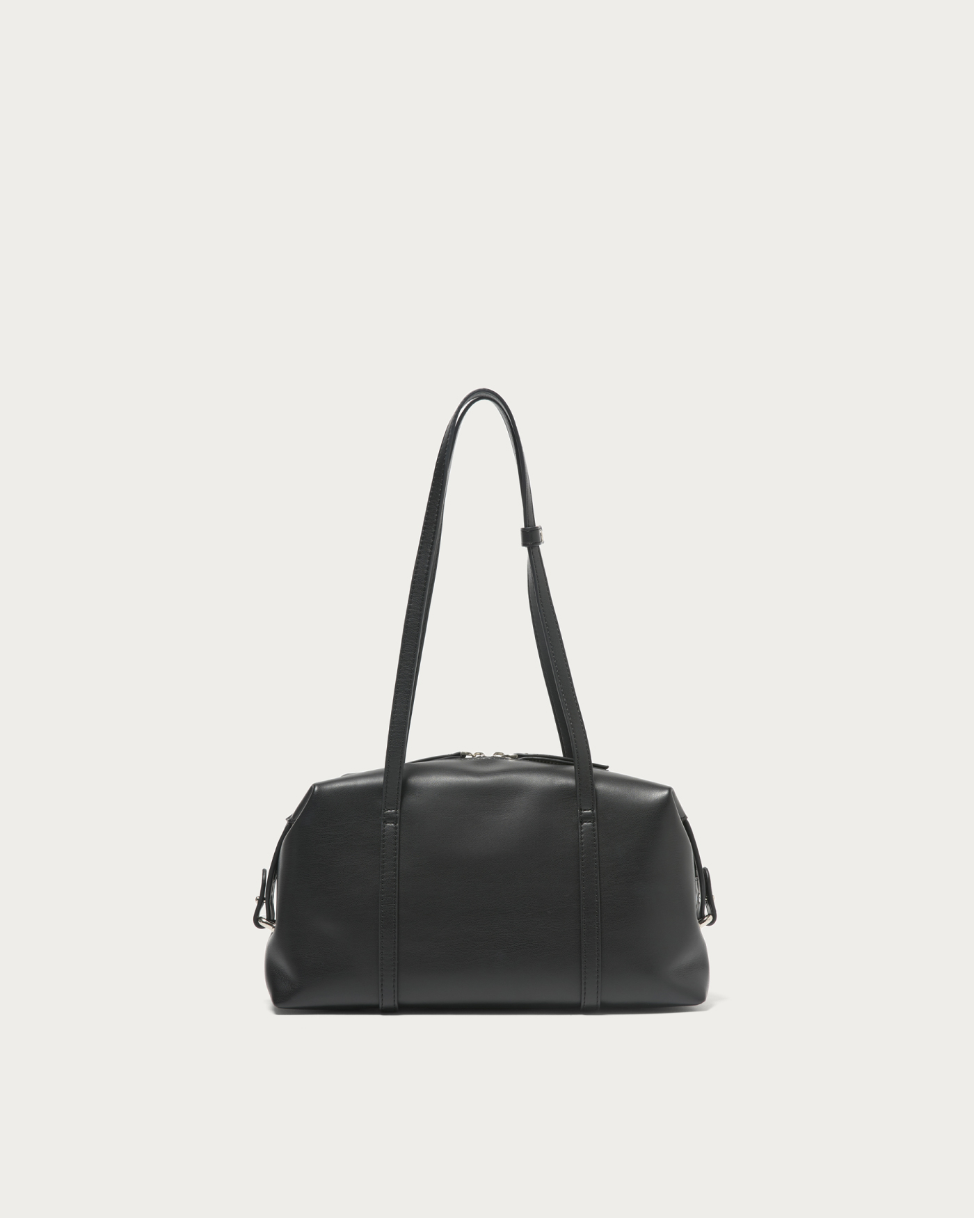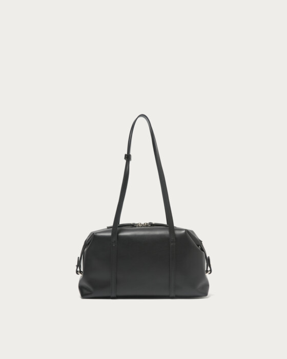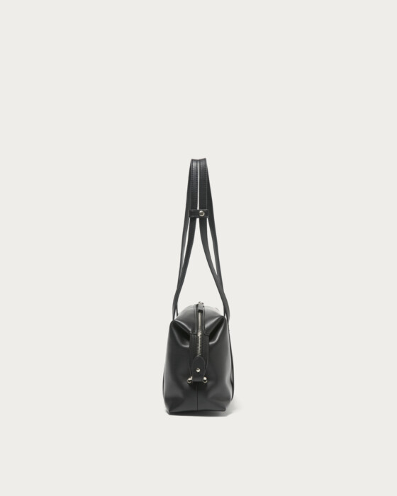 注目のボストンバッグの中でも、特に今の気分が味わえる横長フォルムのバッグ。コーディネートをピリッと引き締める、シボ感のない柔らかなフェイクレザーを使ってお作りしました。カラーは全体をシックな印象に仕上げるブラックと、上品で深みのあるワインの2色。しっかり肩かけができる長めのハンドルと、サイドまで深くジップをあしらったベルト使いがポイントです。