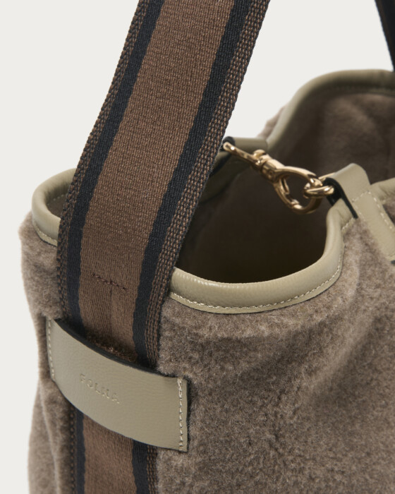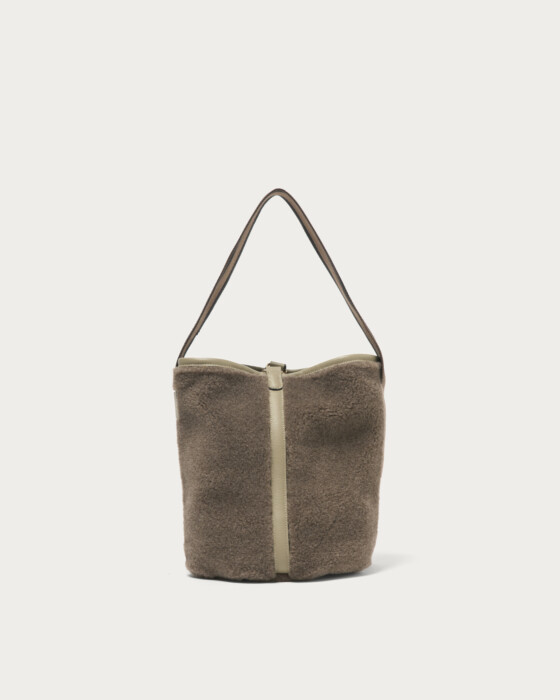 フェイクムートンの素材感が愛らしい〈Folna〉の別注ショルダーバッグ。あたたかみのあるボアにライン入りのワンハンドルがスタイリッシュな一品です。今季はモダンで馴染みのよいグレーと、柔らかな印象のモカブラウンをご用意しました。ワントーンでシックな印象に変化する裏面を表側にしても楽しめる、嬉しいリバーシブル仕様。広めのマチ付きのバケット型で、ポーチや長財布などもしっかりと入る収納力も魅力です。