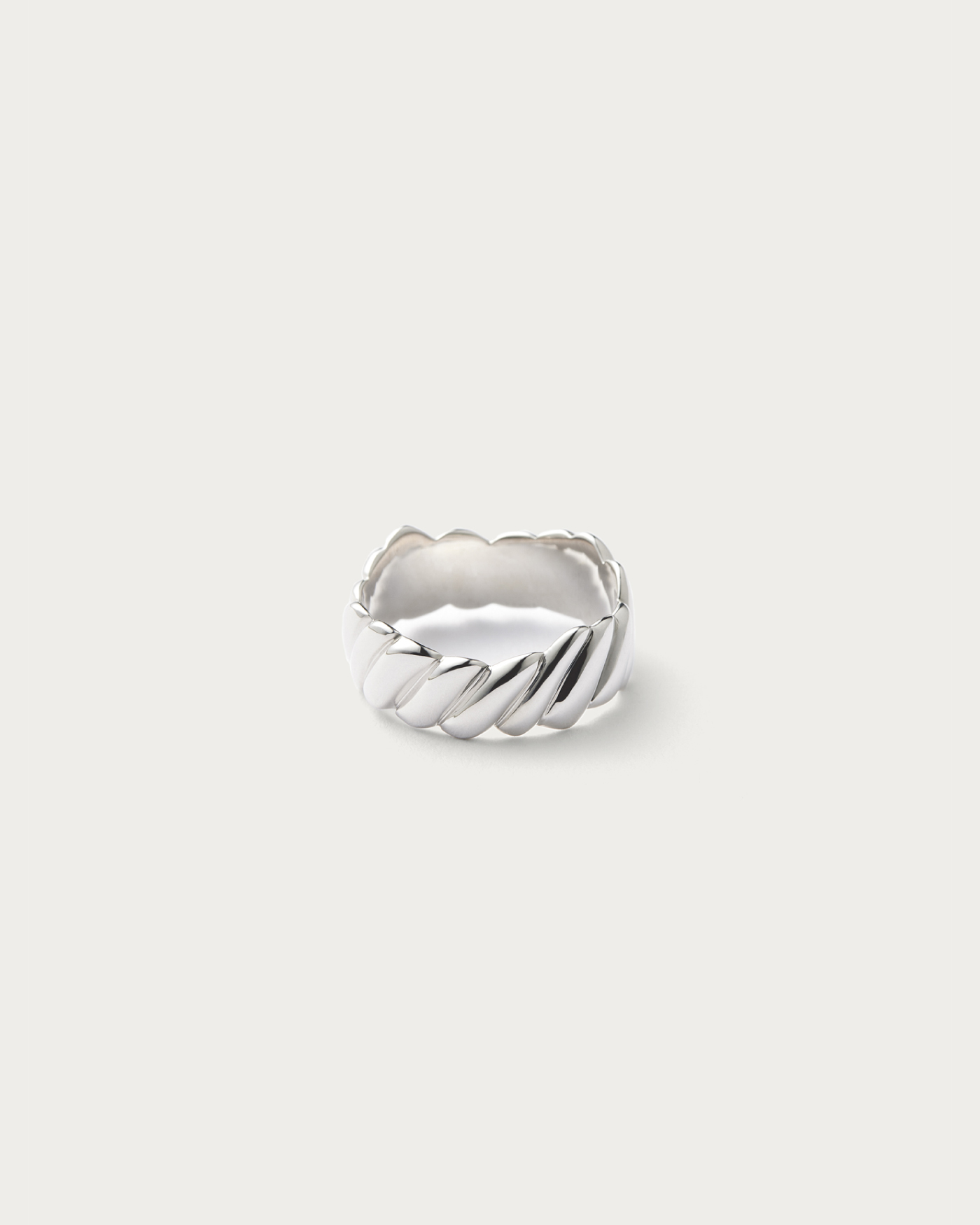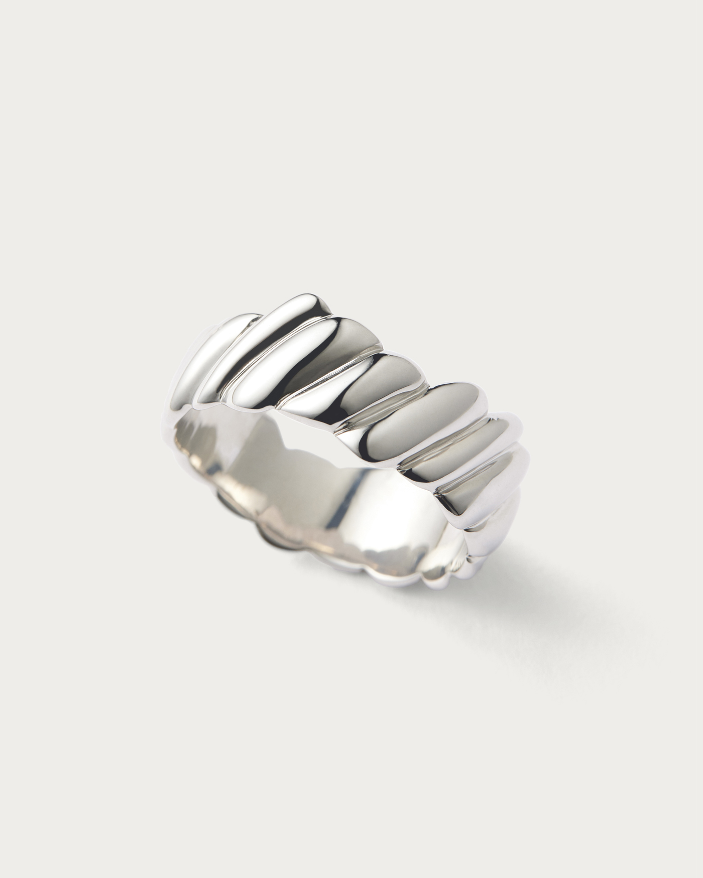 水、汗に強いサージカルステンレス素材で、立体的で有機的なラインが特徴のリングは指先にさりげない個性を添えてくれるリング。存在感のあるしなやかな曲線を重ねたような造形が美しいリングに仕上げています。