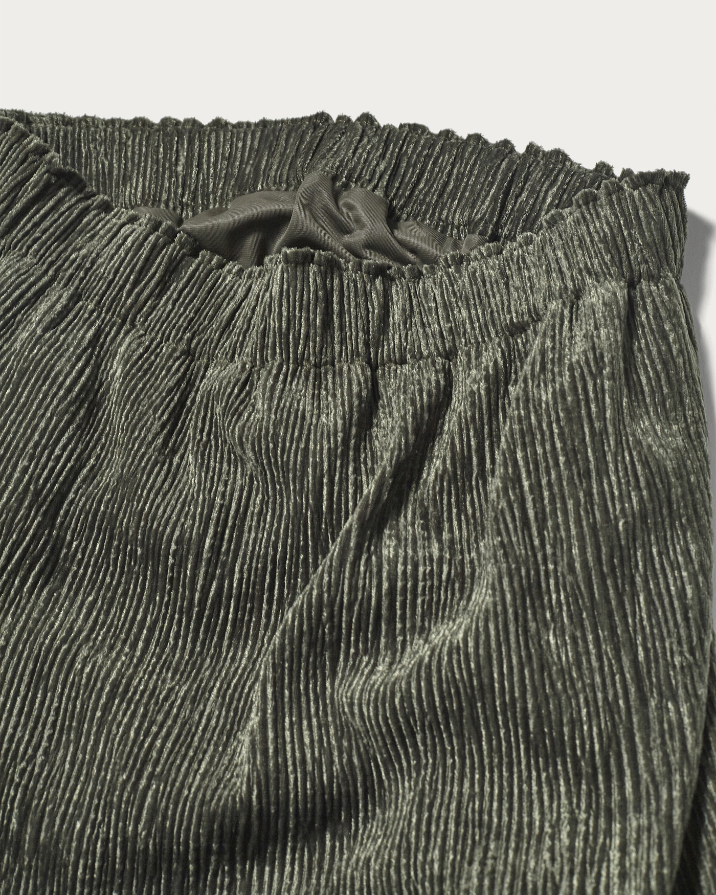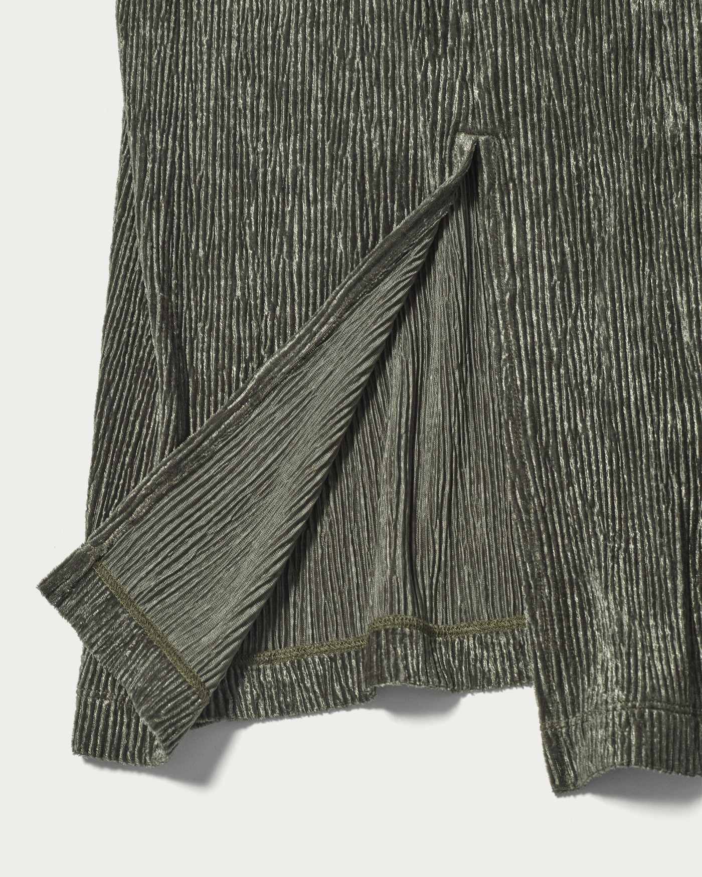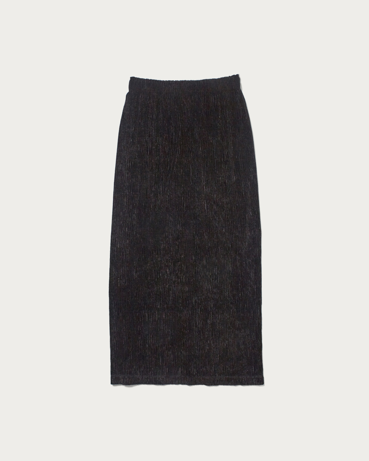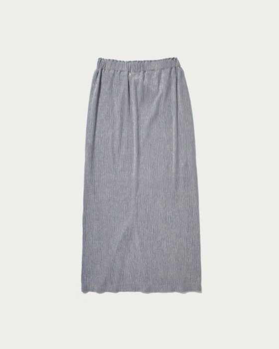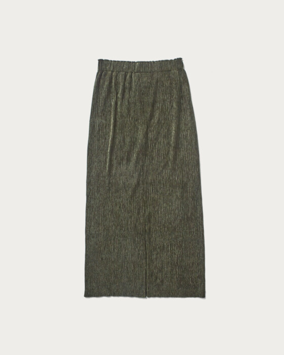繊細なプリーツに、微光沢の質感が目を引く一着。ゴム仕様のイージーウエストで、上品な中にもリラックス感を演出しました。深めのバックスリットで足捌きのよさを配慮しながらも、大人のムードが漂うナローシルエットが抜け感のある着こなしを叶えます。カラーは飽きの来ないブラックにライトグレー、シックなダークブラウン、アクセントを添えるコバルトの4色。自宅での手洗い可能な利便性も備えた、デイリーに嬉しい一枚です。