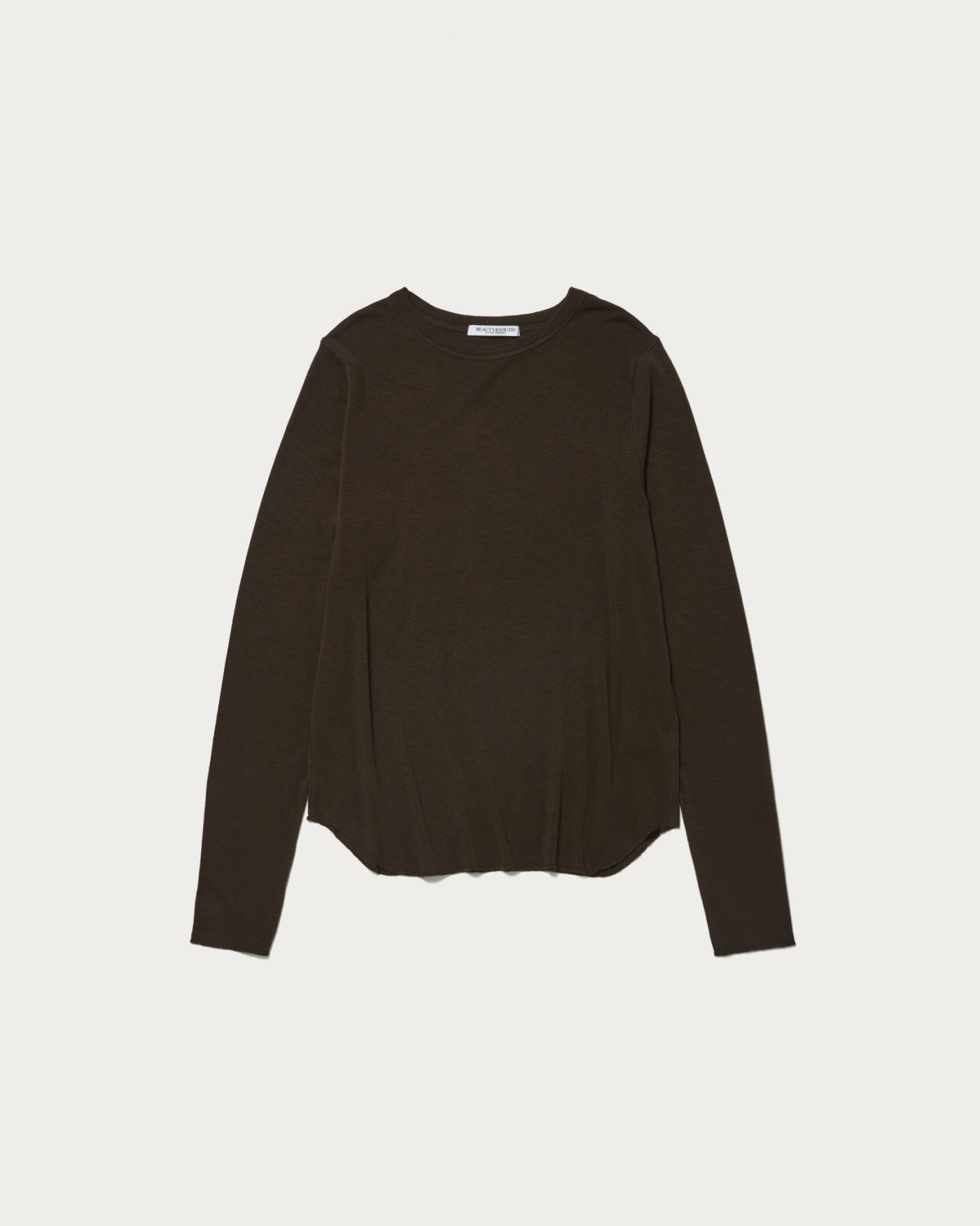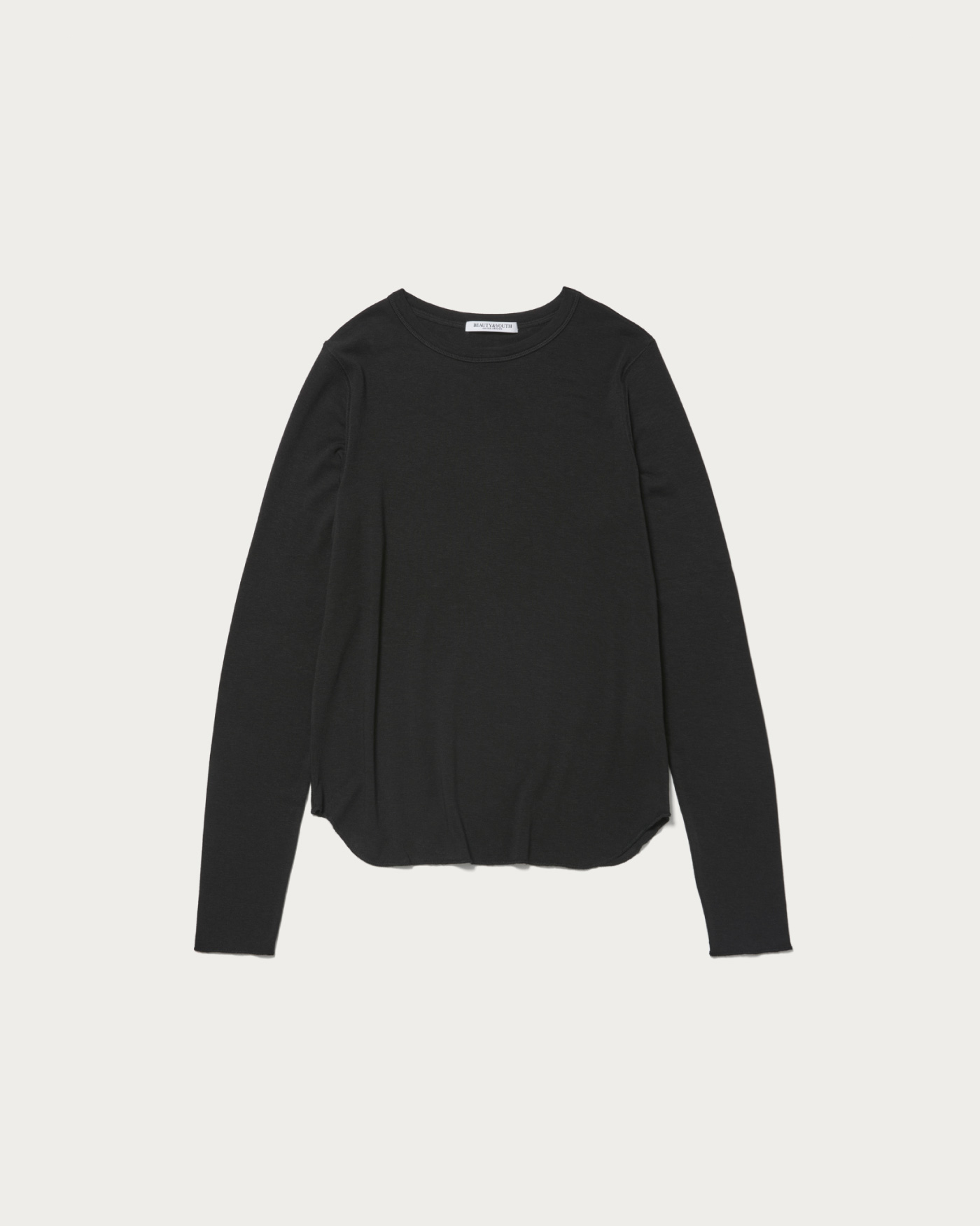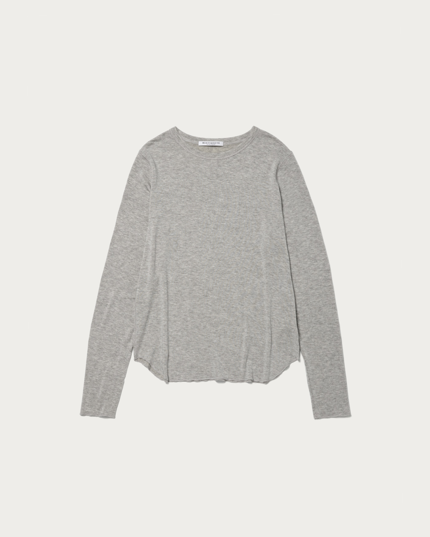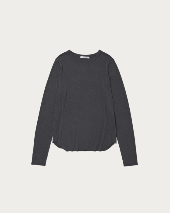 セルロースブレンドの薄手素材が持つ、さらりとした肌触りが魅力のカットソー。やや大きめのサイズ感なため、レイヤードスタイルにも重宝。女性らしさを引き立てる適度な透け感とラウンドヘムのデザインは、どんなスタイリングにおいてもさりげない存在感を発揮します。色はレイヤードしやすいニュアンスカラーを豊富にご用意。2色重ねて着るのもおすすめで、ぜひ色違いで揃えていただきたいアイテムです。 ※ダークグレーはオンラインストア限定カラーとなります。