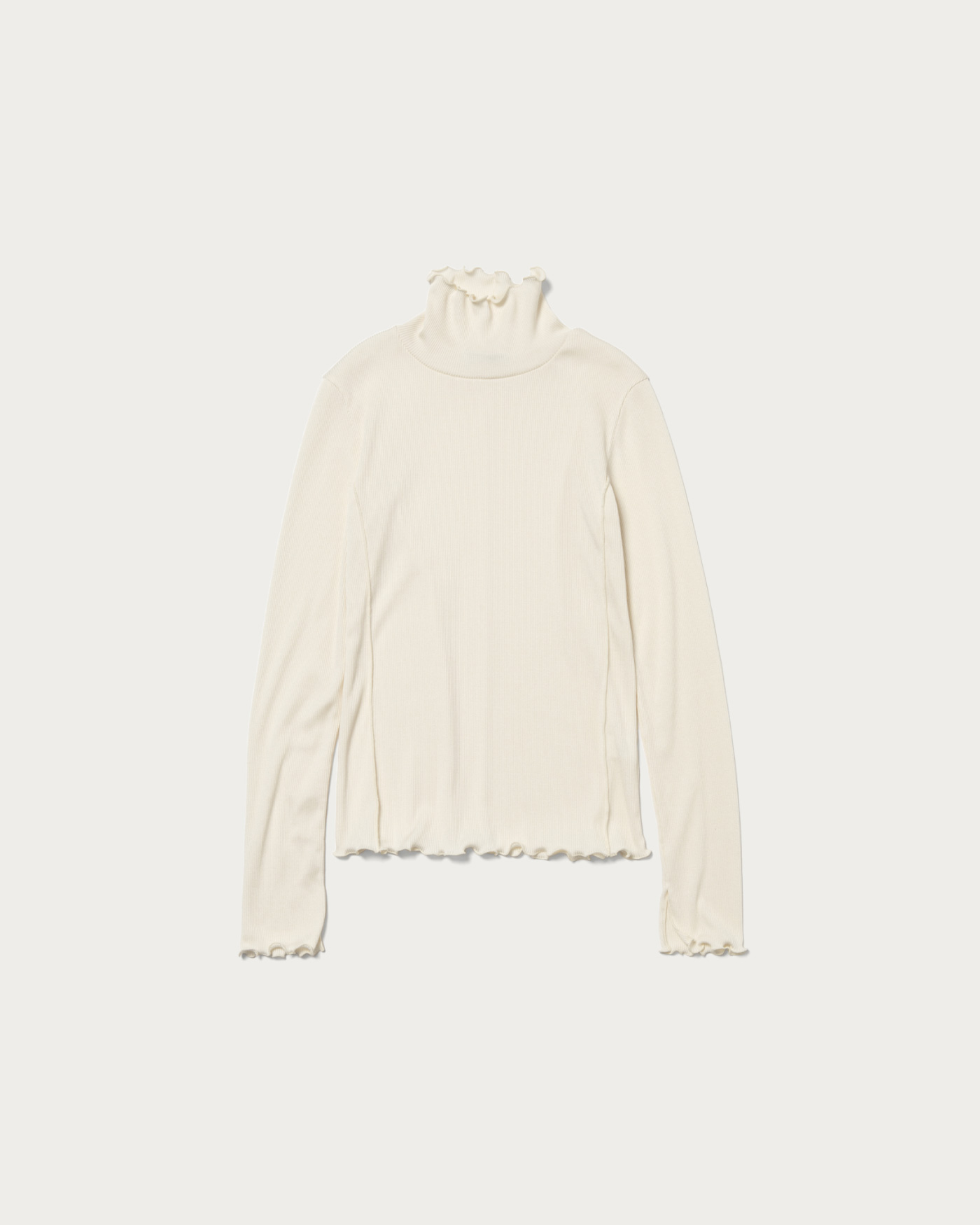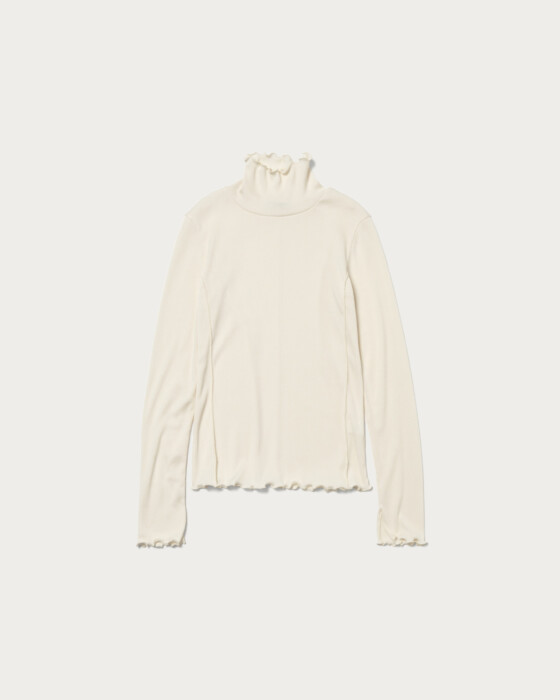 細身の身頃に、同色のメローステッチで落ち着いた印象に仕上げました。タートルネックとやや長めの袖が、存在感のある秋冬のインナー使いを叶えます。素材は上品な光沢と適度な肉感、さらっとした肌触りを持つブライトプレーティングテレコ。ワンピースやジャケットなどを合わせたフェミニンな着こなしから、スウェットといったカジュアルなアイテムとの相性も抜群。シーンやテイストを問わず活躍するアイテムは、色違いでぜひ。