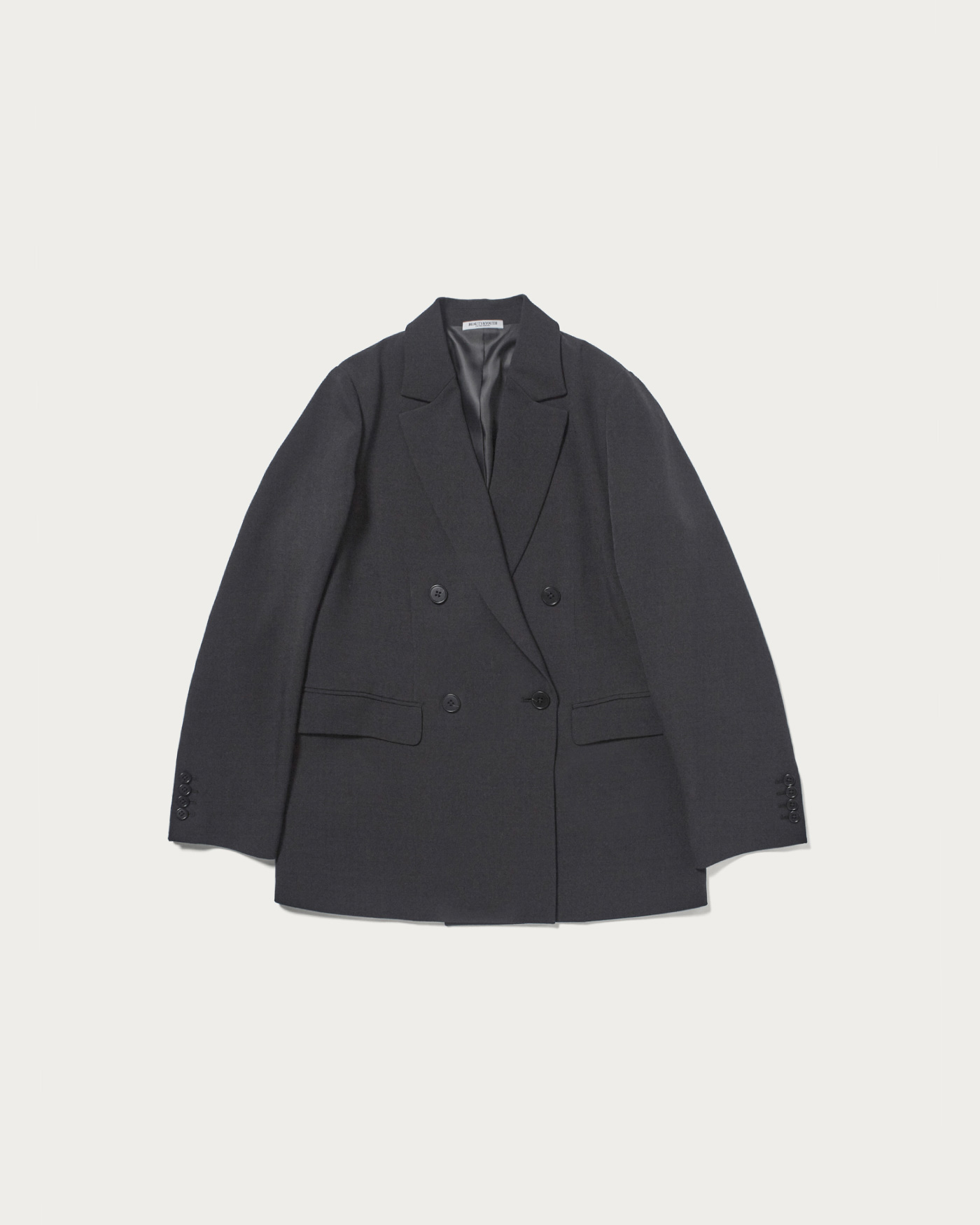 春夏シーズンに人気を博したジャケットが秋冬仕様で新登場。梳毛調のポリエステル糸を使用した、クリアでウォーム感のある素材にアップデート。タイプの違う糸を撚糸することで、奥行きのある色味を表現しました。ポリウレタンを加えることで生地にふくらみとやわらかさがあるのも特徴。オンオフ着回しの効く一枚に仕上がりました。