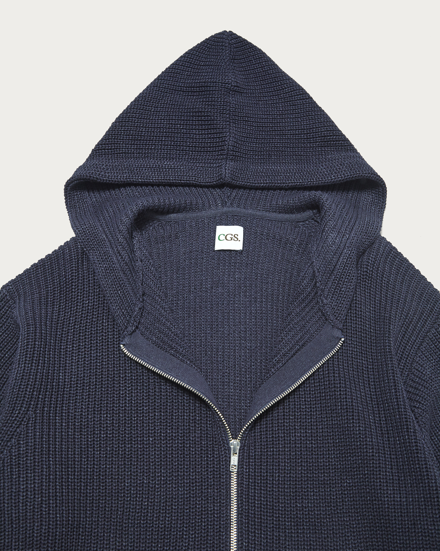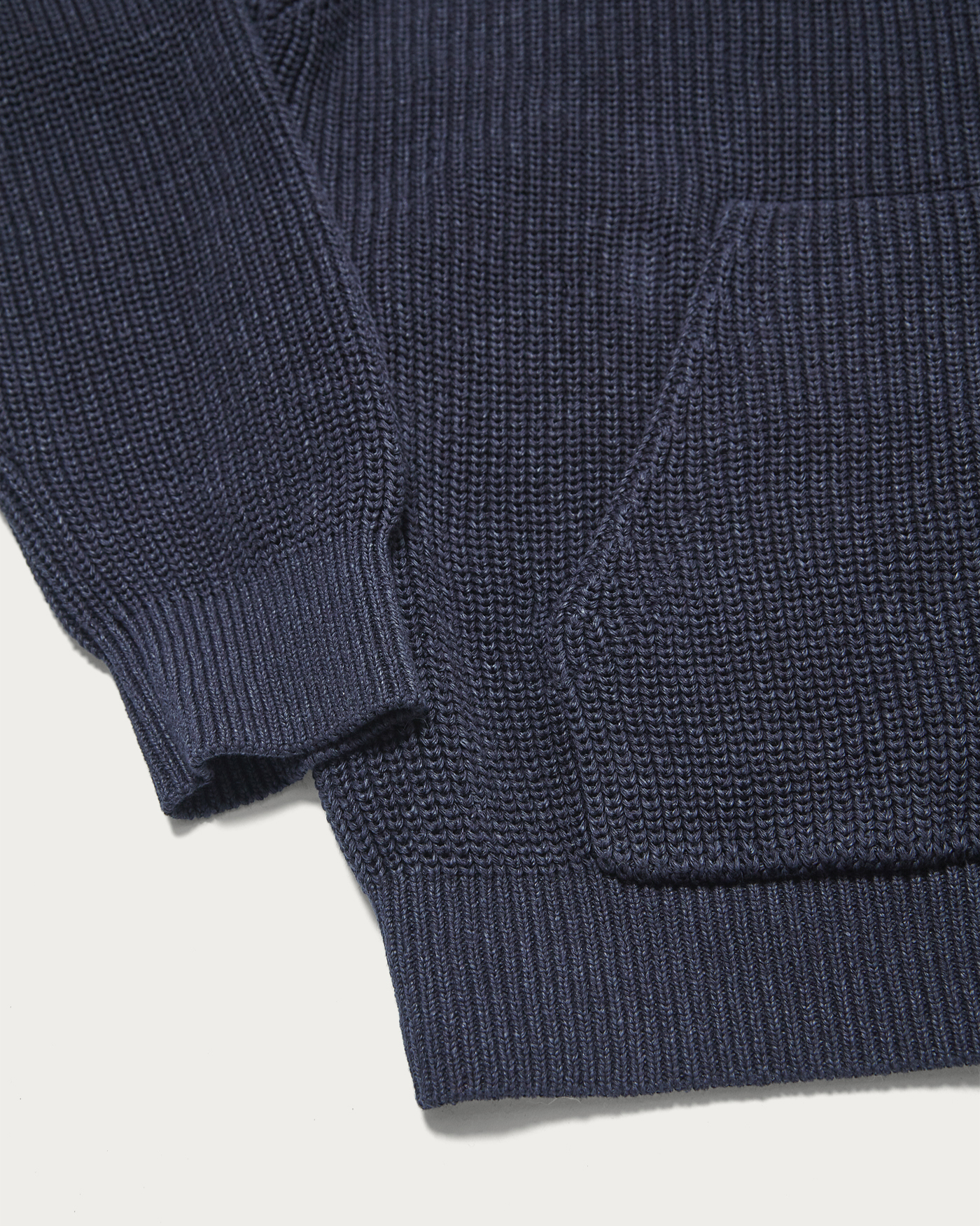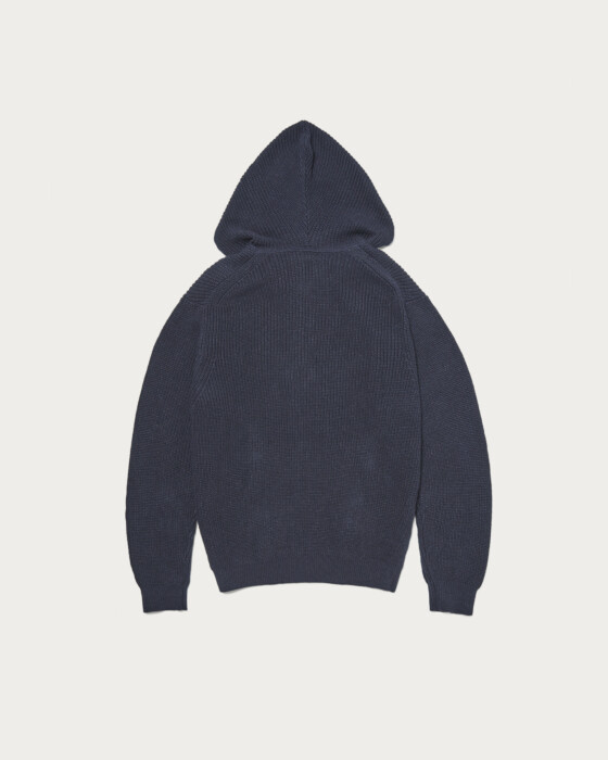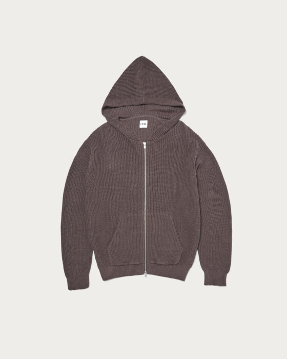 オーガニックコットンと分類外繊維(紙)を混紡したニット素材。ドライタッチな風合いと見た目によらない軽さはペーパーヤーンならでは。ローゲージの片畔編みのニットジップフーディです。袖口と裾をリブで絞った丸みのあるシルエットで、やや短めの着丈なのでブルゾン感覚で羽織っていただけるアイテムです。