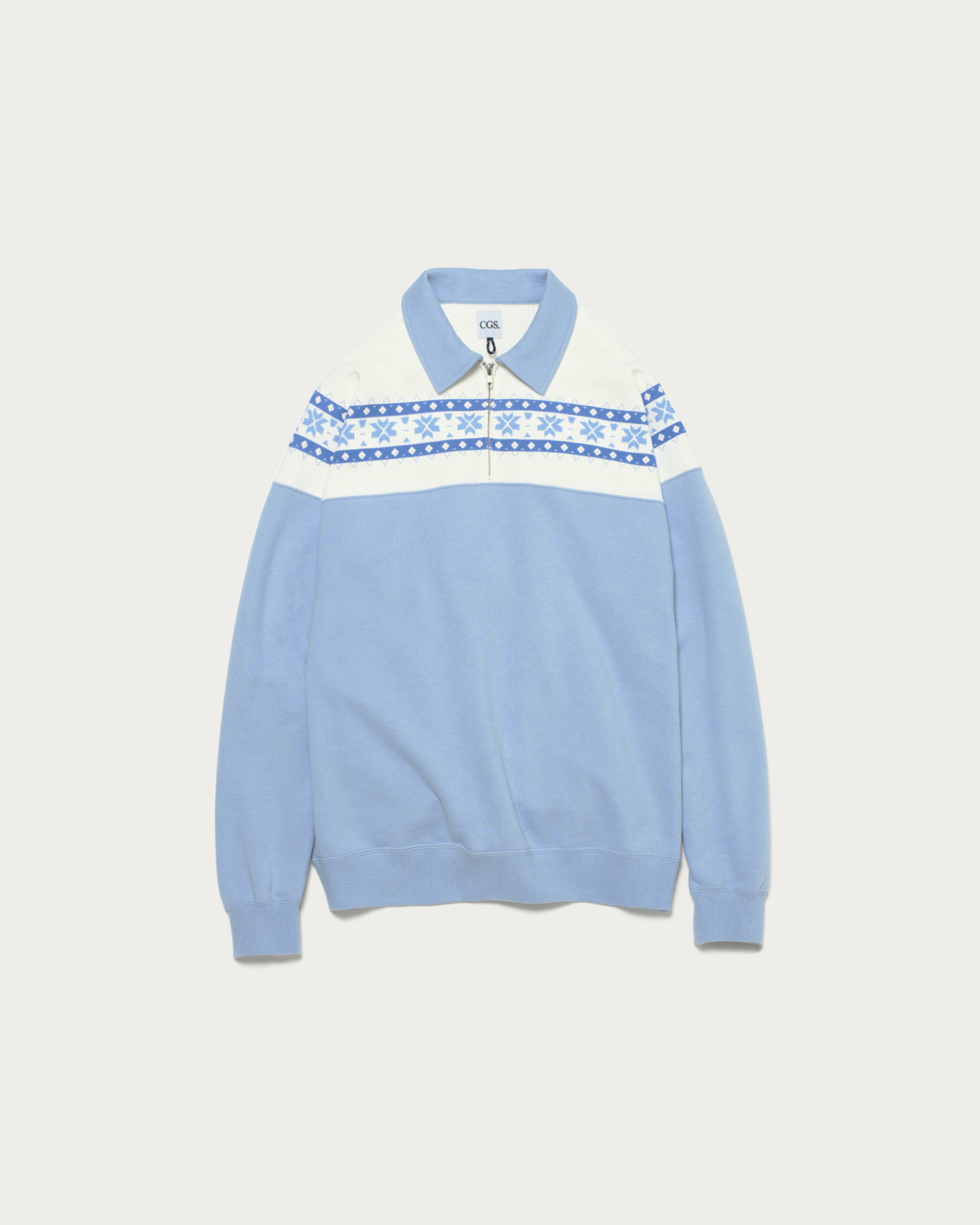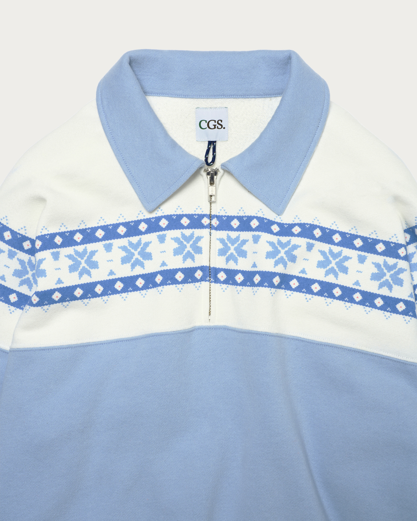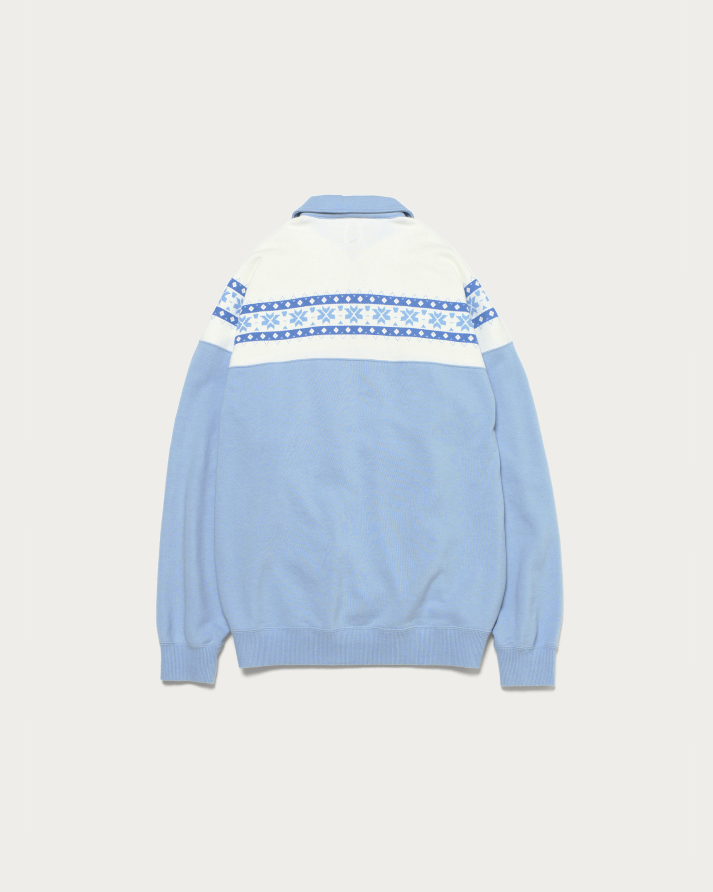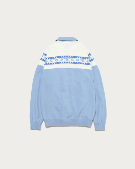 ほどよい厚みのあるコットン裏毛素材のハーフジップスウェットです。ヴィンテージの雪柄スウェットを参考に、リラックス感のあるバルーンシルエットで再構築。オリジナルでデザインした雪柄の染み込みプリントが存在感を醸し出します。ユニセックスで着用いただけ、一枚着はもちろん、アウターのインナーにも映えるアイテムです。