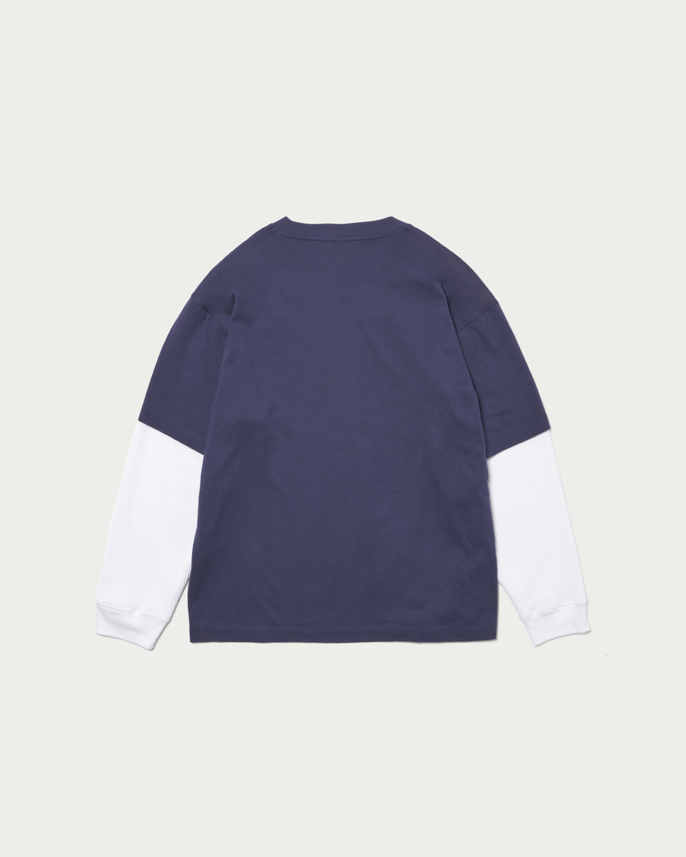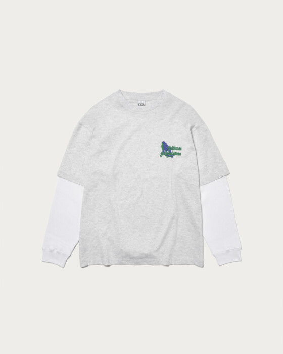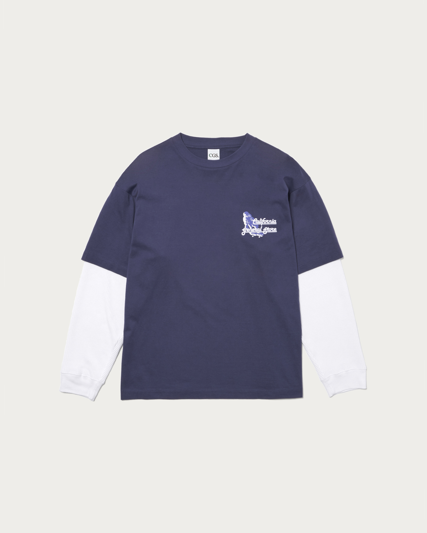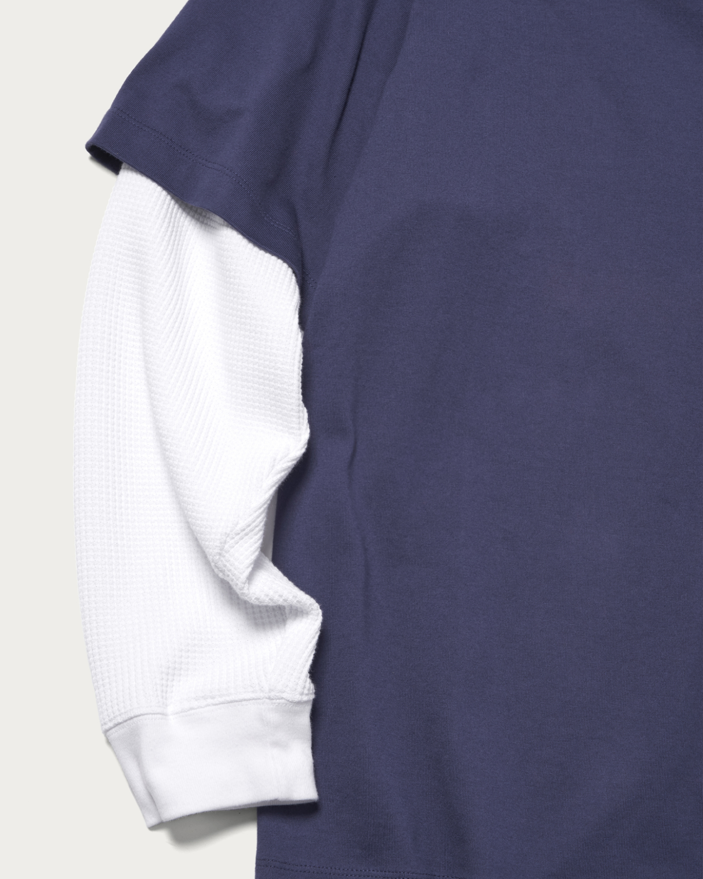 袖だけワッフル素材をレイヤードしたようなデザインTシャツです。薄過ぎず厚過ぎない絶妙な生地感と風合いの良さも相まった肌なじみが良いオーガニックコットンを本体生地に100%使用したボディ。程よい緩さのあるシルエットのため一枚着としてはもちろんインナーとしても着用しやすいサイズ感になっています。〈CGS.〉オリジナルのグラフィックもポイントです。